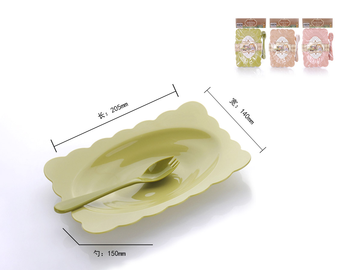 得力熊歐式中號花邊長方餐盤(4pcs)( 配4pcs叉匙)