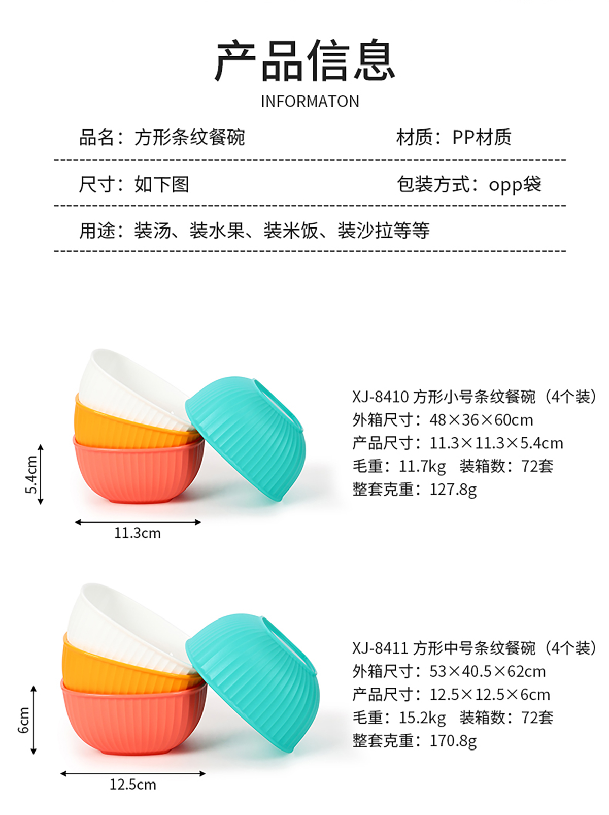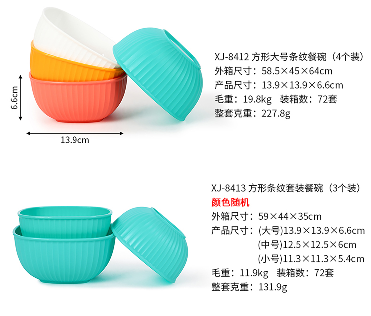 方形小號(hào)/中號(hào)/大號(hào)/套裝條紋餐碗