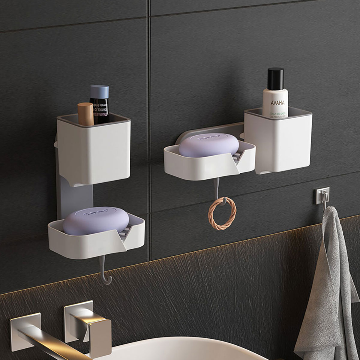 Size: 皂盒:135*98*35mm 收納盒:85*85*98mm 壁掛桿:185*62mm 吸塑盒包裝:310*149*113mm