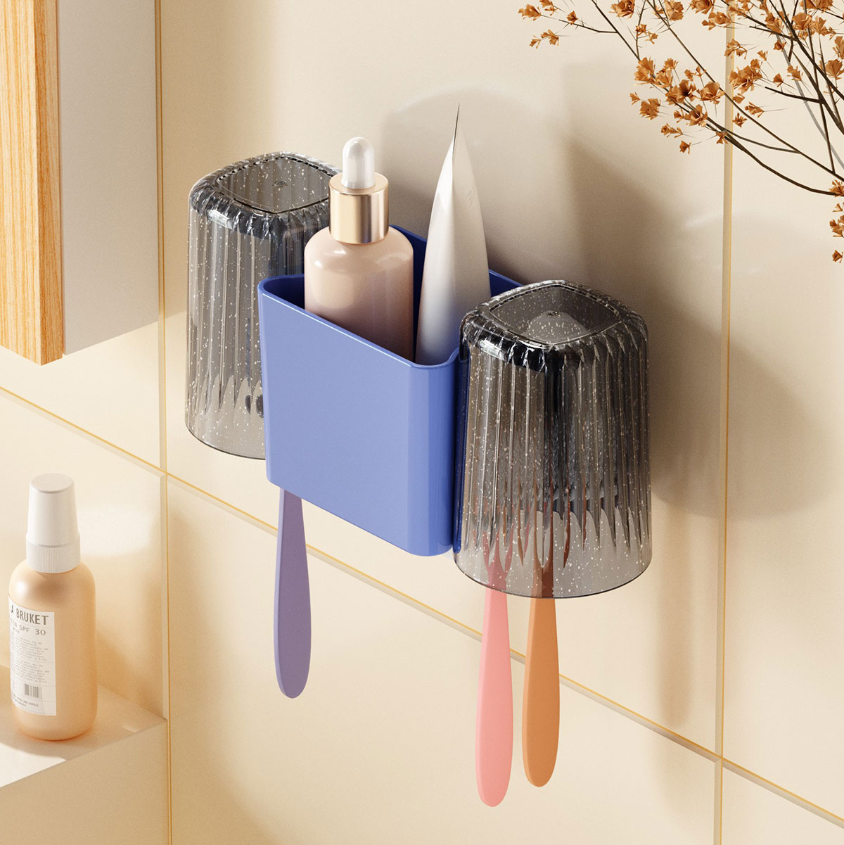 晶透雙杯壁掛收納架