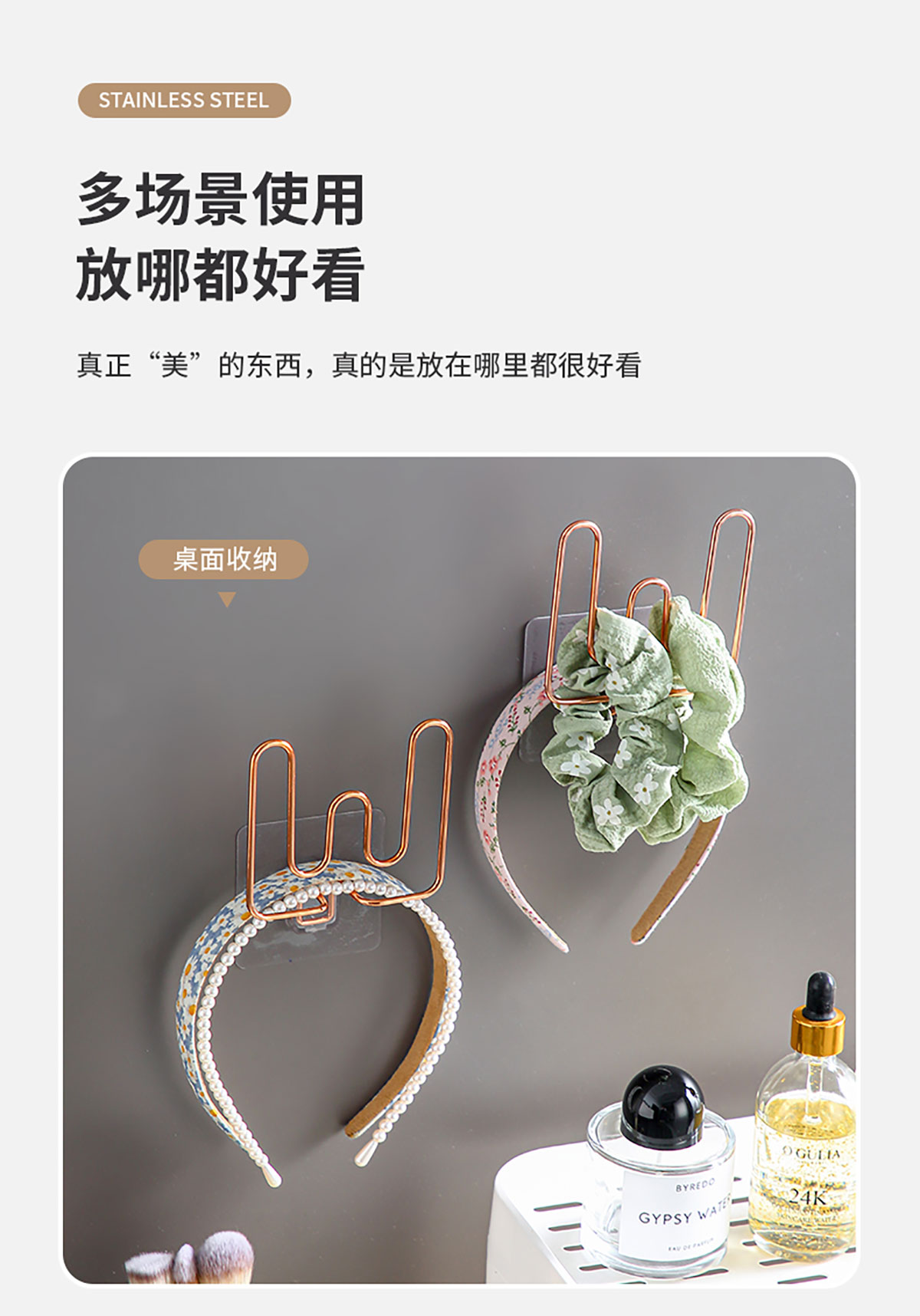 不銹鋼多功能掛鉤(可掛拖鞋/發(fā)捆頭飾等)