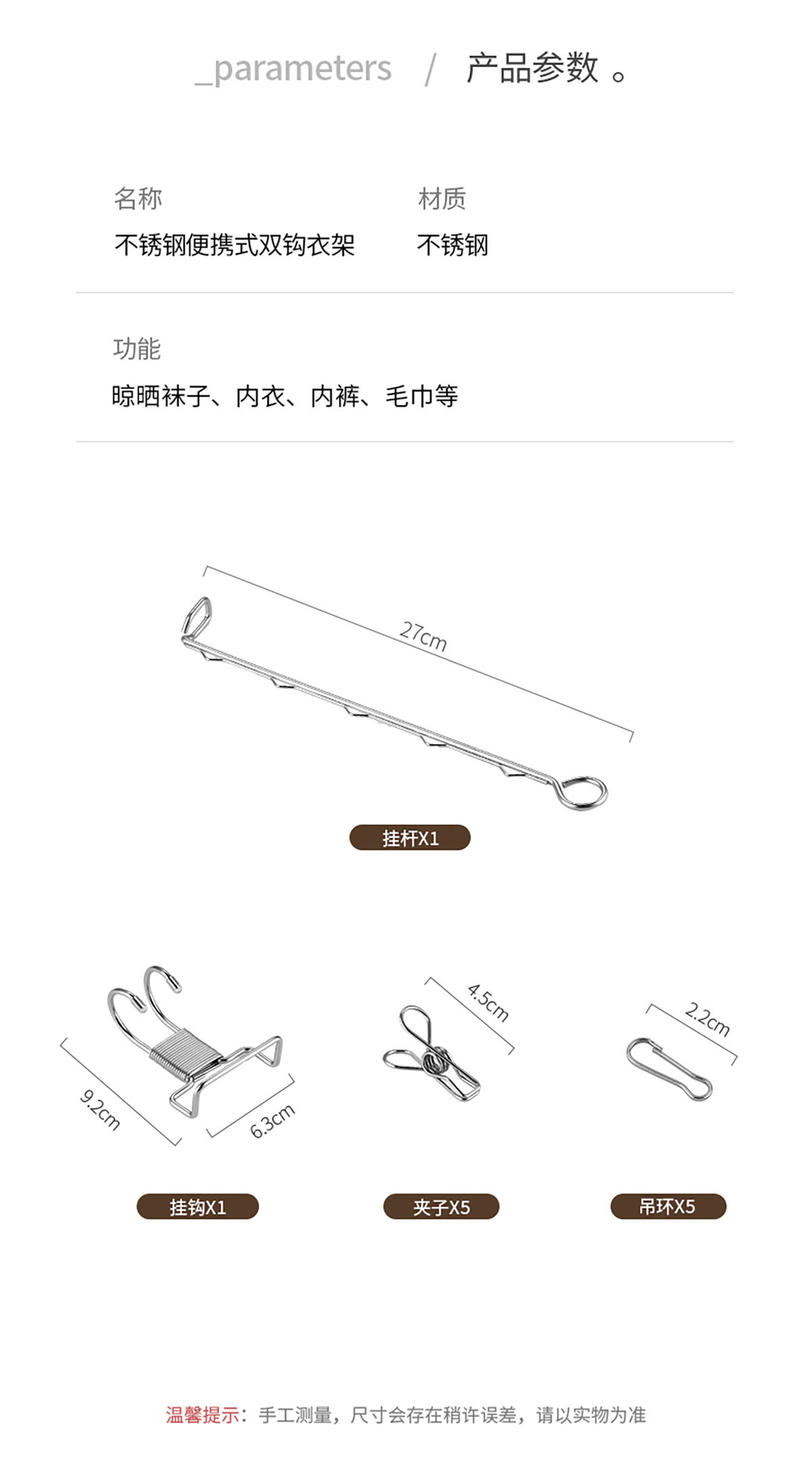不銹鋼便攜式雙鉤衣架