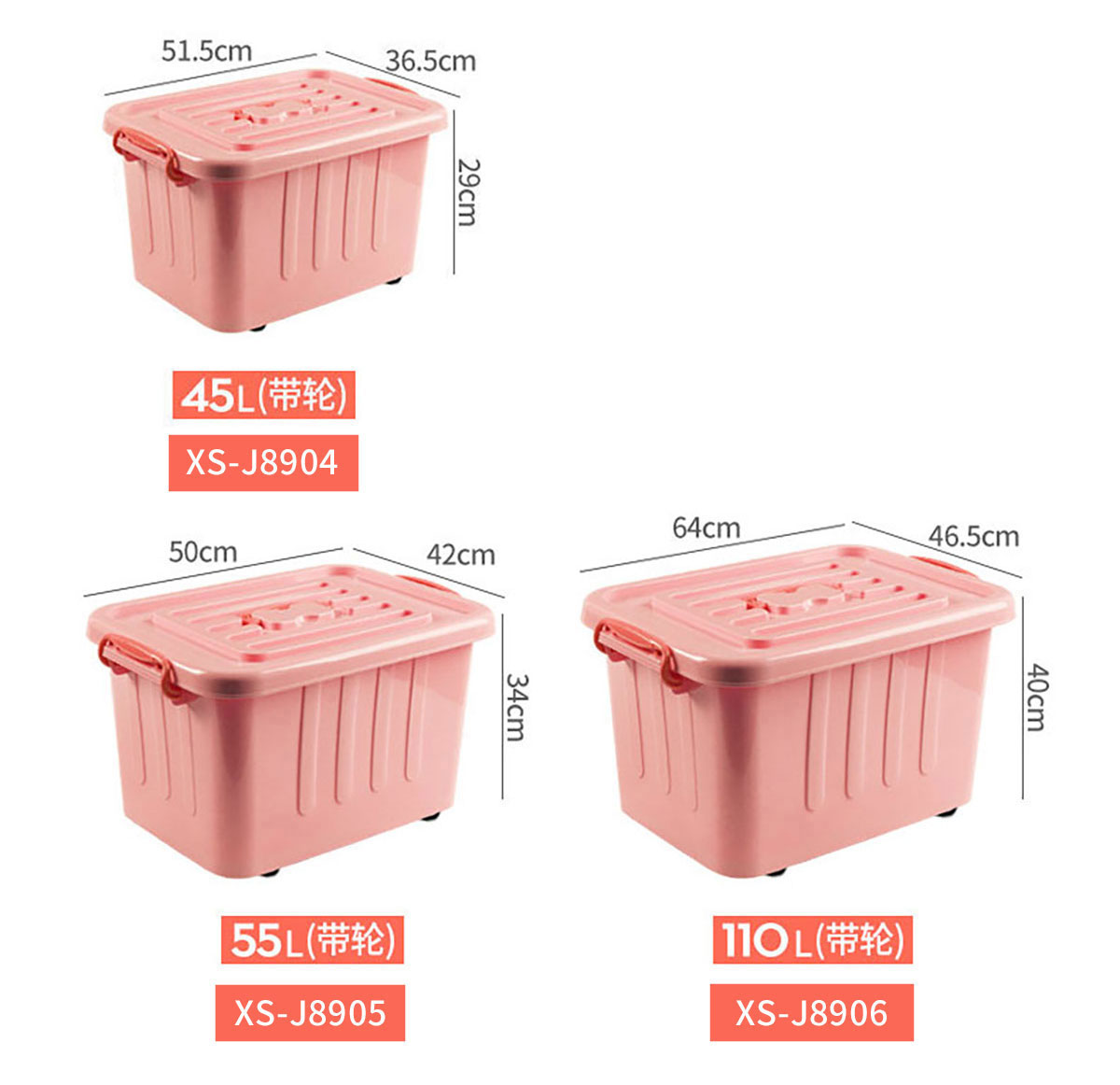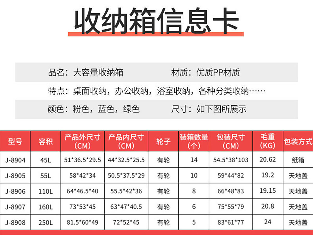 儲(chǔ)物箱45L/55L/110L/160L/250L(有輪)  實(shí)色/透明色