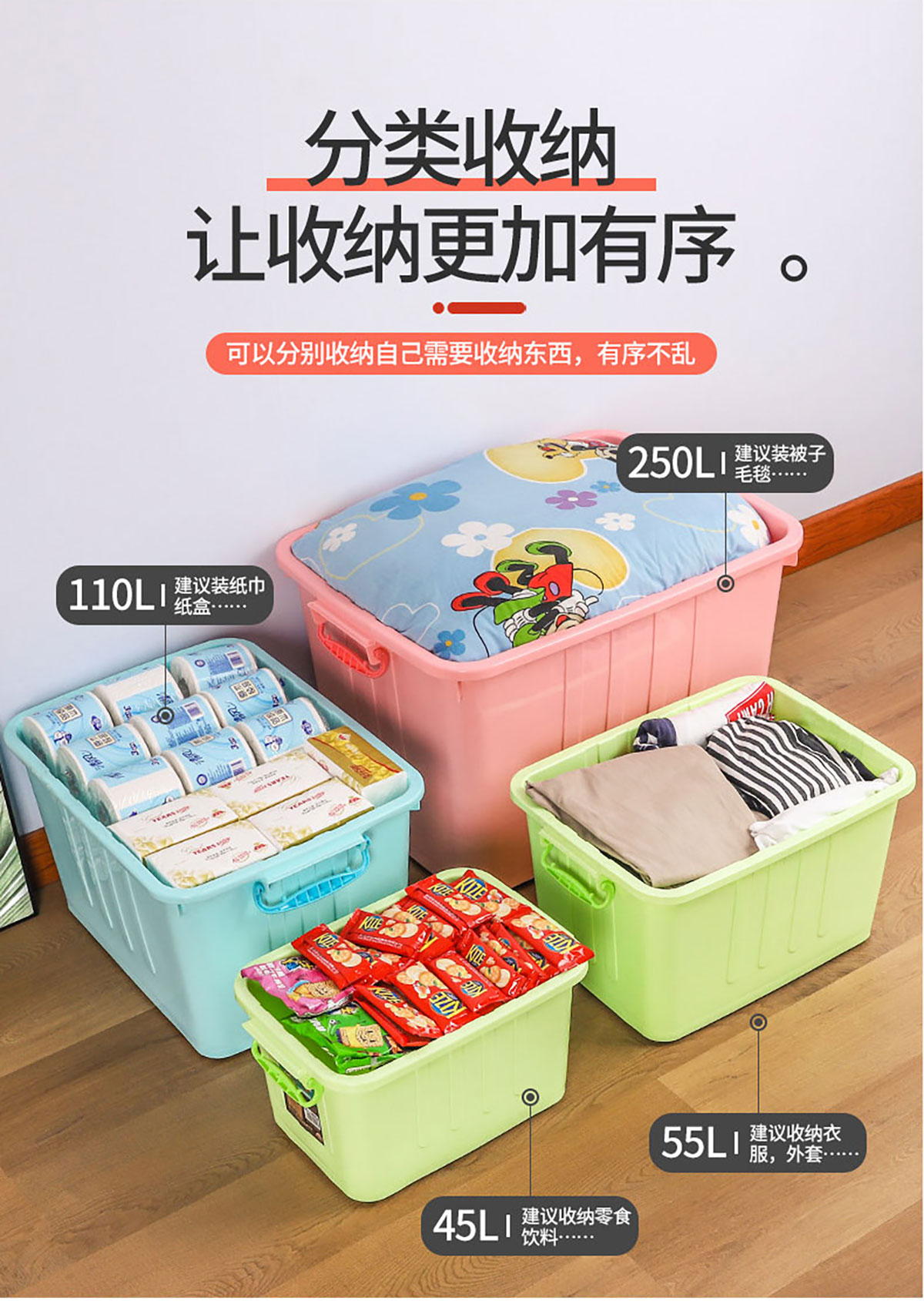 儲(chǔ)物箱45L/55L/110L/160L/250L(有輪) 實(shí)色/透明色