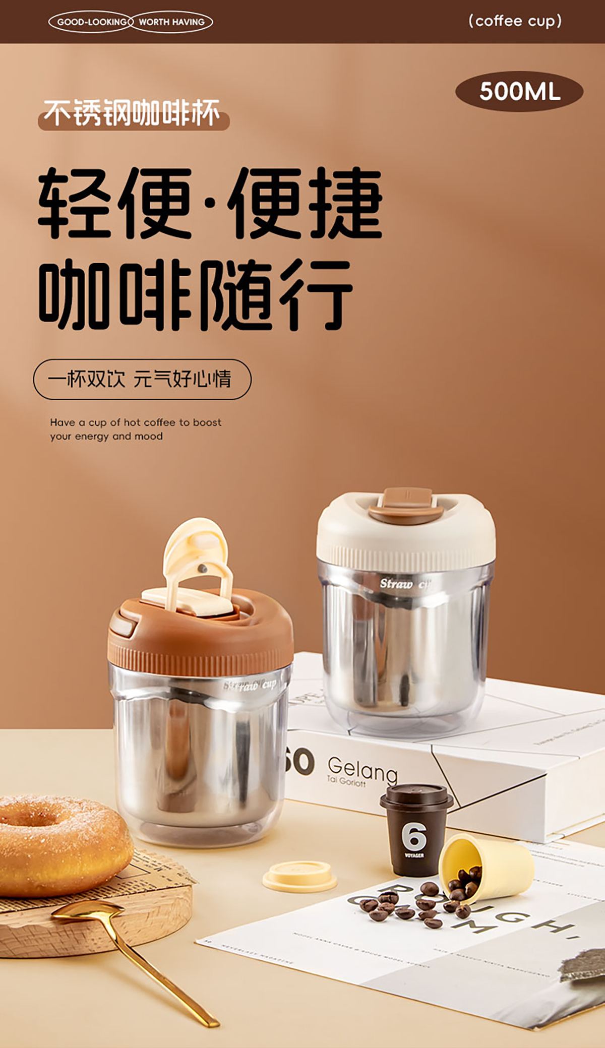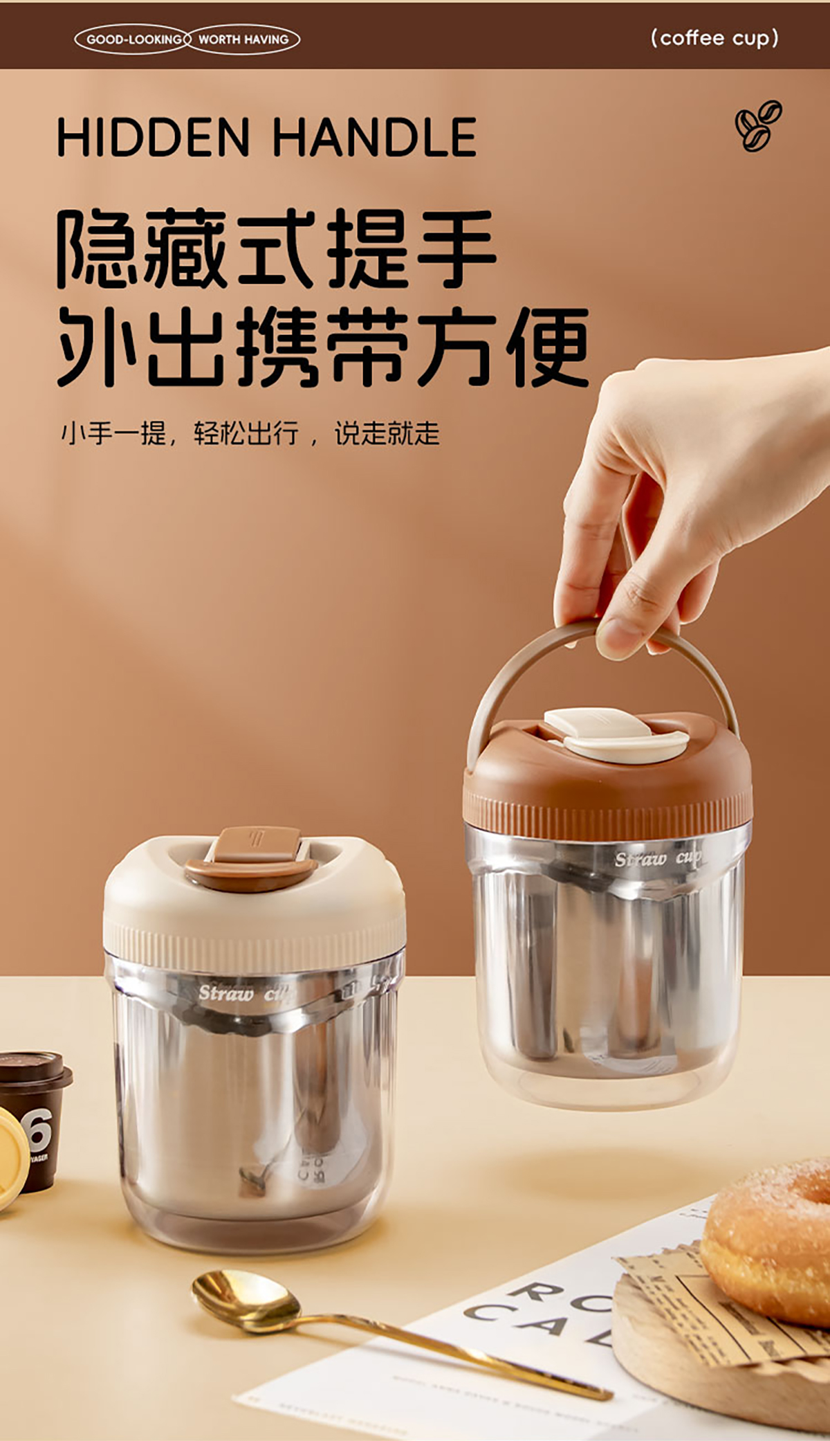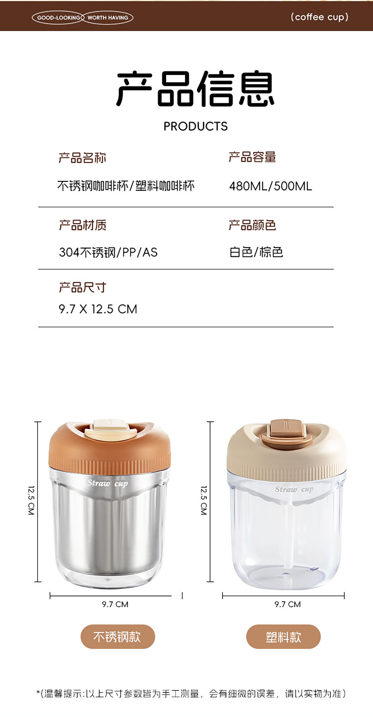 便攜吸管杯塑料款500ml/不銹鋼款480ml