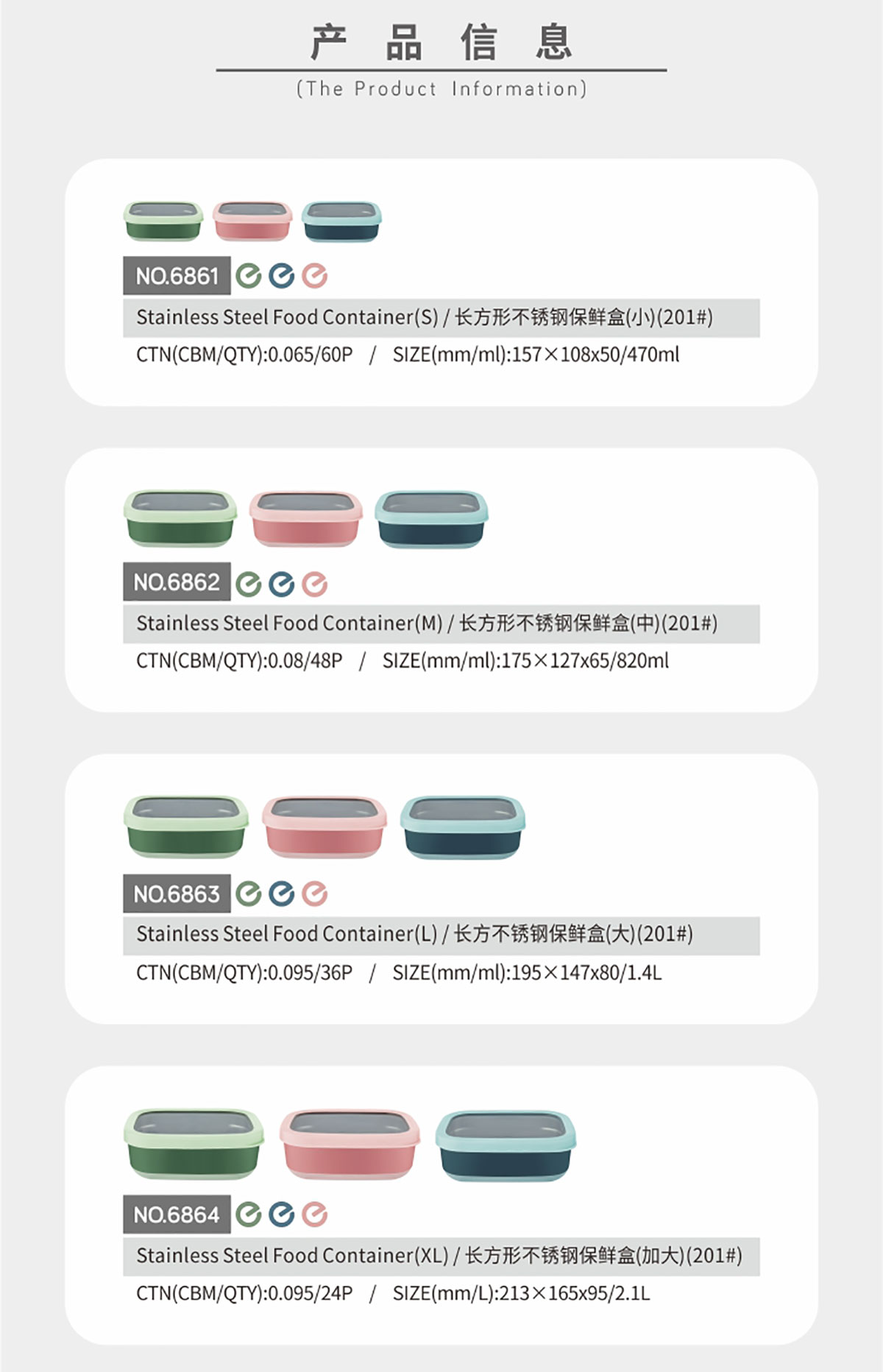 長方形不銹鋼保鮮盒(小./中/大/加大)