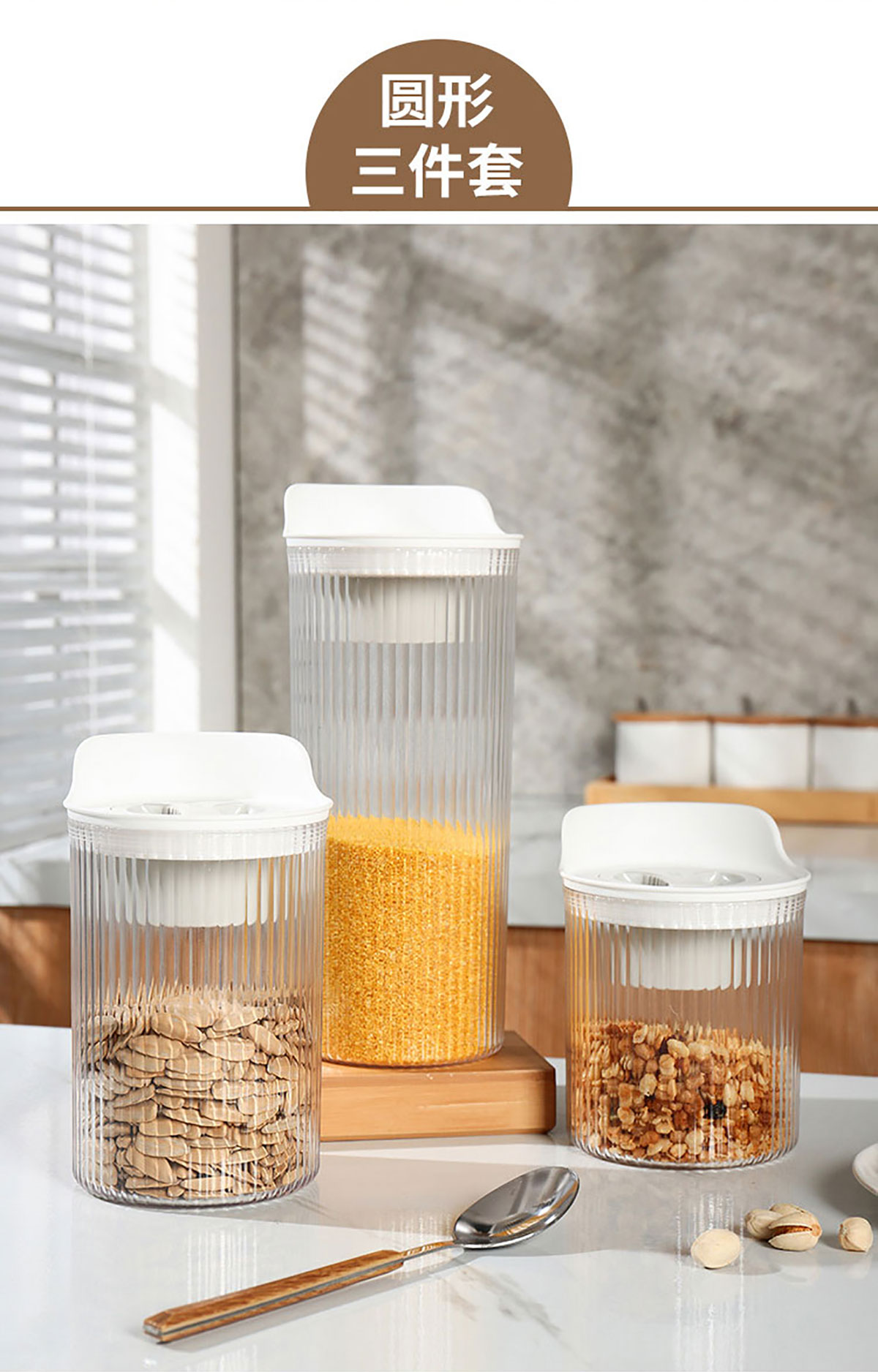 小簡(jiǎn)方形/圓形密封儲(chǔ)物罐(3件套)