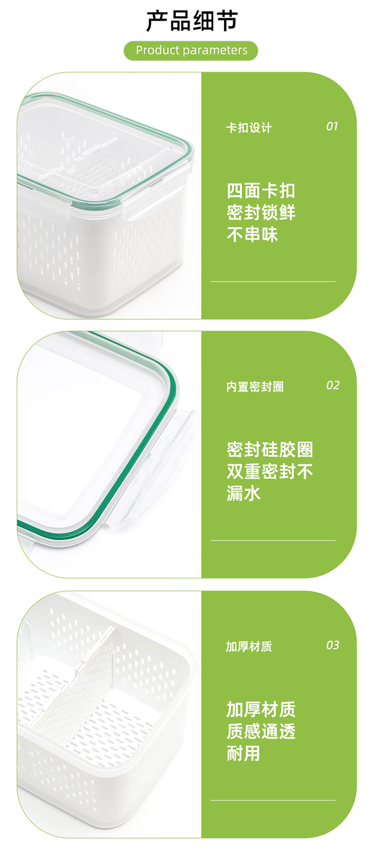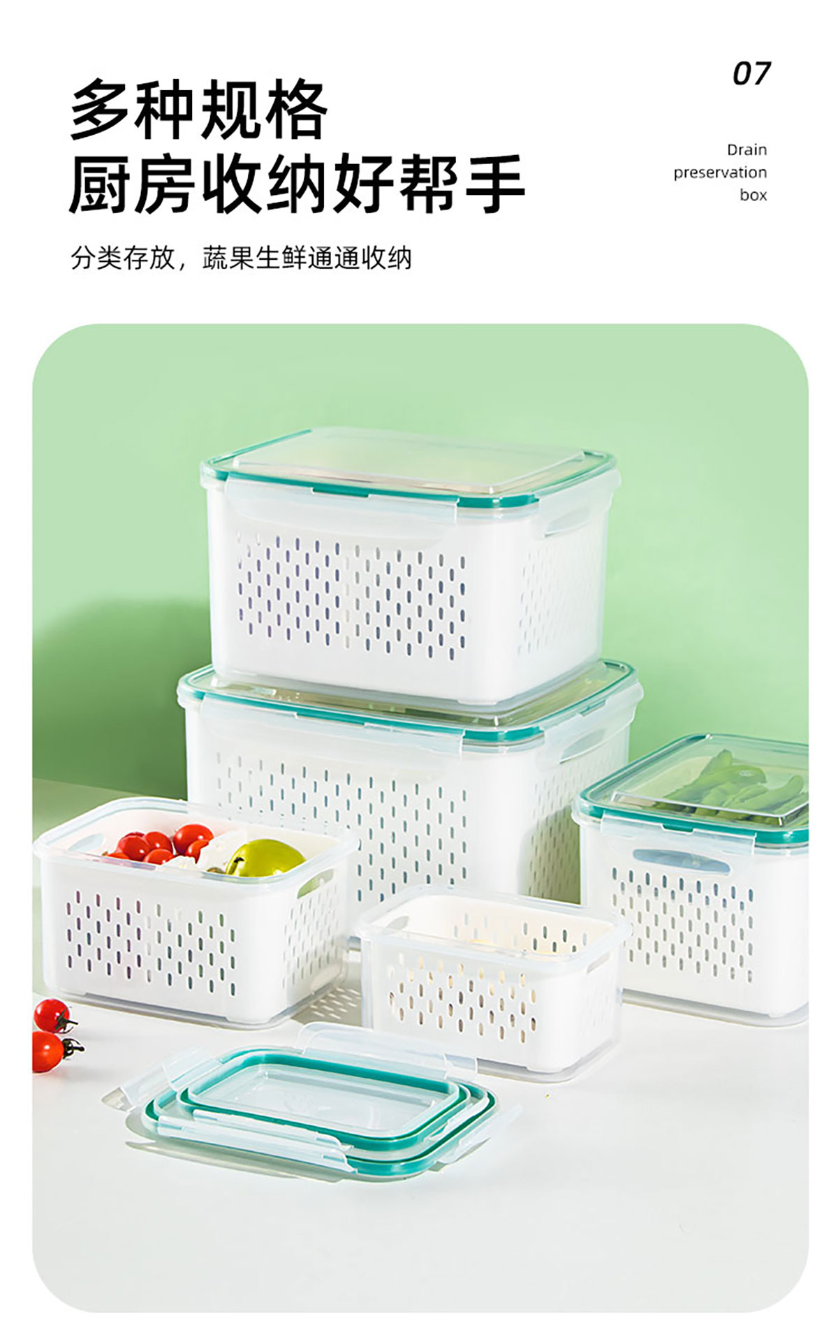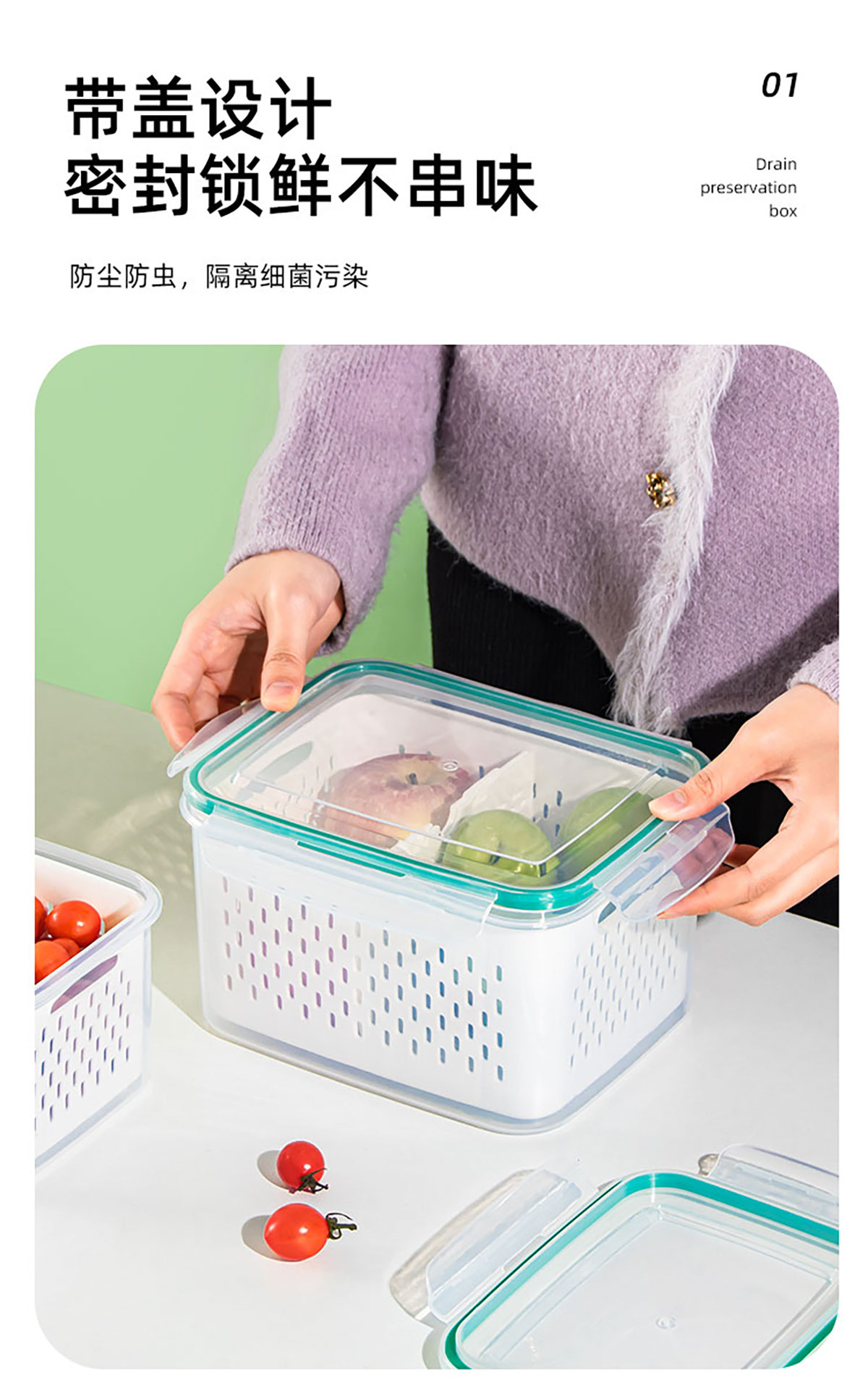 密封分格瀝水保鮮盒(850ml/1.85L/3.3L/4.55L/7.20L)
