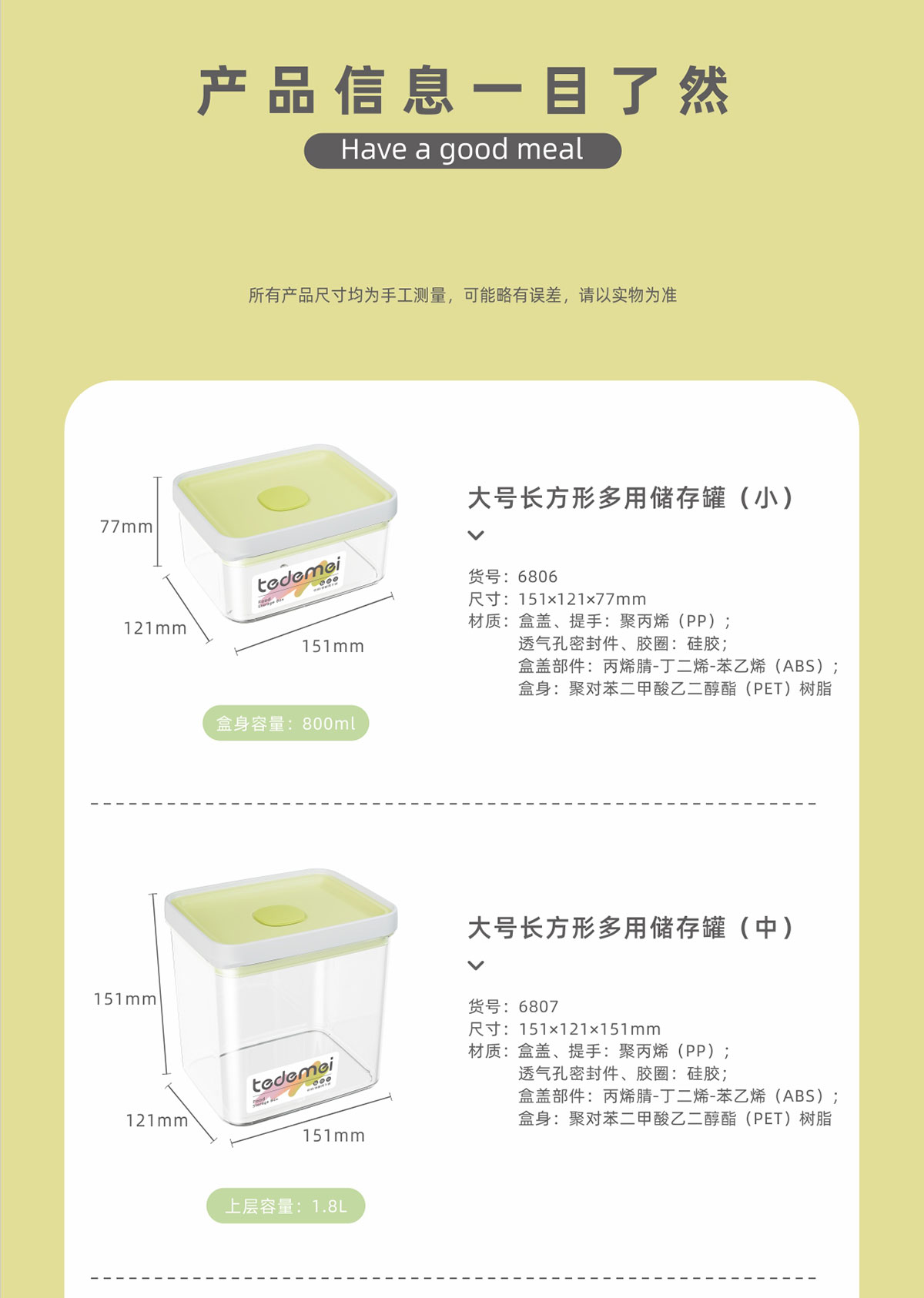 Size: HM-6806(小號800ml):151*121*77mm