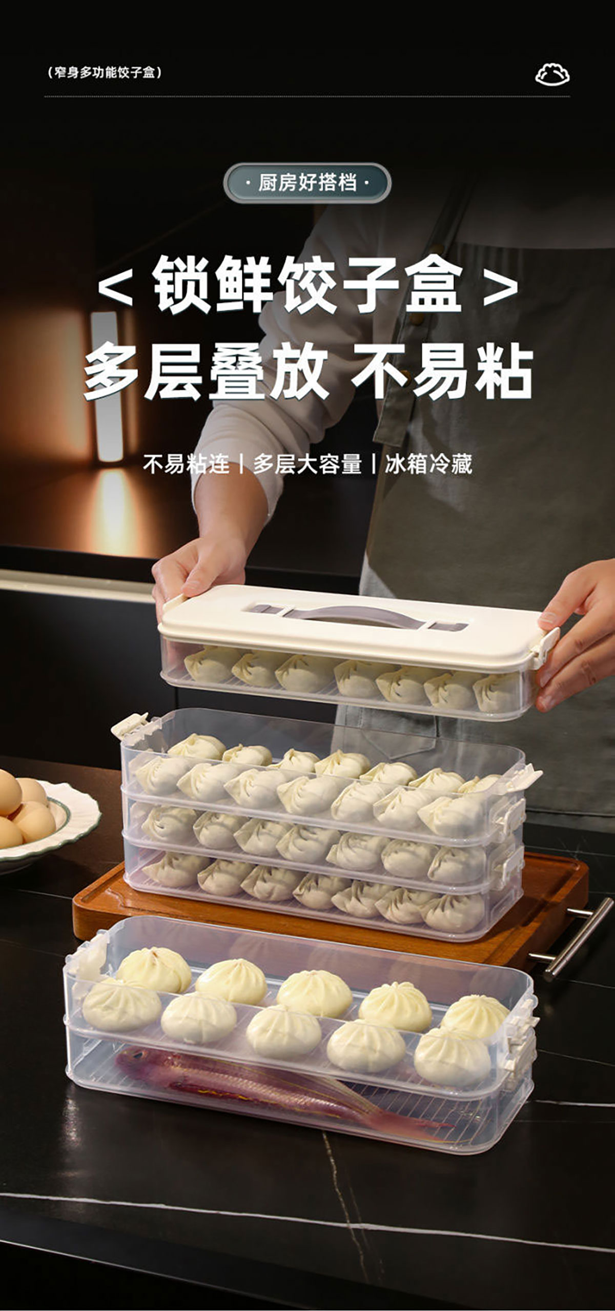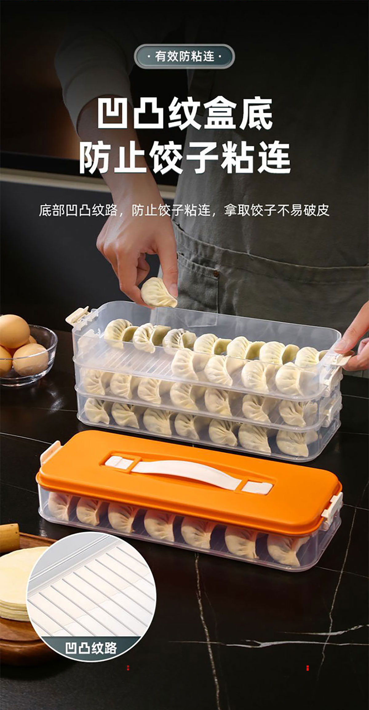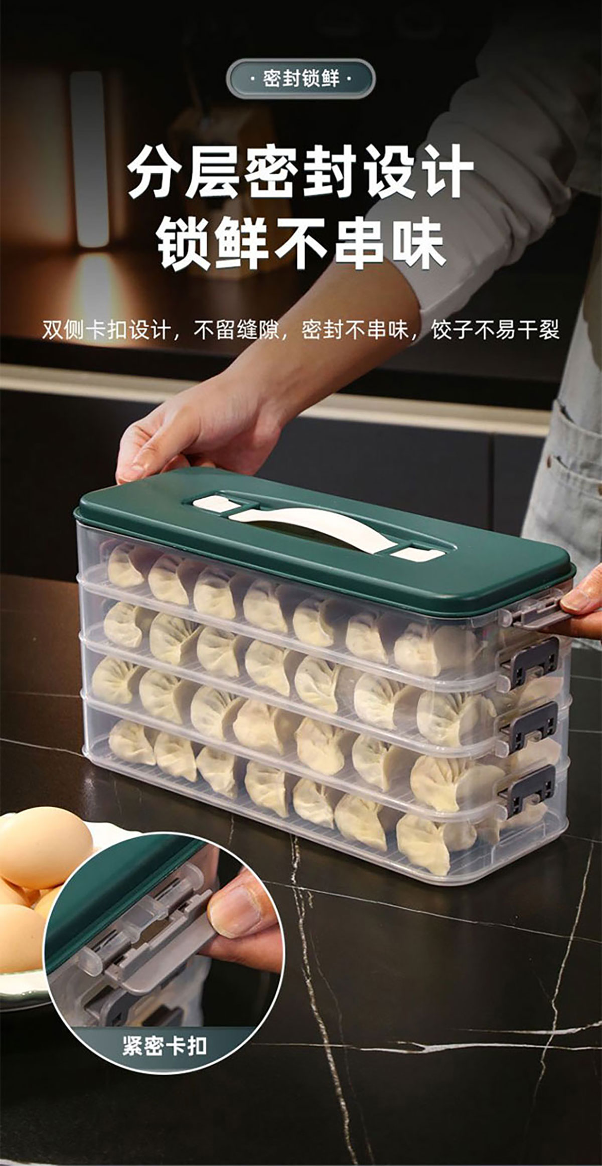 簡(jiǎn)系手提餃子收納盒(單層/2層/3層/4層/5層)