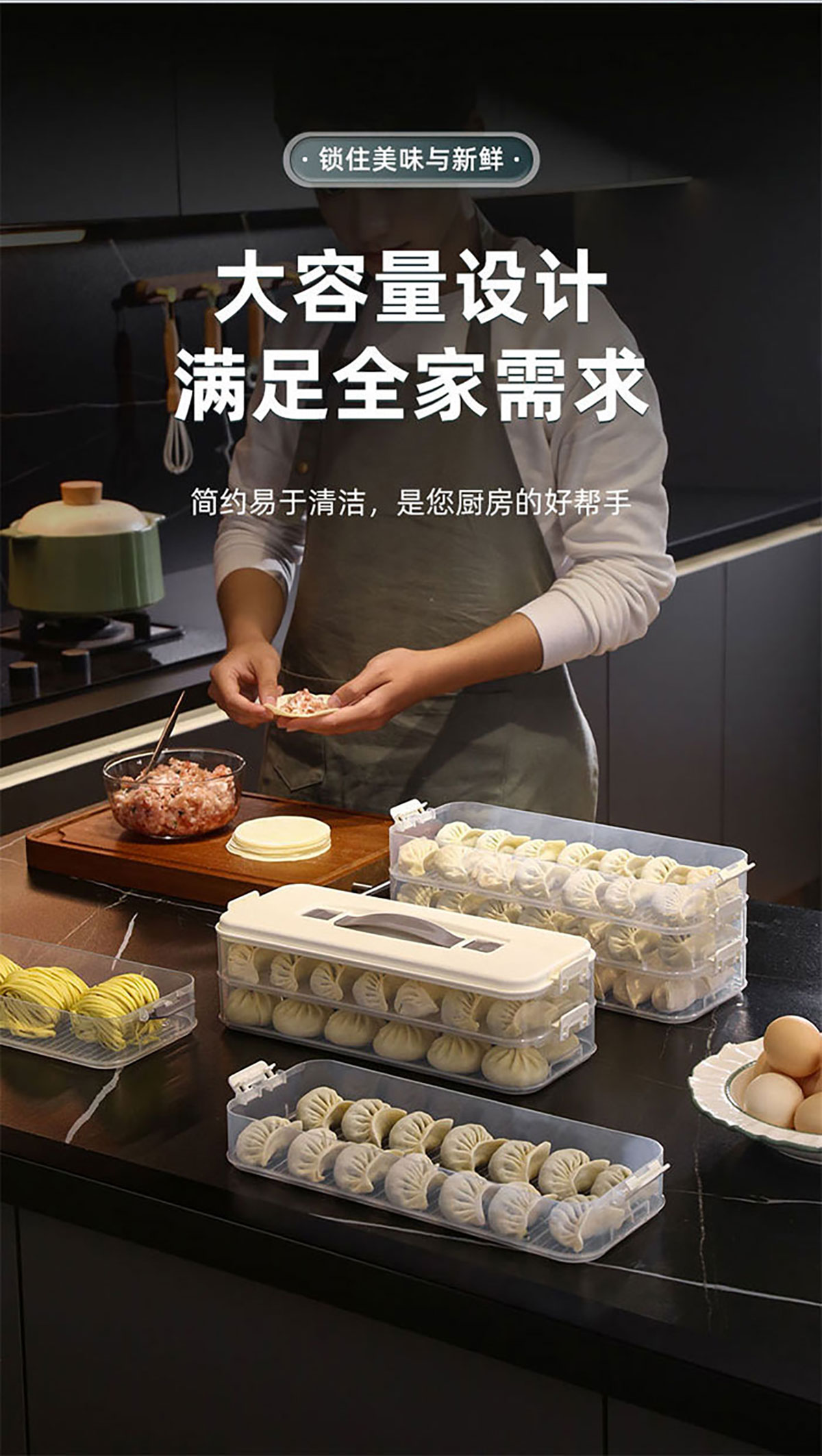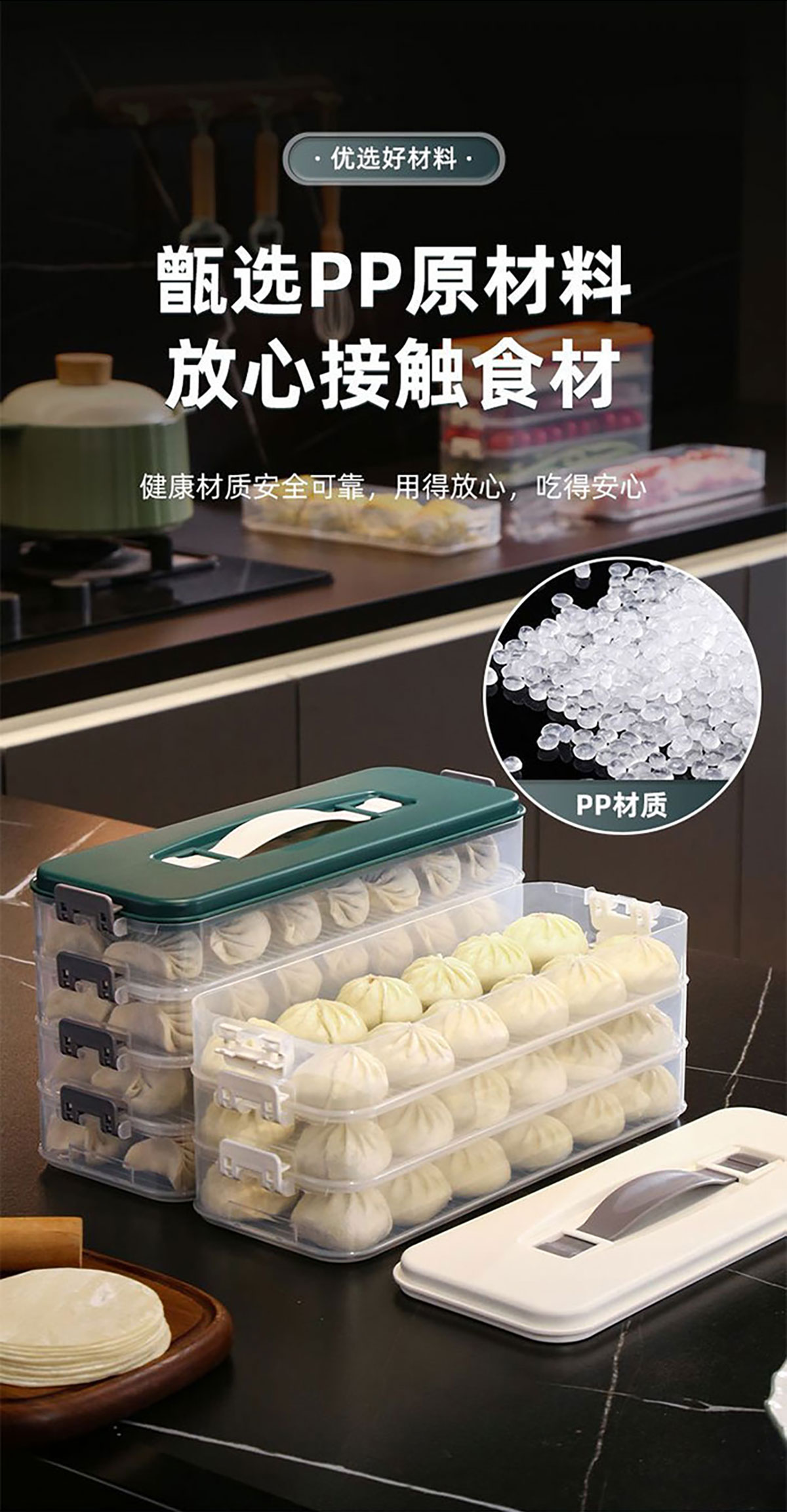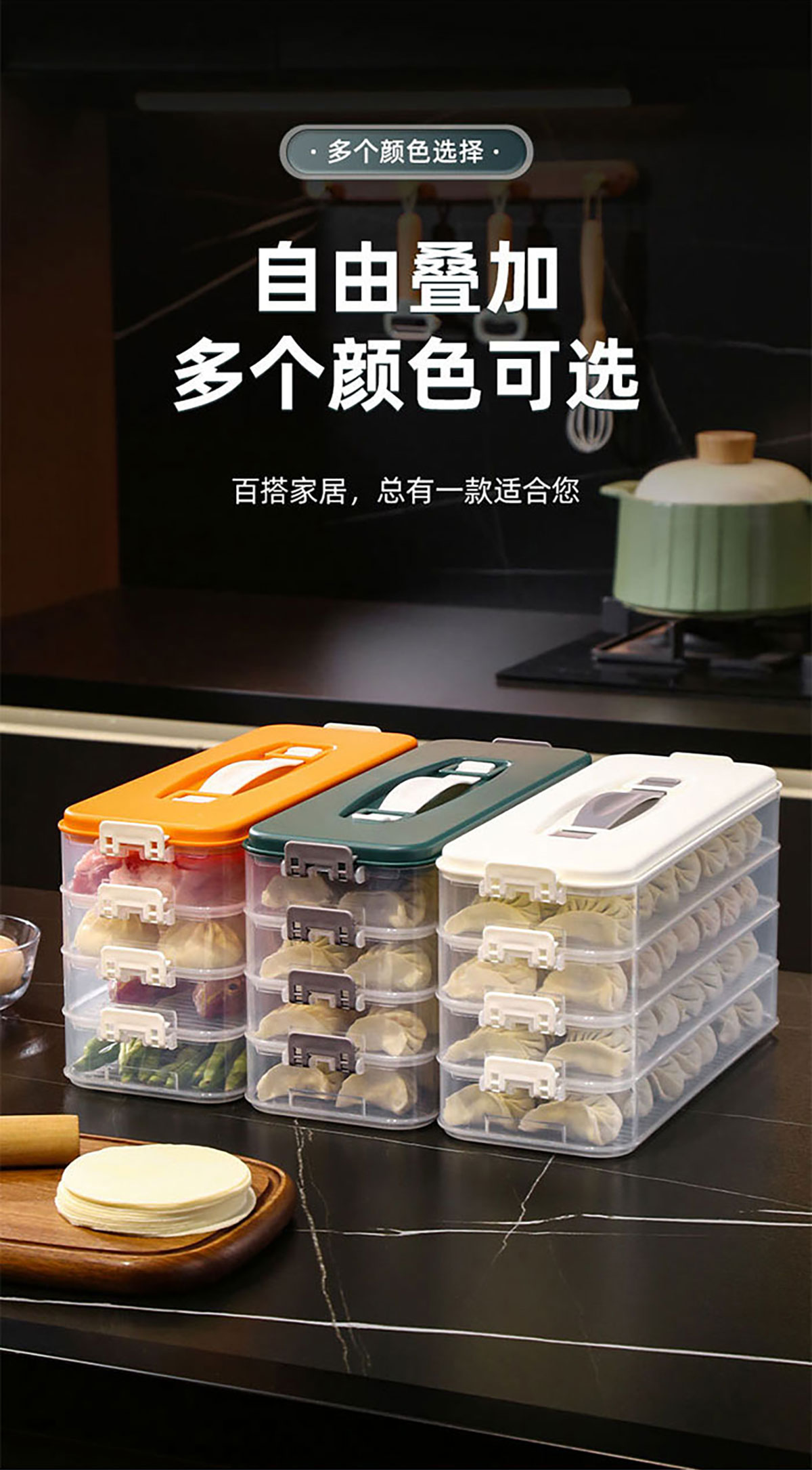 簡(jiǎn)系手提餃子收納盒(單層/2層/3層/4層/5層)