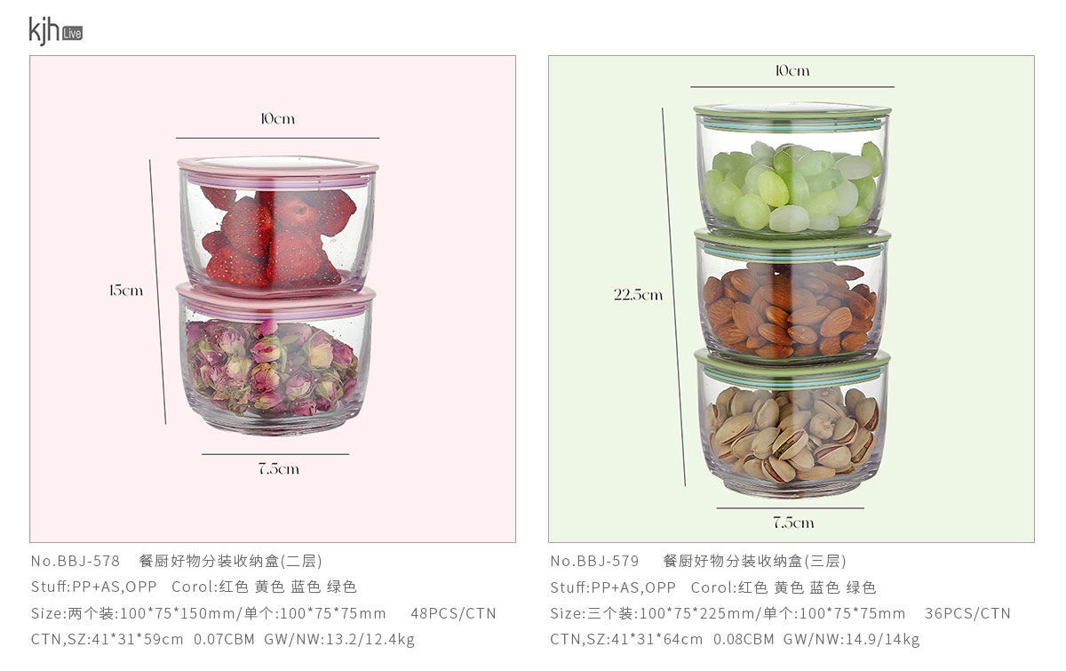 Size: BBJ-578(二層):兩個裝:100*75*150mm/單個:100*75*75mm