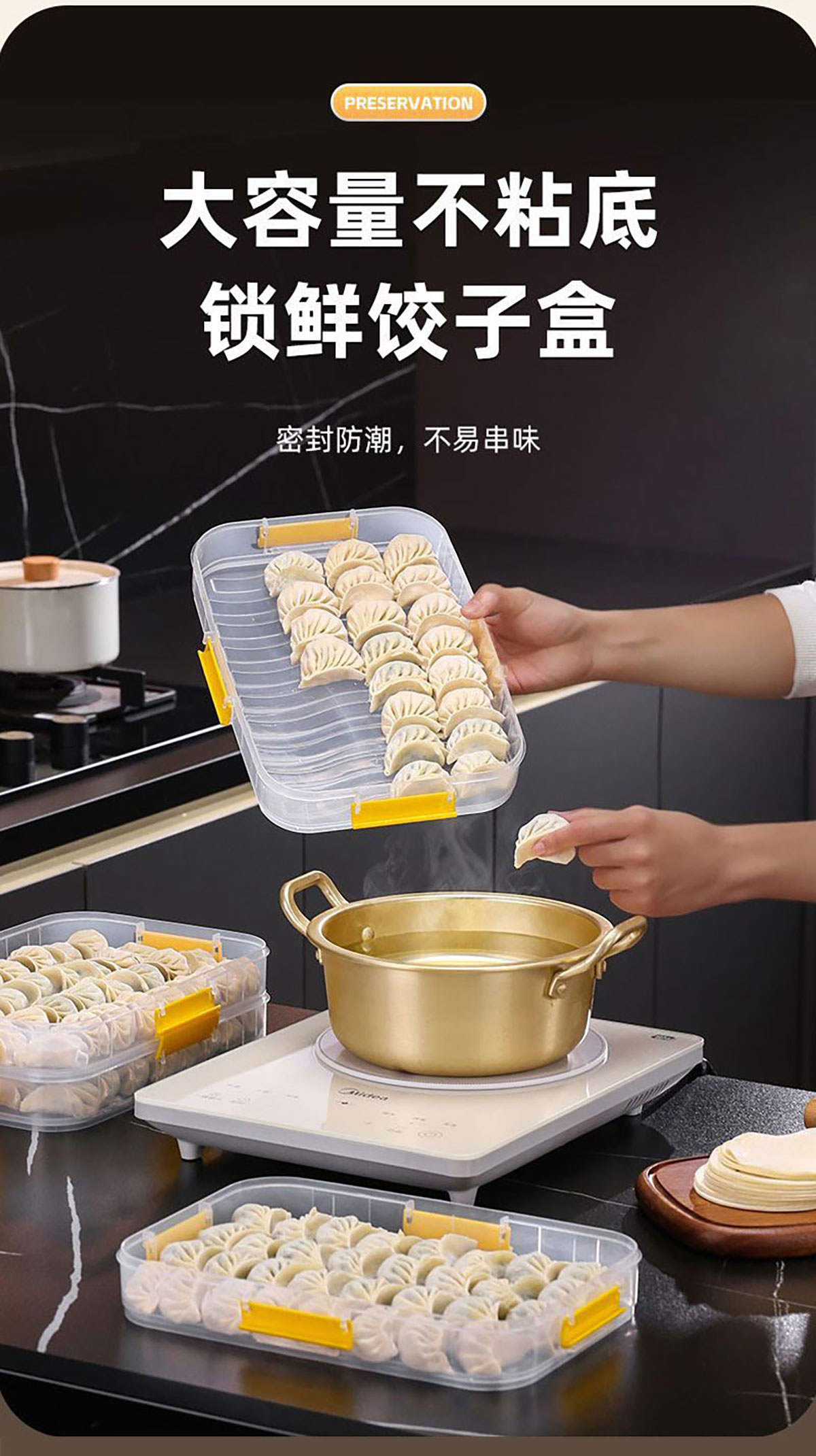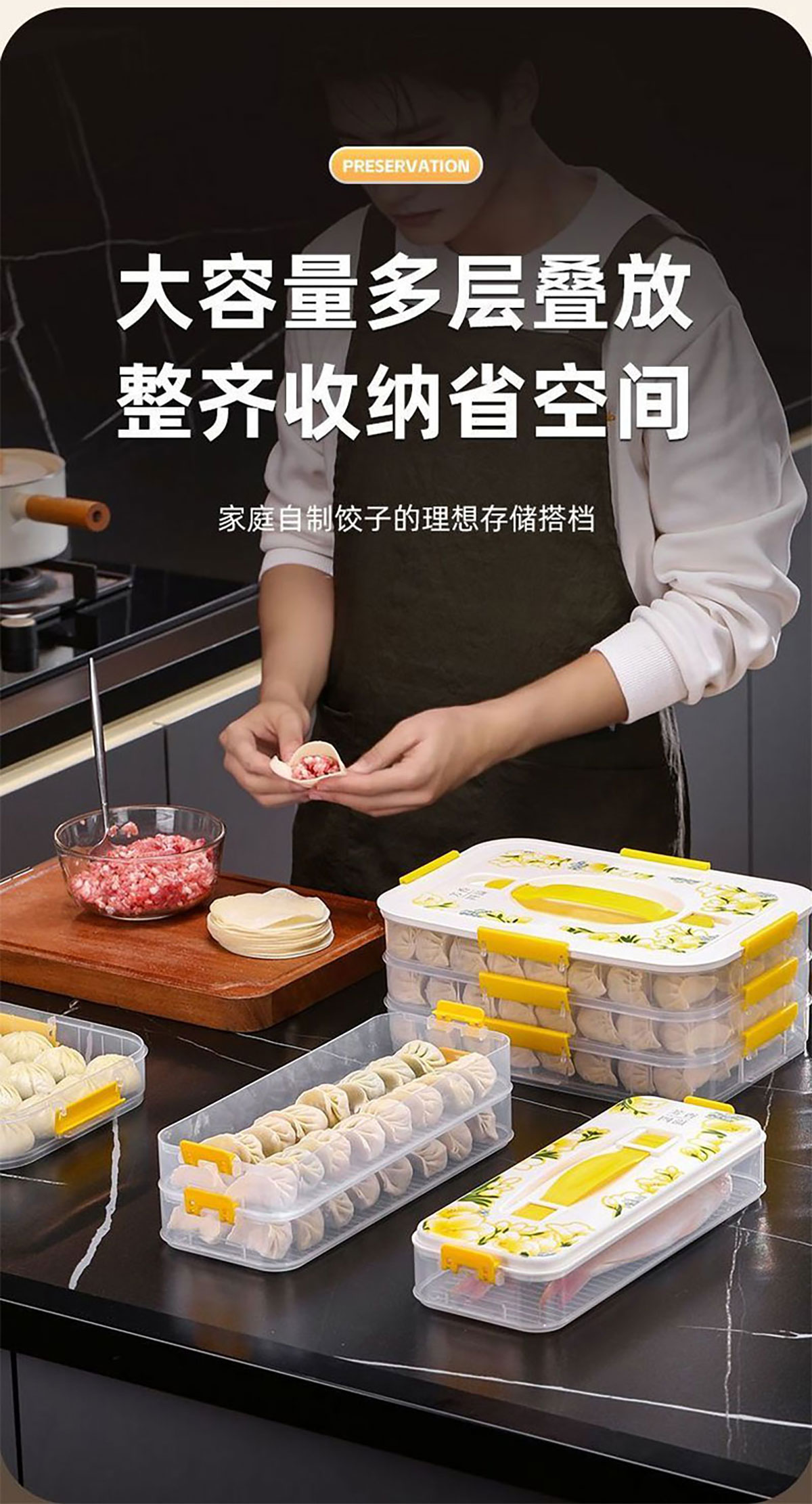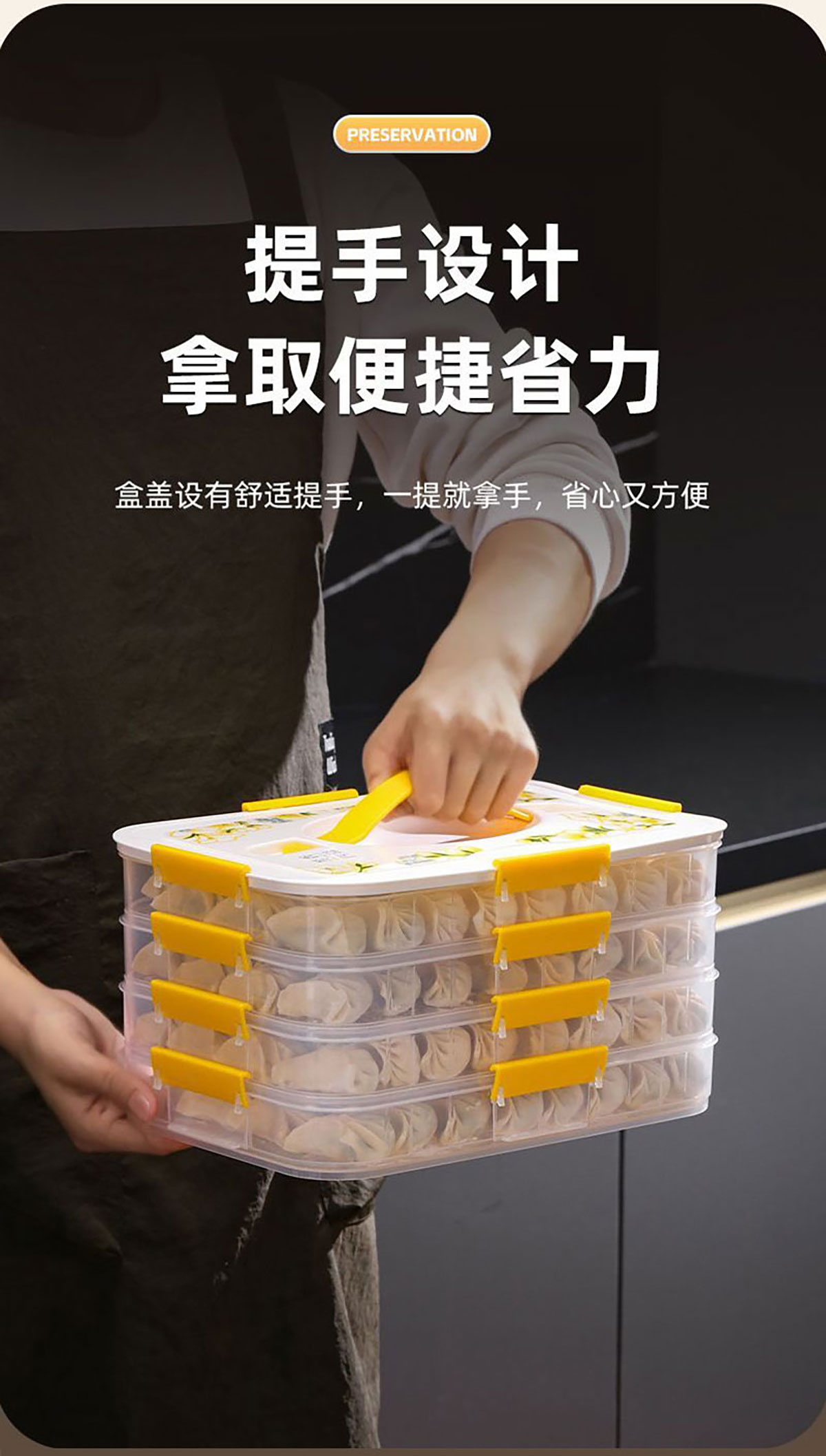 印花手提餃子收納盒(單層/2層/3層/4層) 窄款/寬款