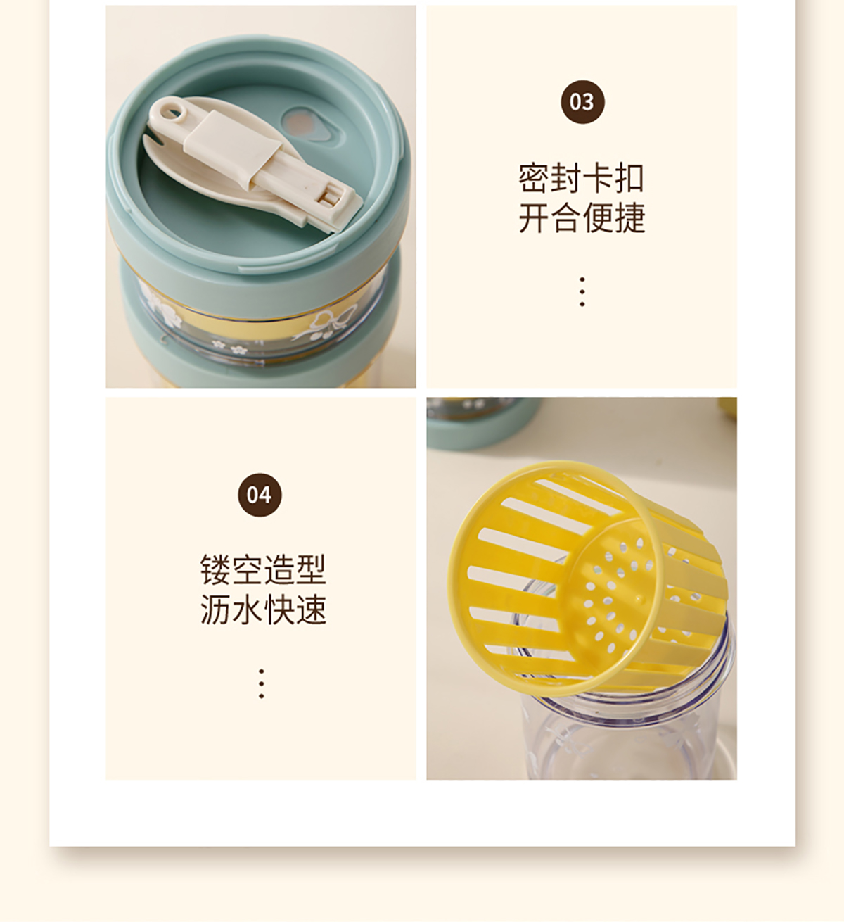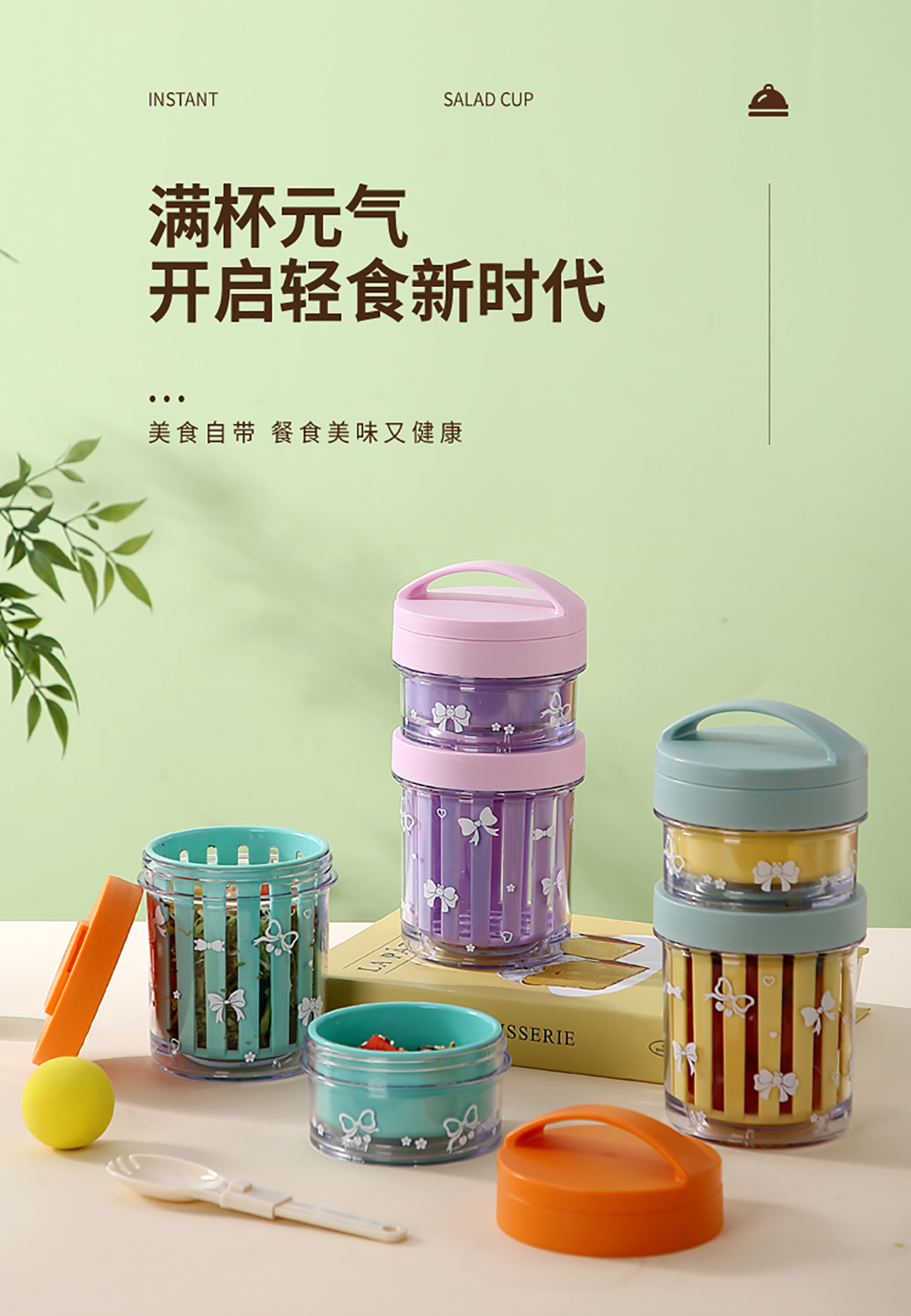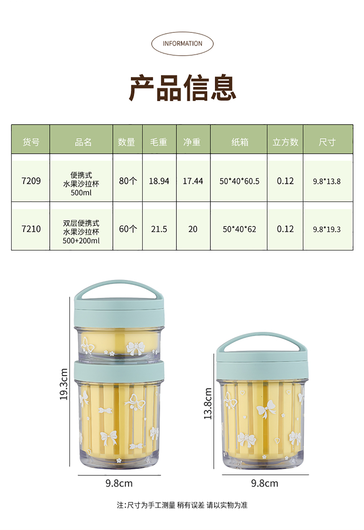 便攜式水果沙拉杯500ml/500+200ml(配PP折疊叉勺)