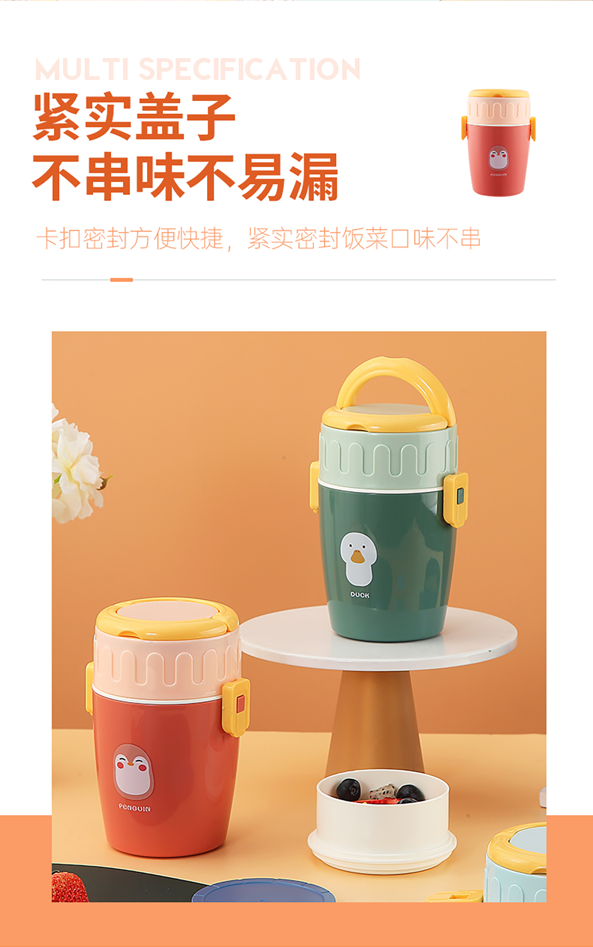呆萌卡通雙層餐盒(圓錐形)850ml