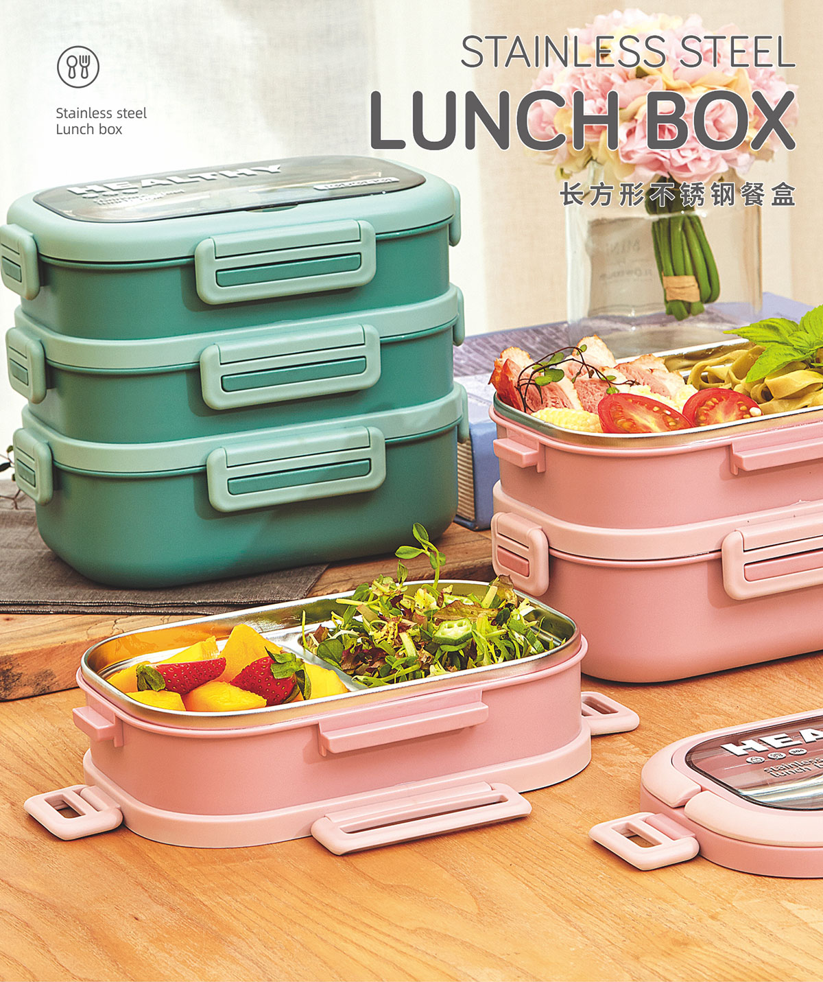 長方形單層(小號/大號)便捷(雙層/三層)不銹鋼餐盒