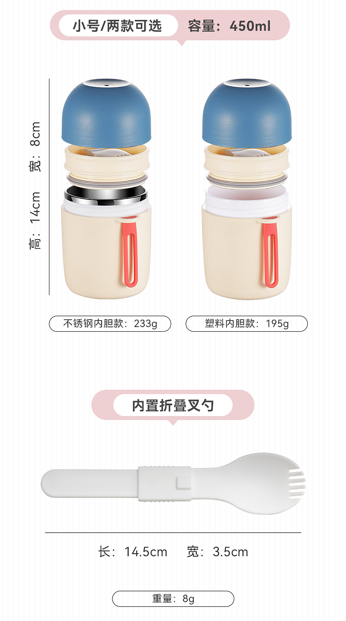 SWY-TB450W(不銹鋼款):直徑93*高140mm/450ml