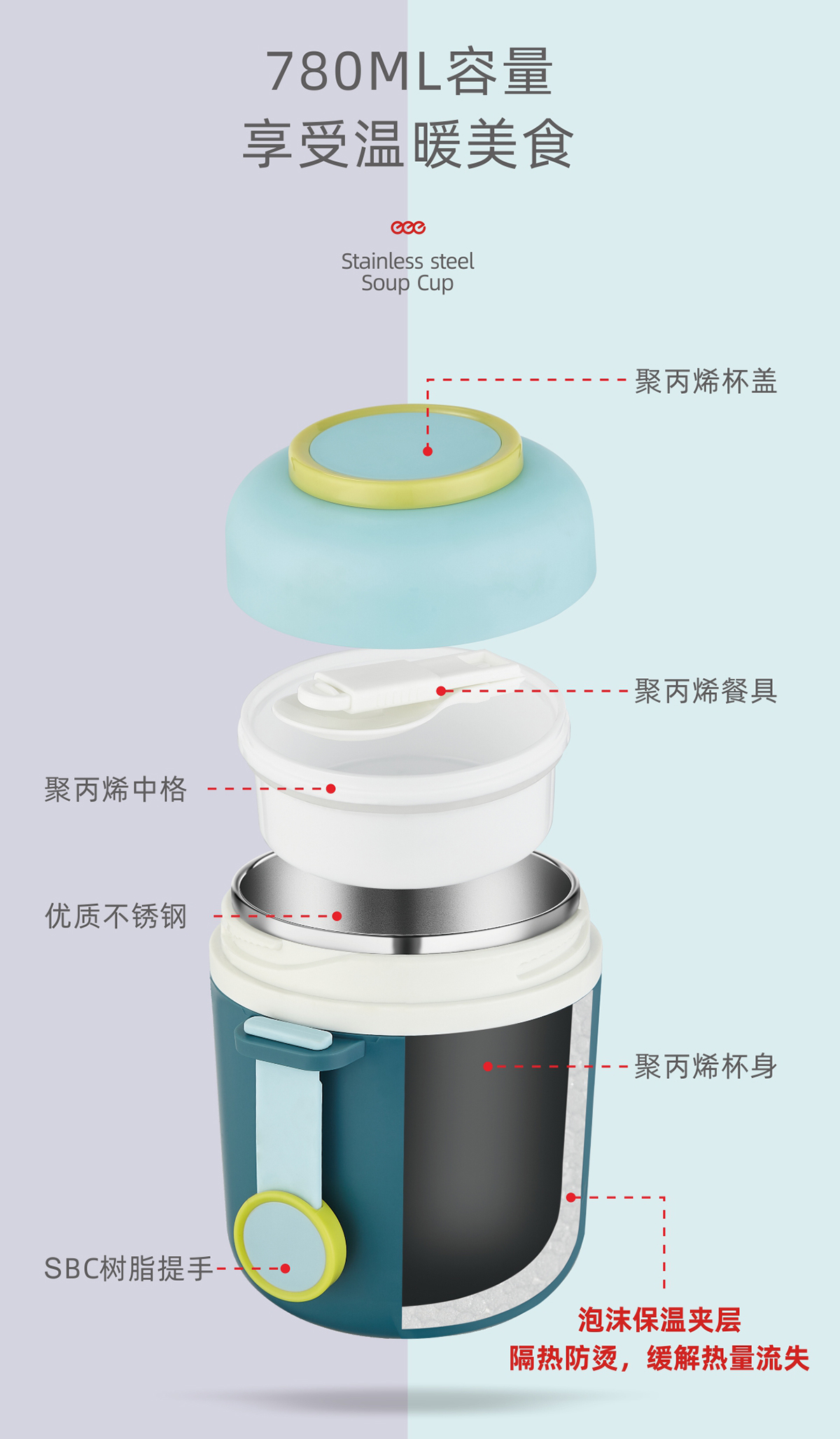 大號(hào)不銹鋼湯杯780ml
