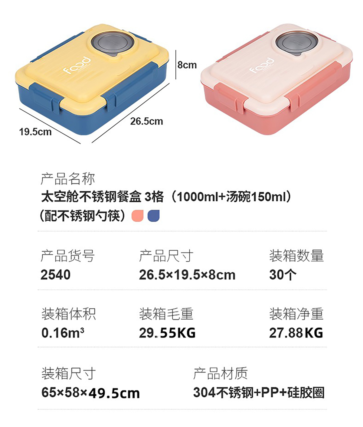 Stuff:304不銹鋼+PP+硅膠圈/彩盒