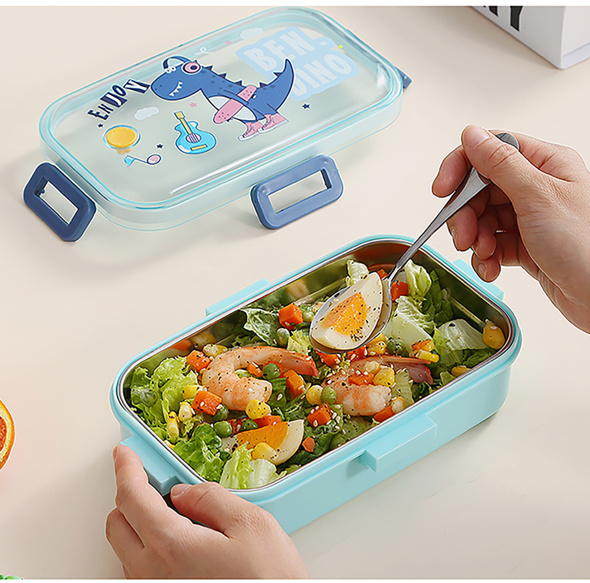 700ml萌趣密封不銹鋼餐盒(卡通單格/二格/二格+碗100ml+不銹鋼勺)