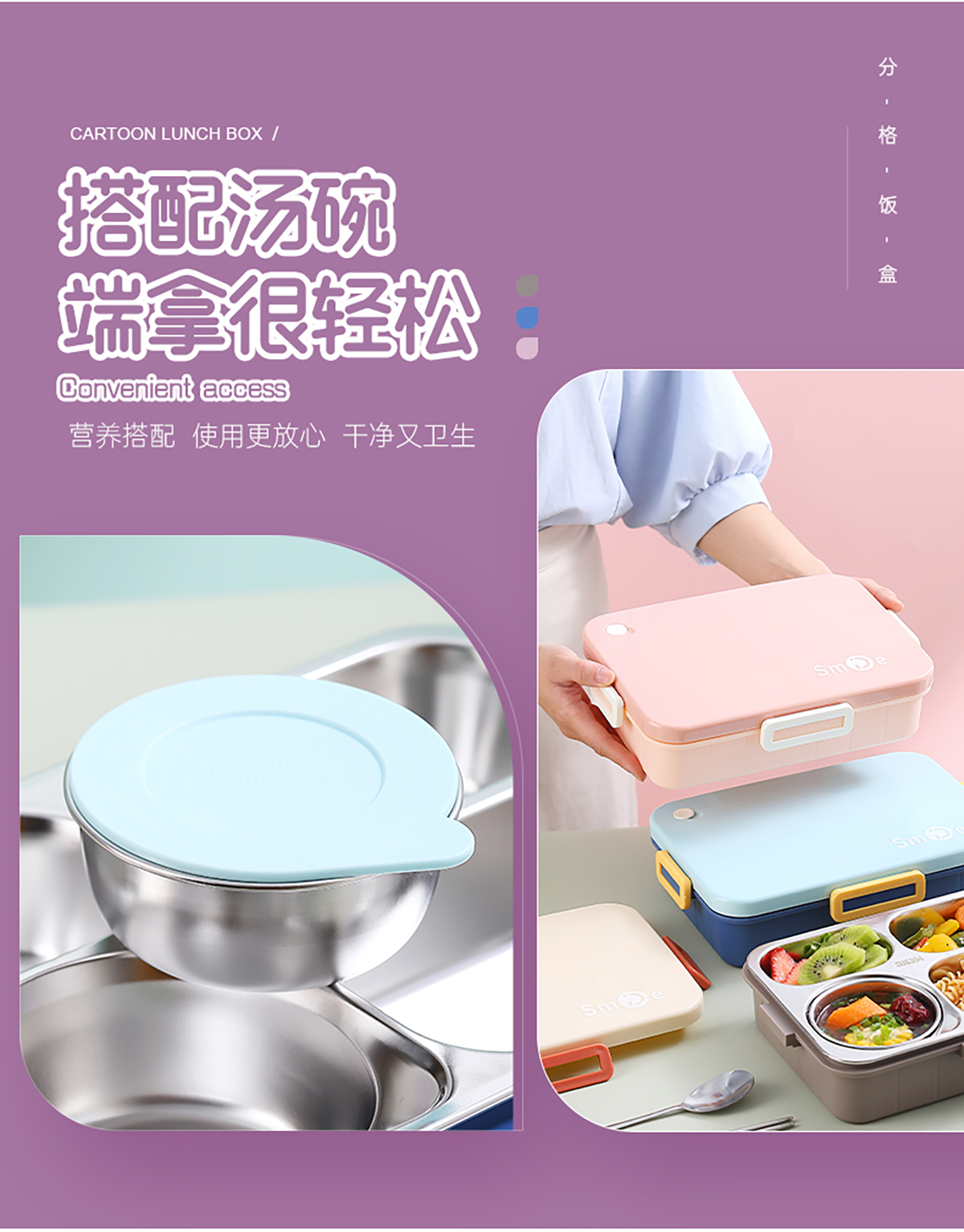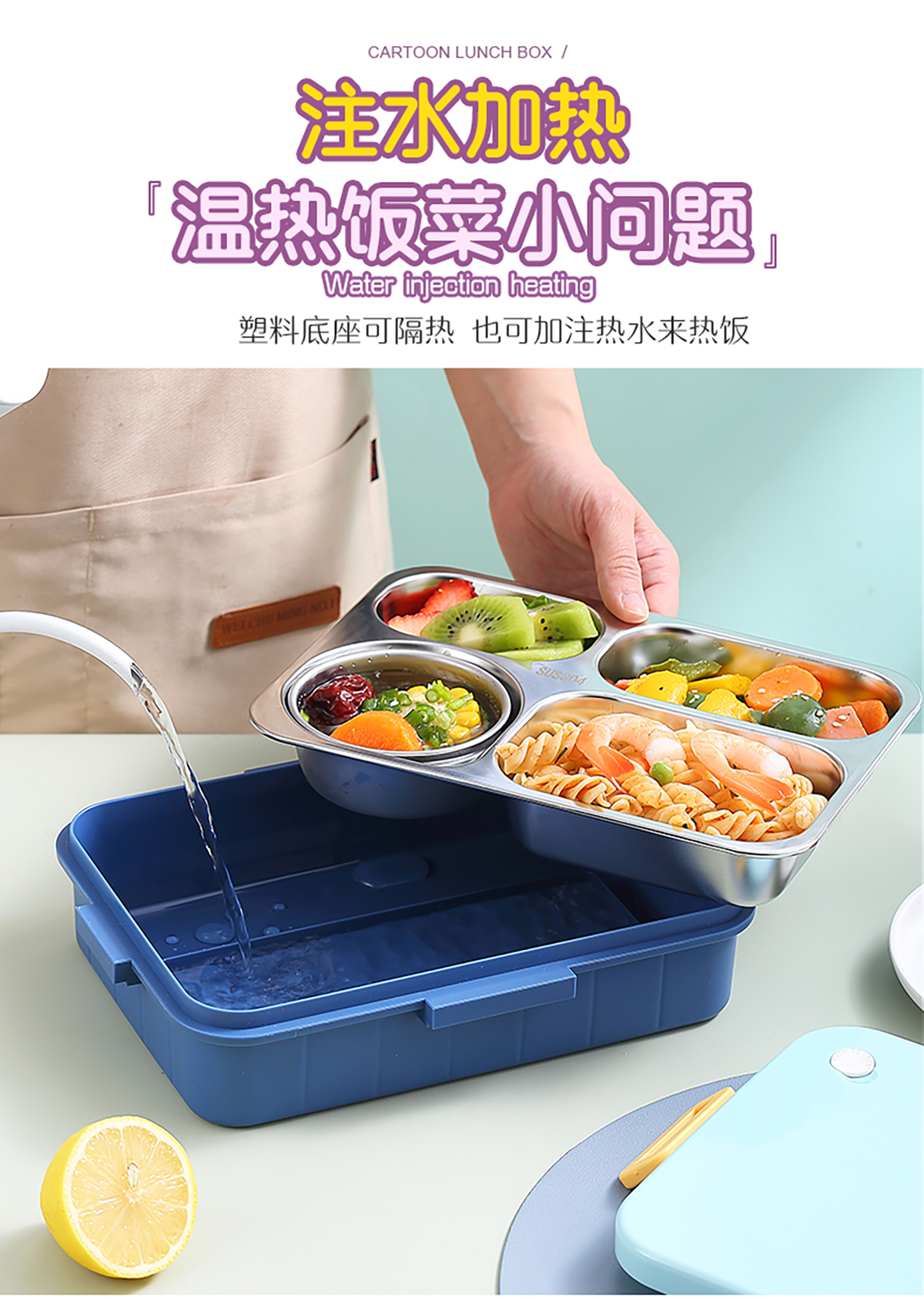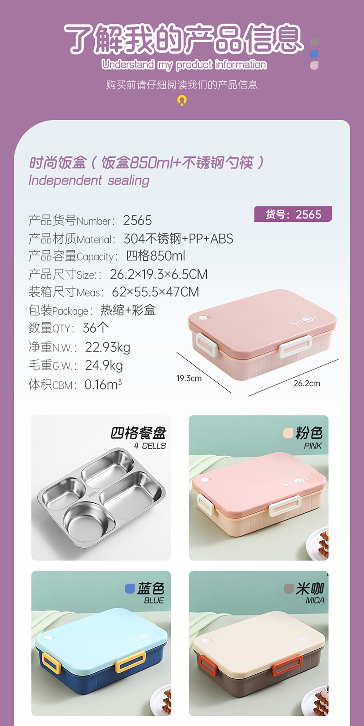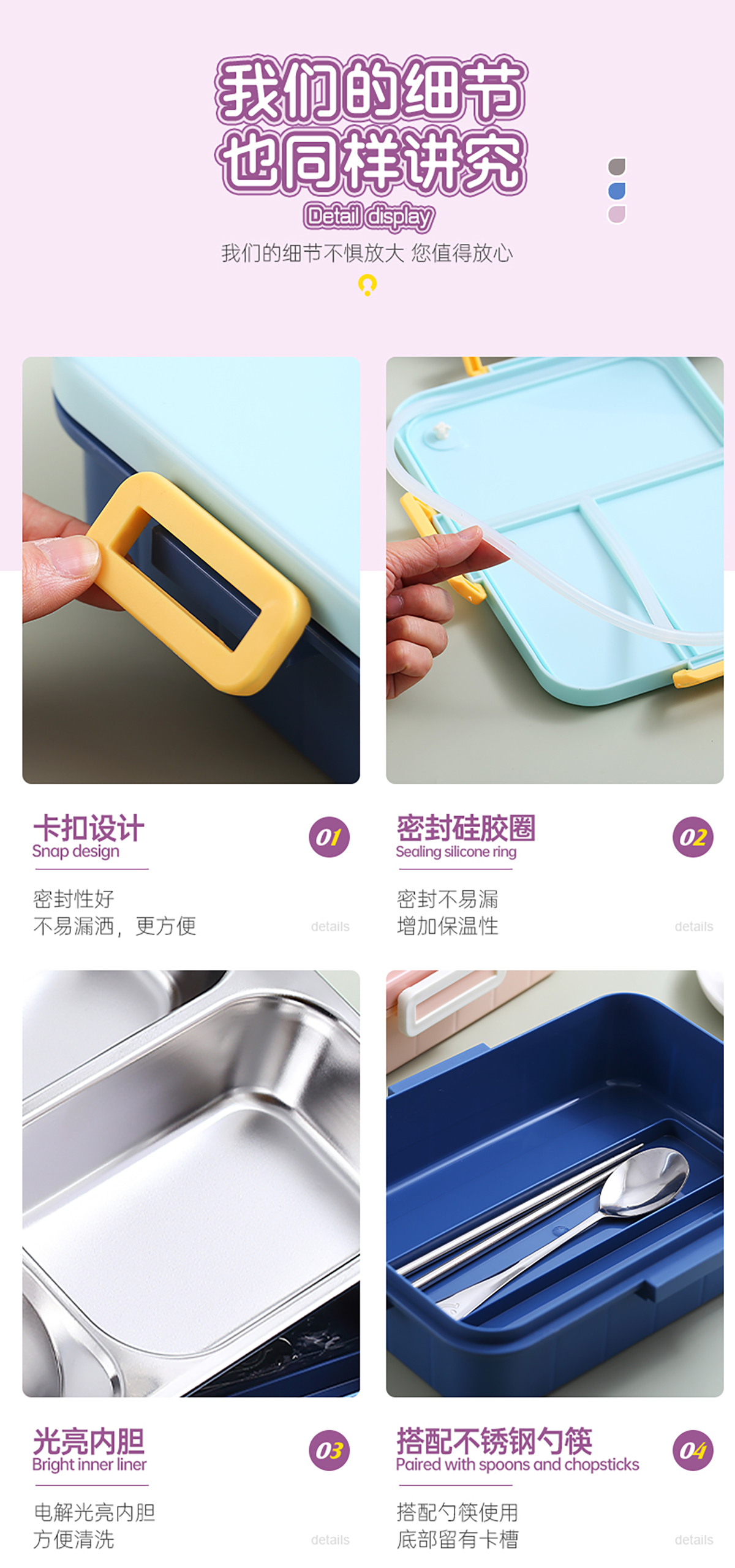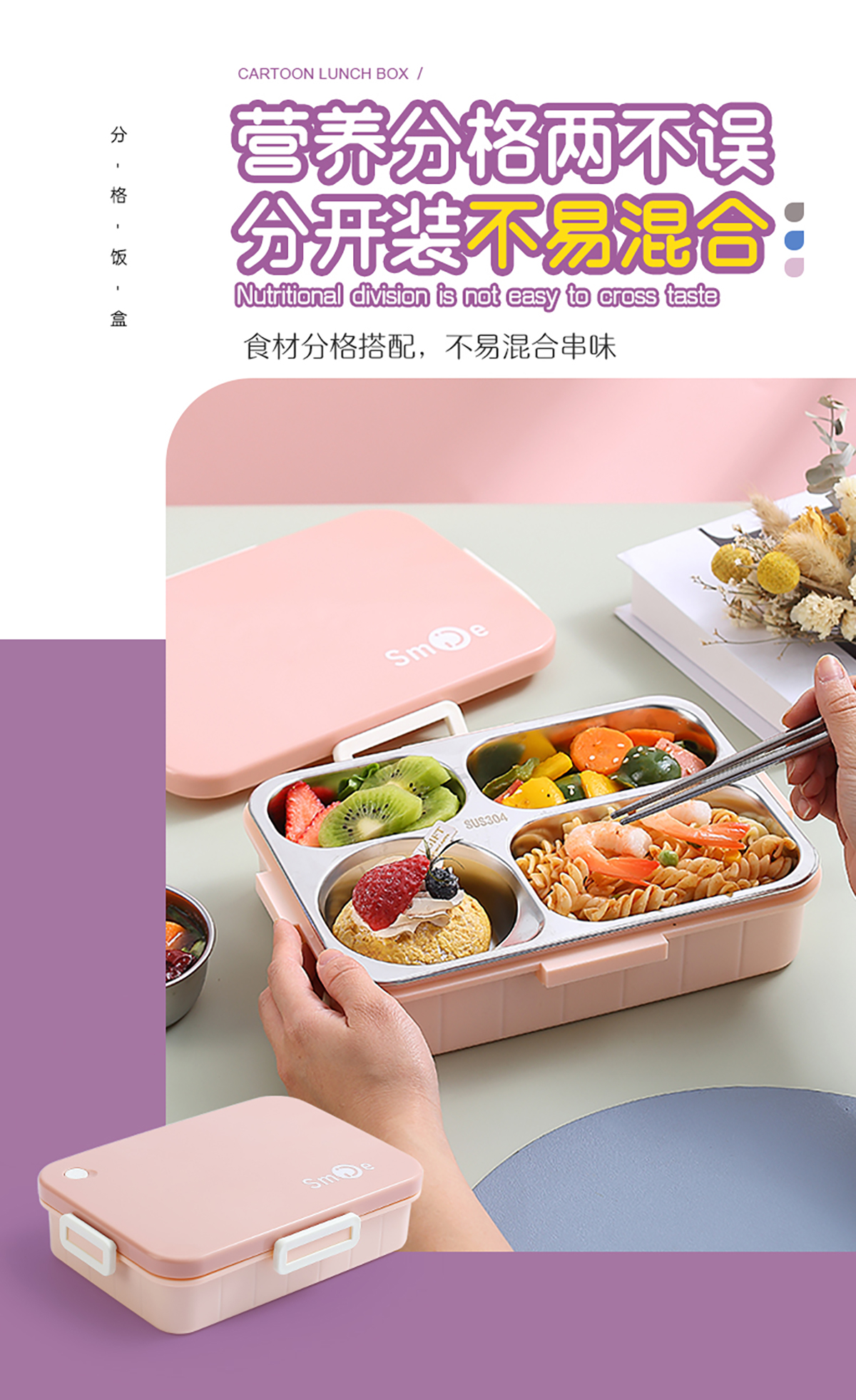 900ml獨立密封不銹鋼餐盒(時尚四格+不銹鋼勺筷/碗150ml不銹鋼勺筷)