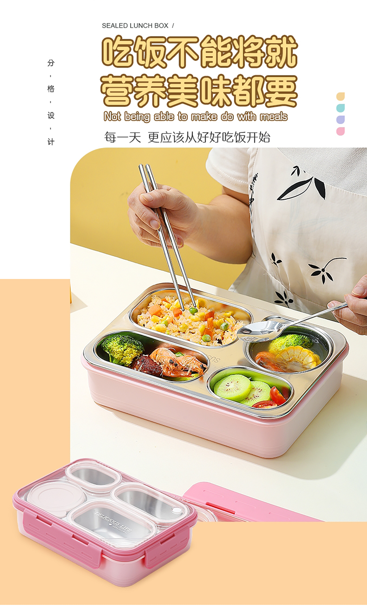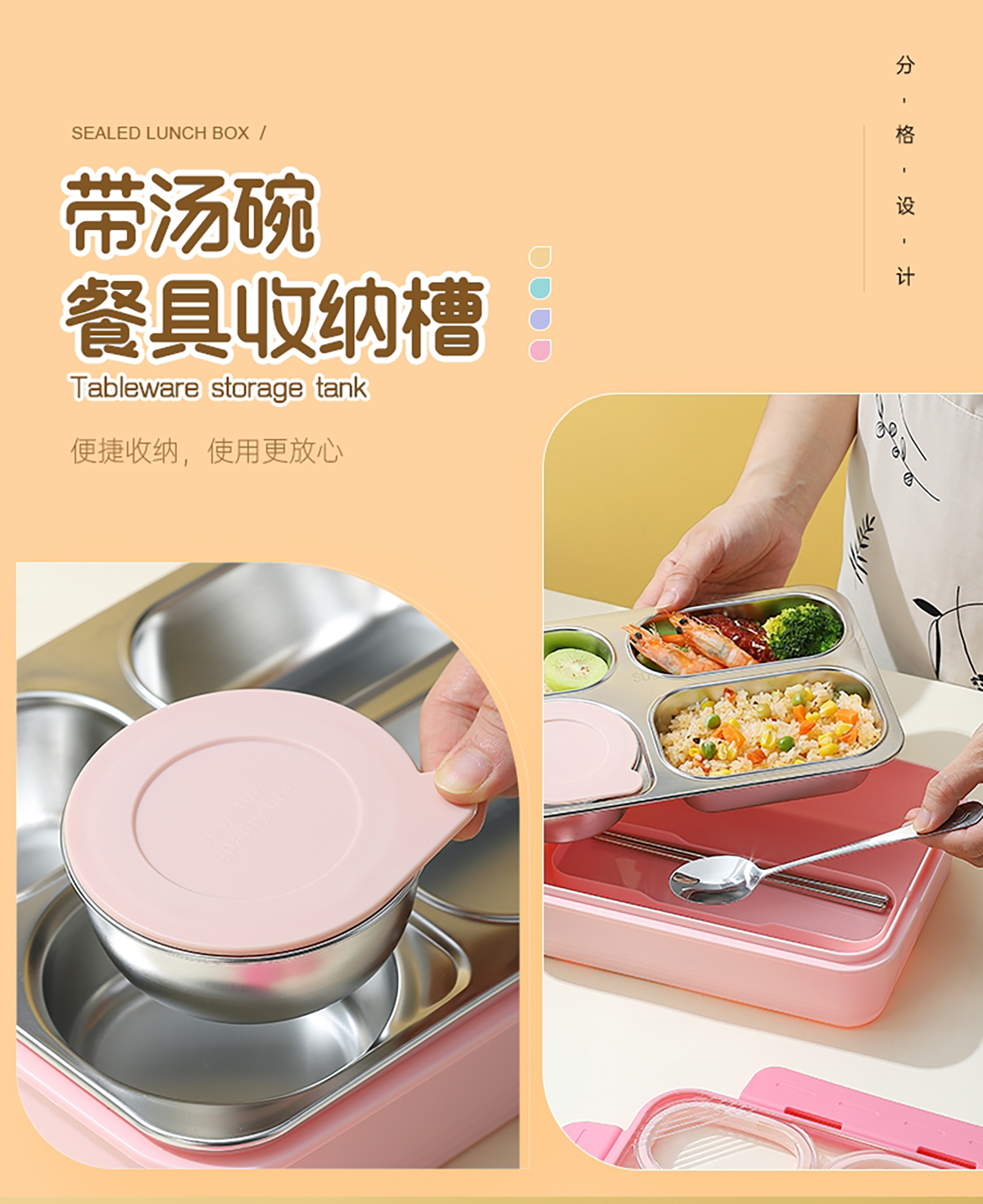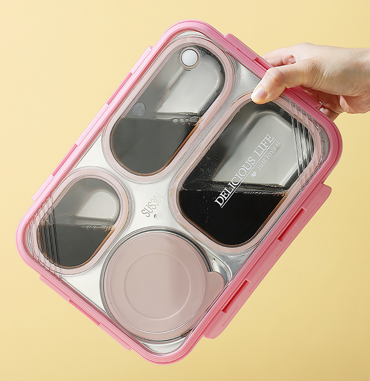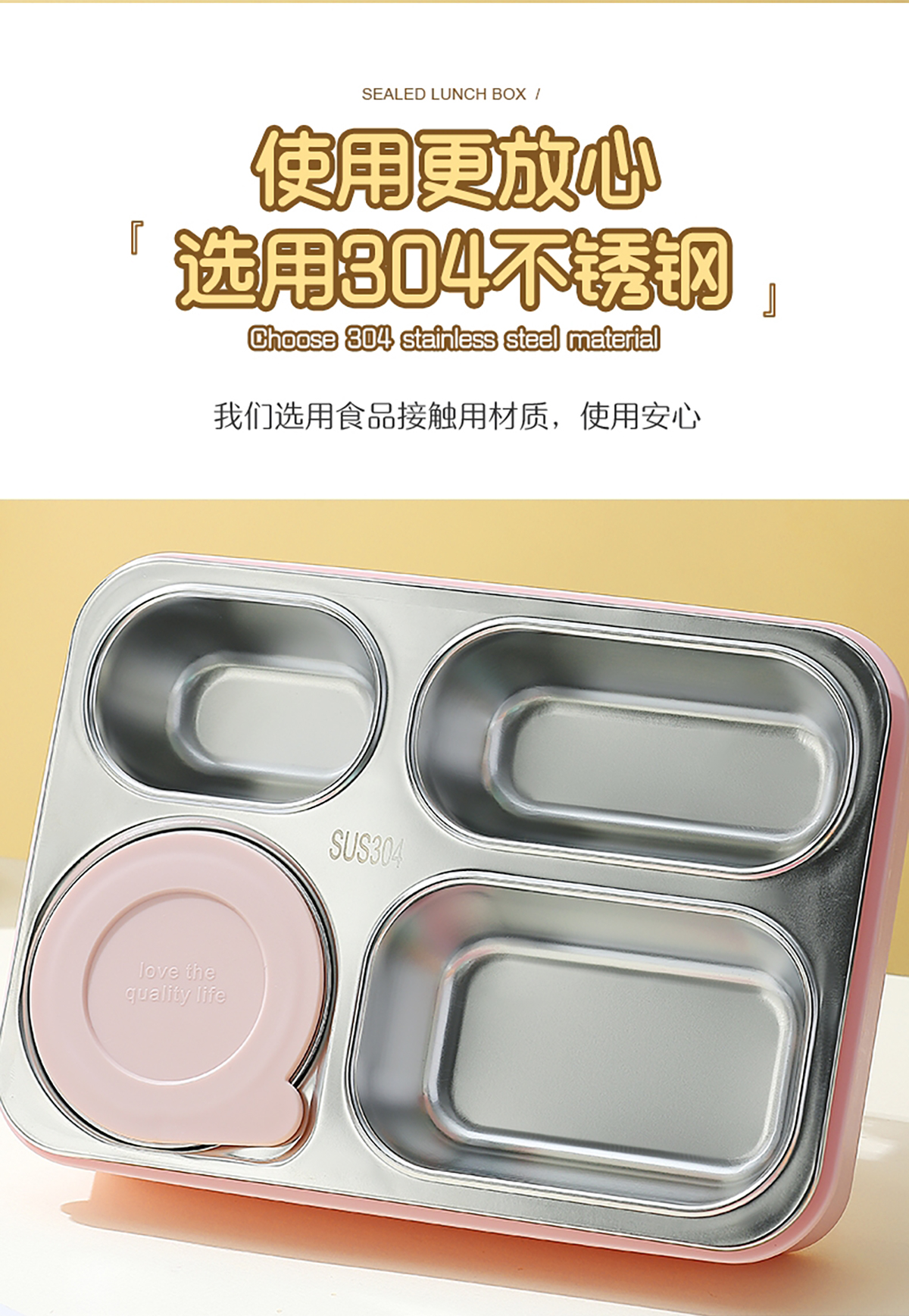 中號4格不串味不銹鋼餐盒帶碗800ml+150ml碗