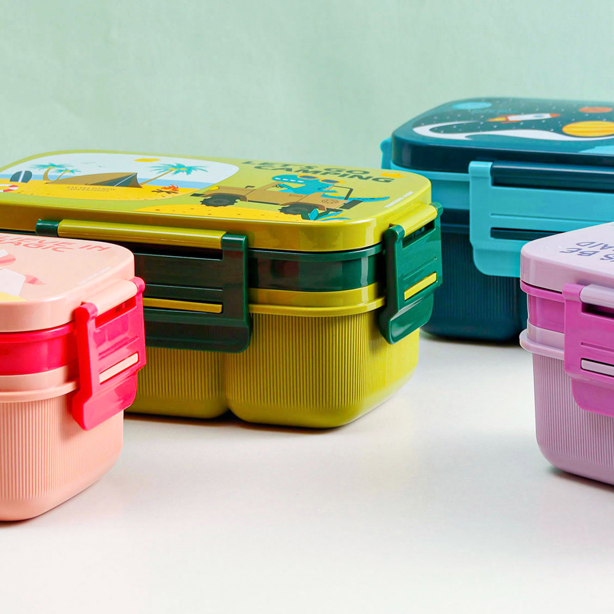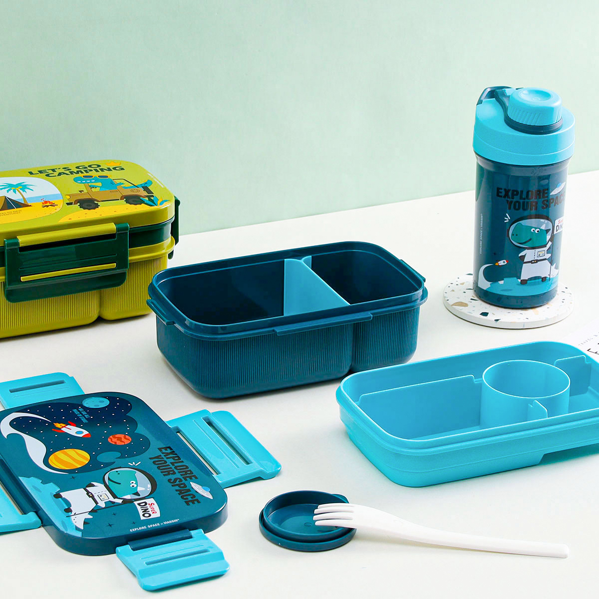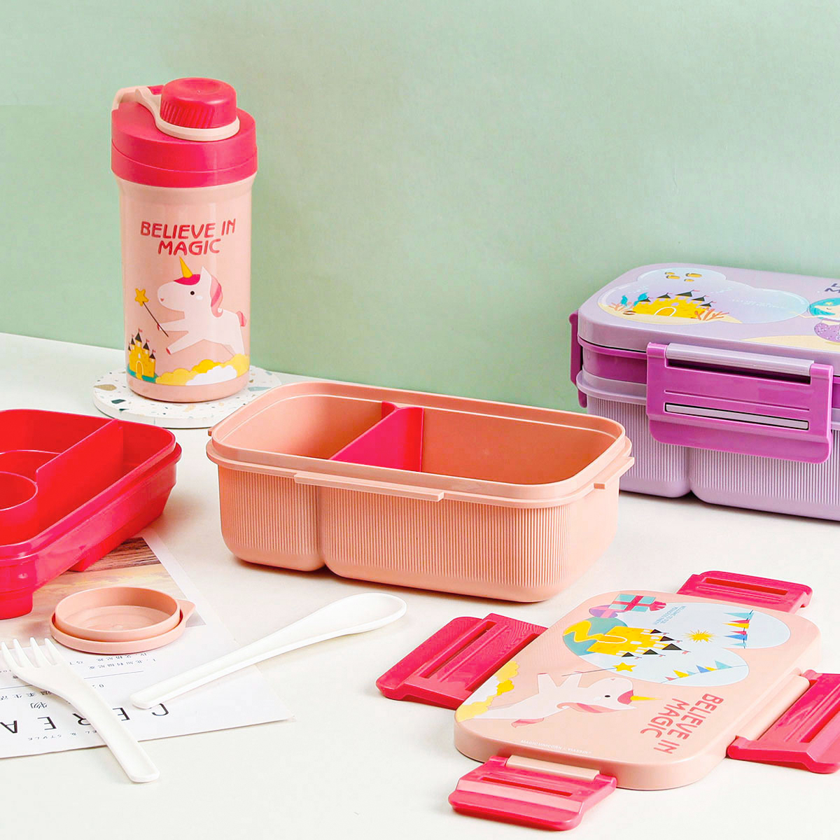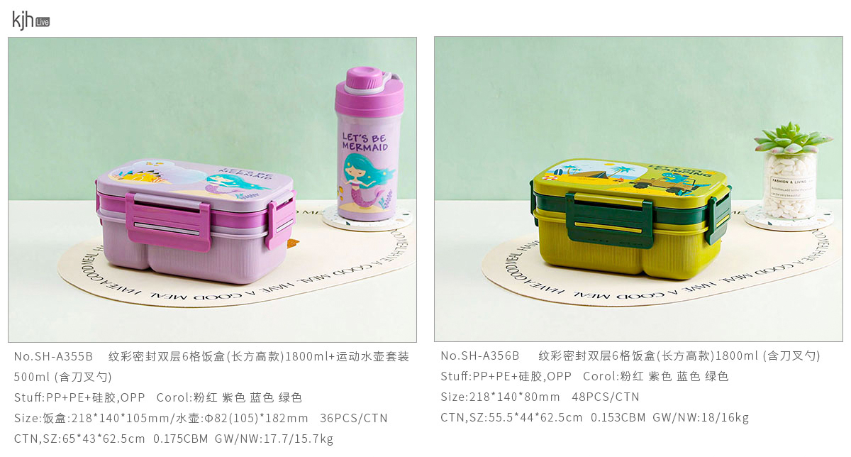 紋彩密封雙層6格飯盒(長(zhǎng)方高款)1800ml+運(yùn)動(dòng)水壺套裝500ml (含刀叉勺)