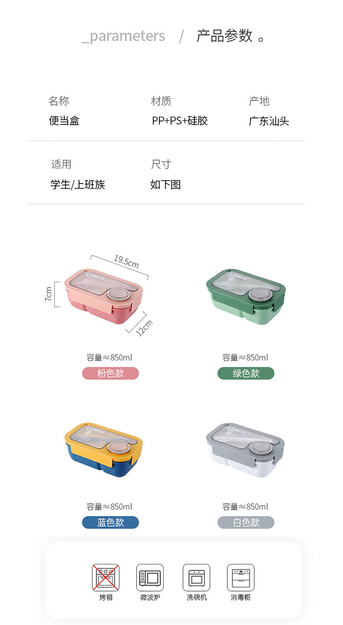 長(zhǎng)方形飯盒850ml