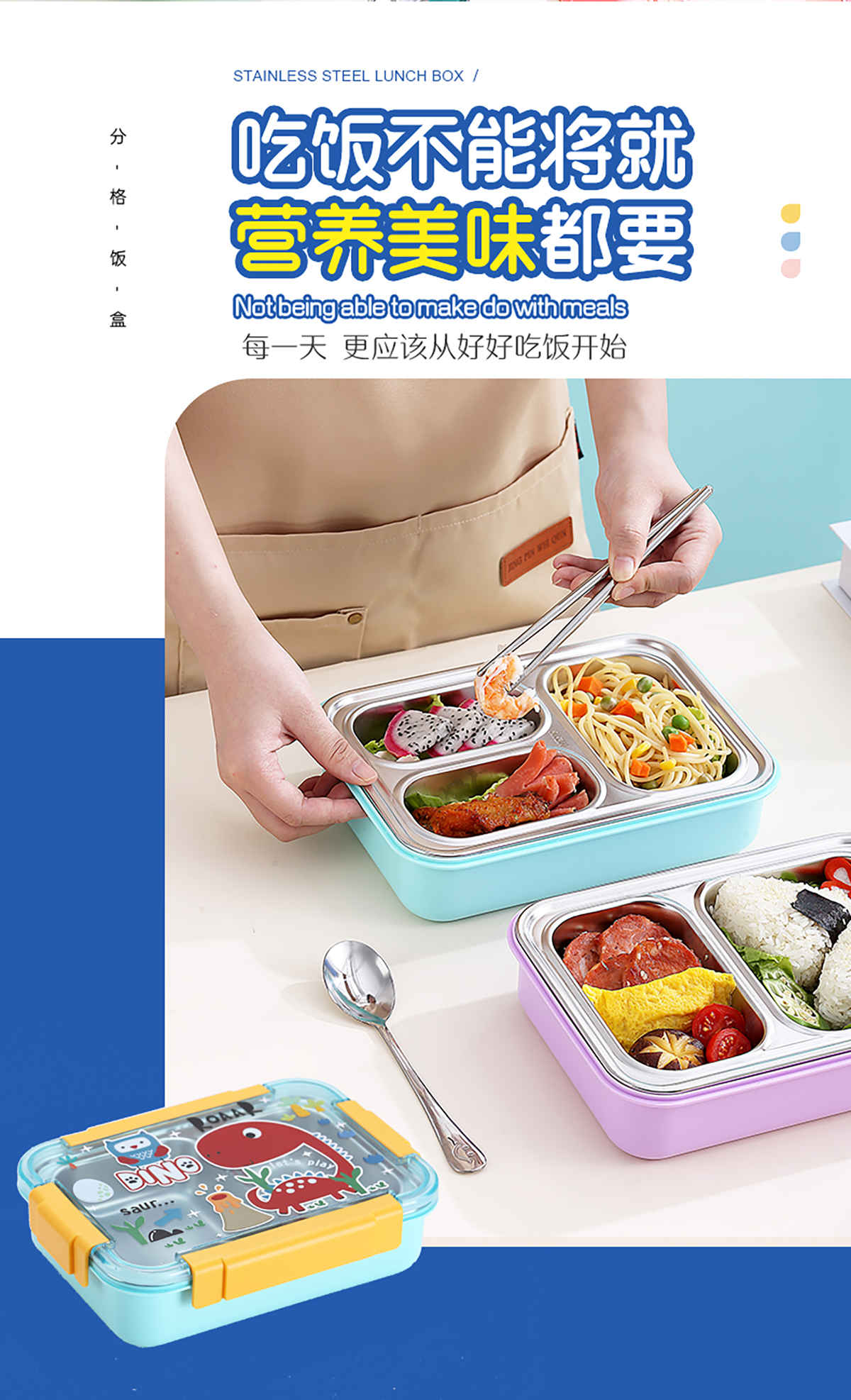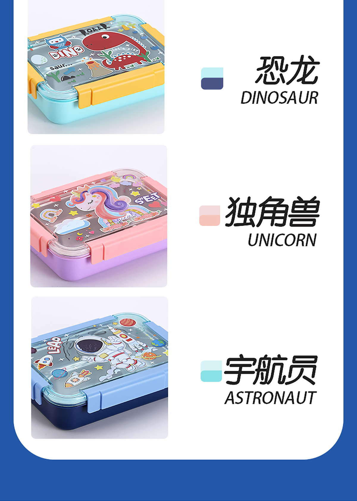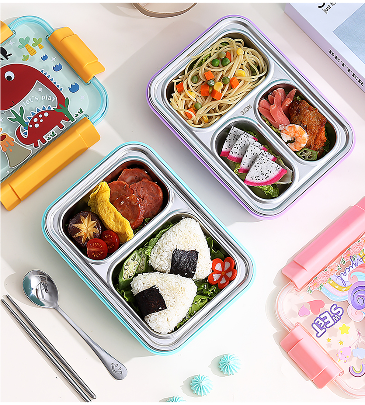 幻彩卡通密封不銹鋼餐盒(2格750ml/3格710ml+不銹鋼筷勺)