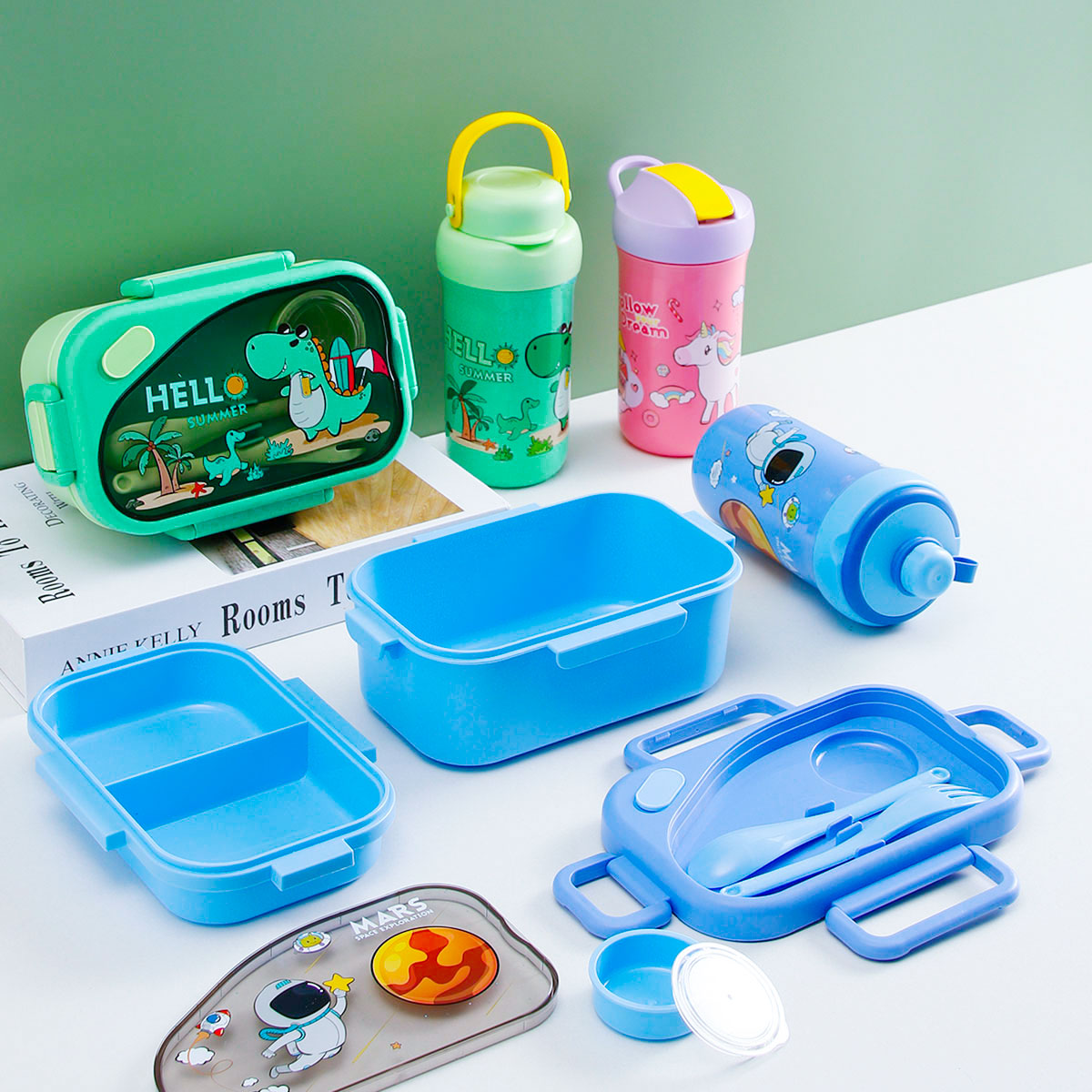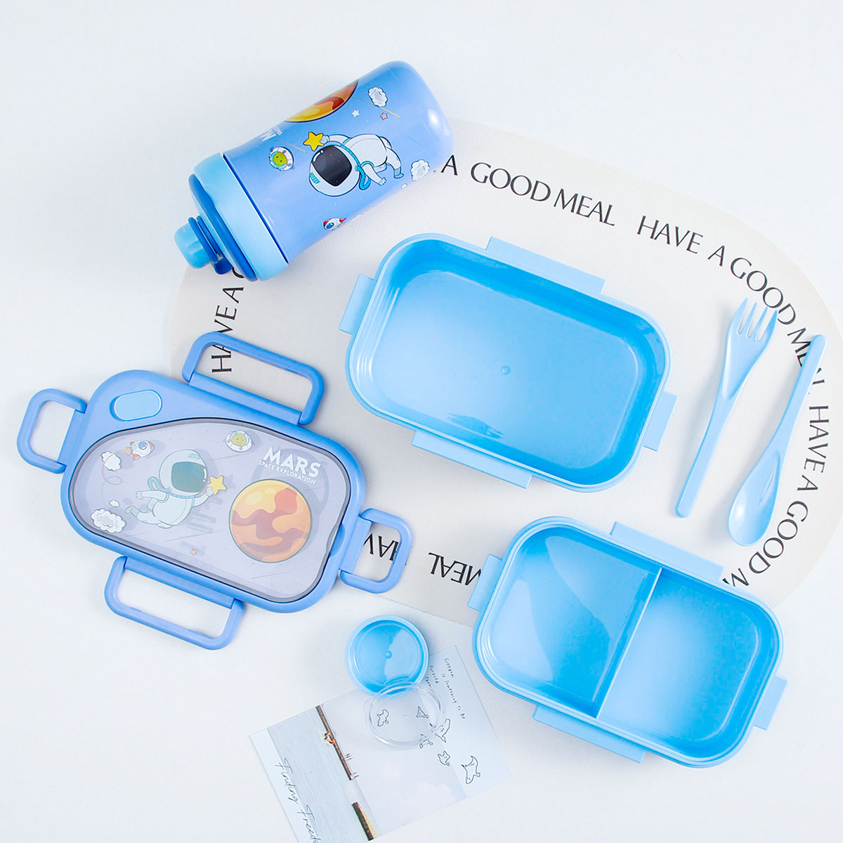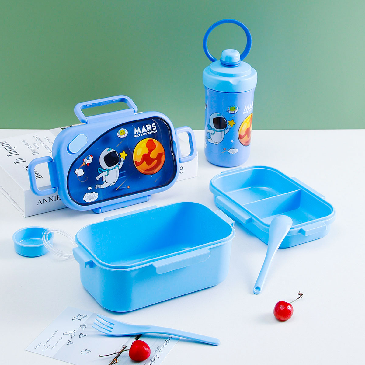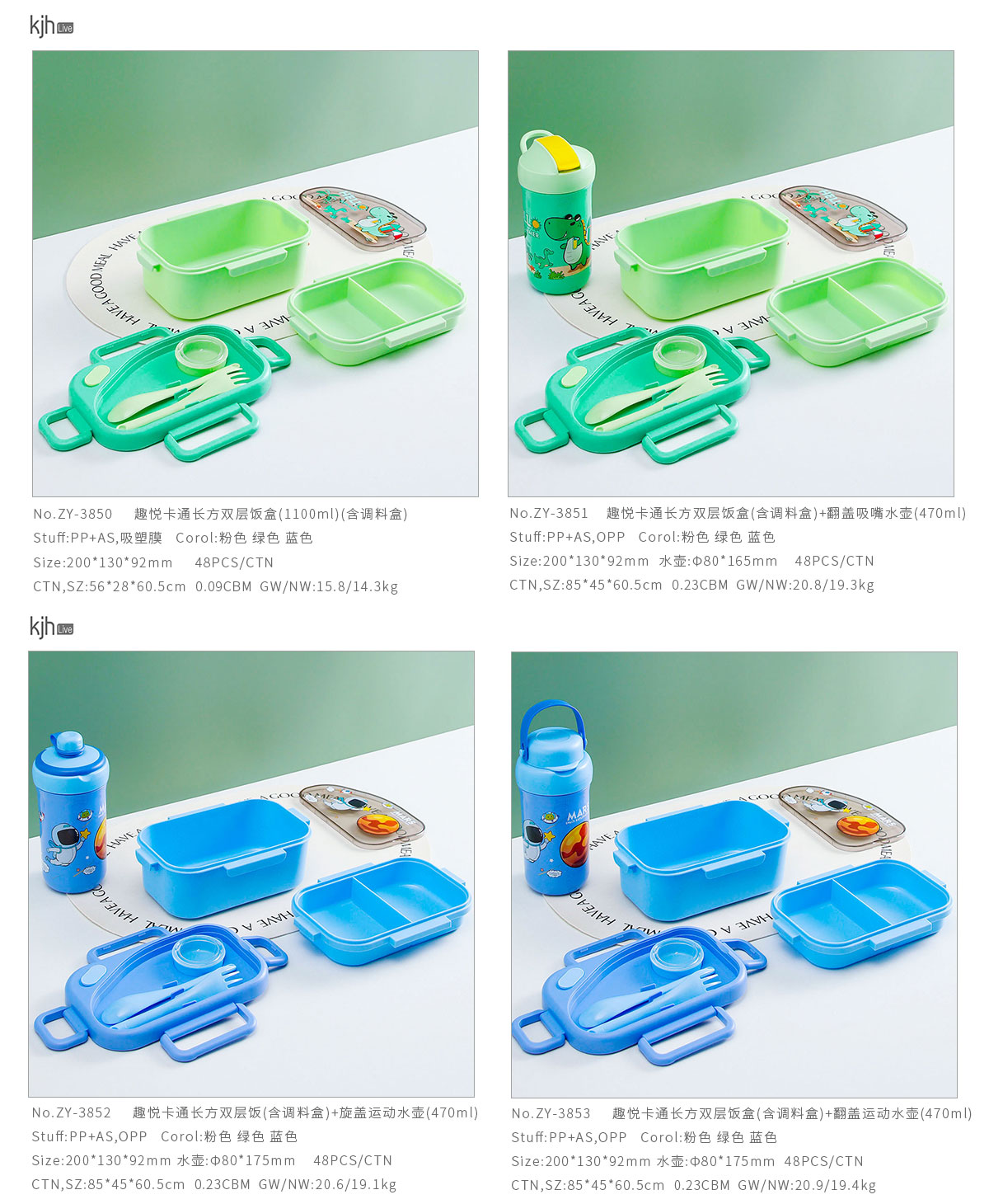 趣悅卡通長方雙層飯盒(含調(diào)料盒)+翻蓋吸嘴/旋蓋運(yùn)動/翻蓋運(yùn)動水壺