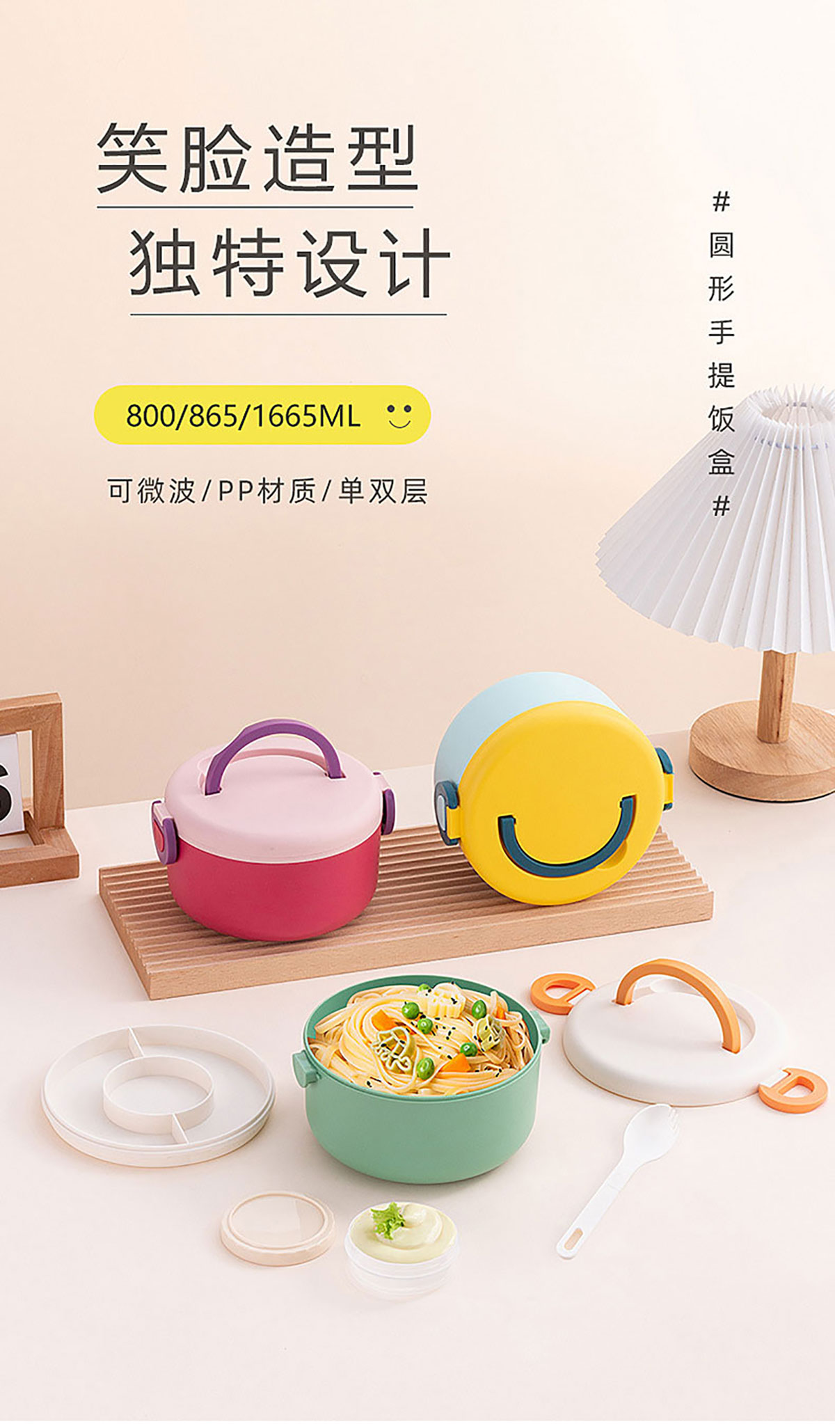 圓形笑臉飯盒單層/雙層(帶沙拉盒/塑料款)
