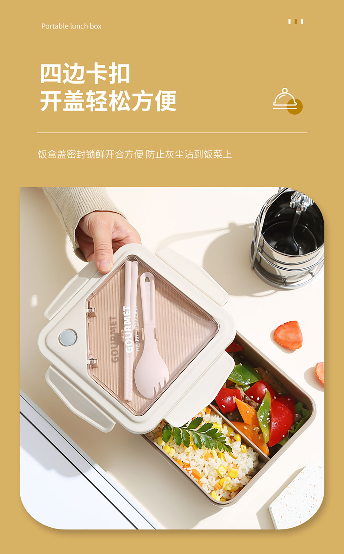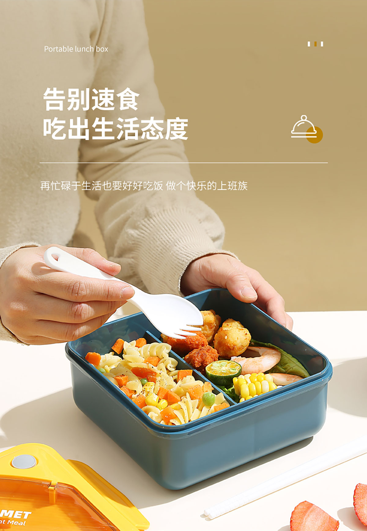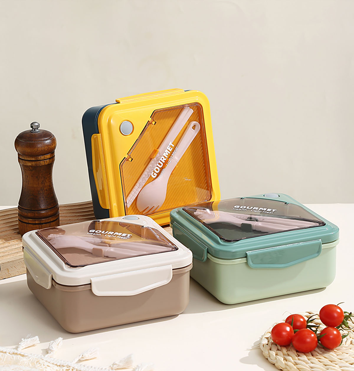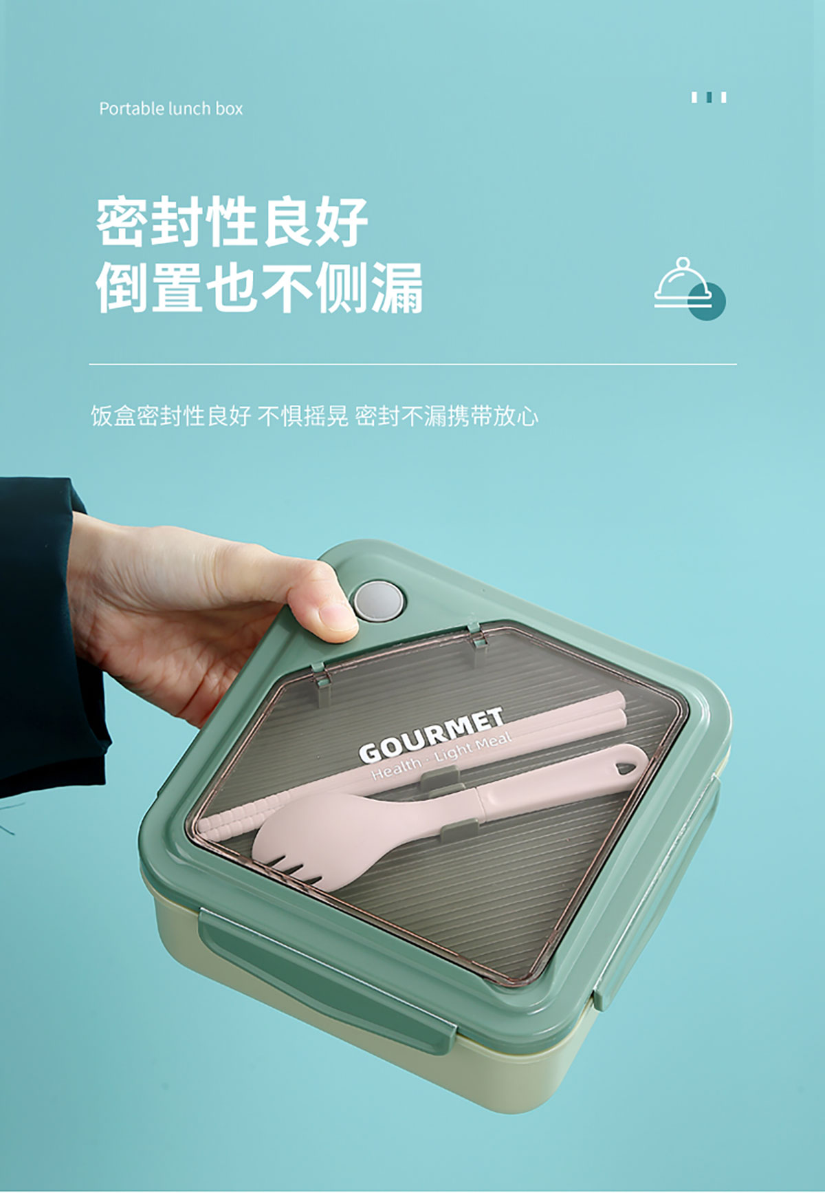 正品塑料飯盒塑料款1100ml筷/勺