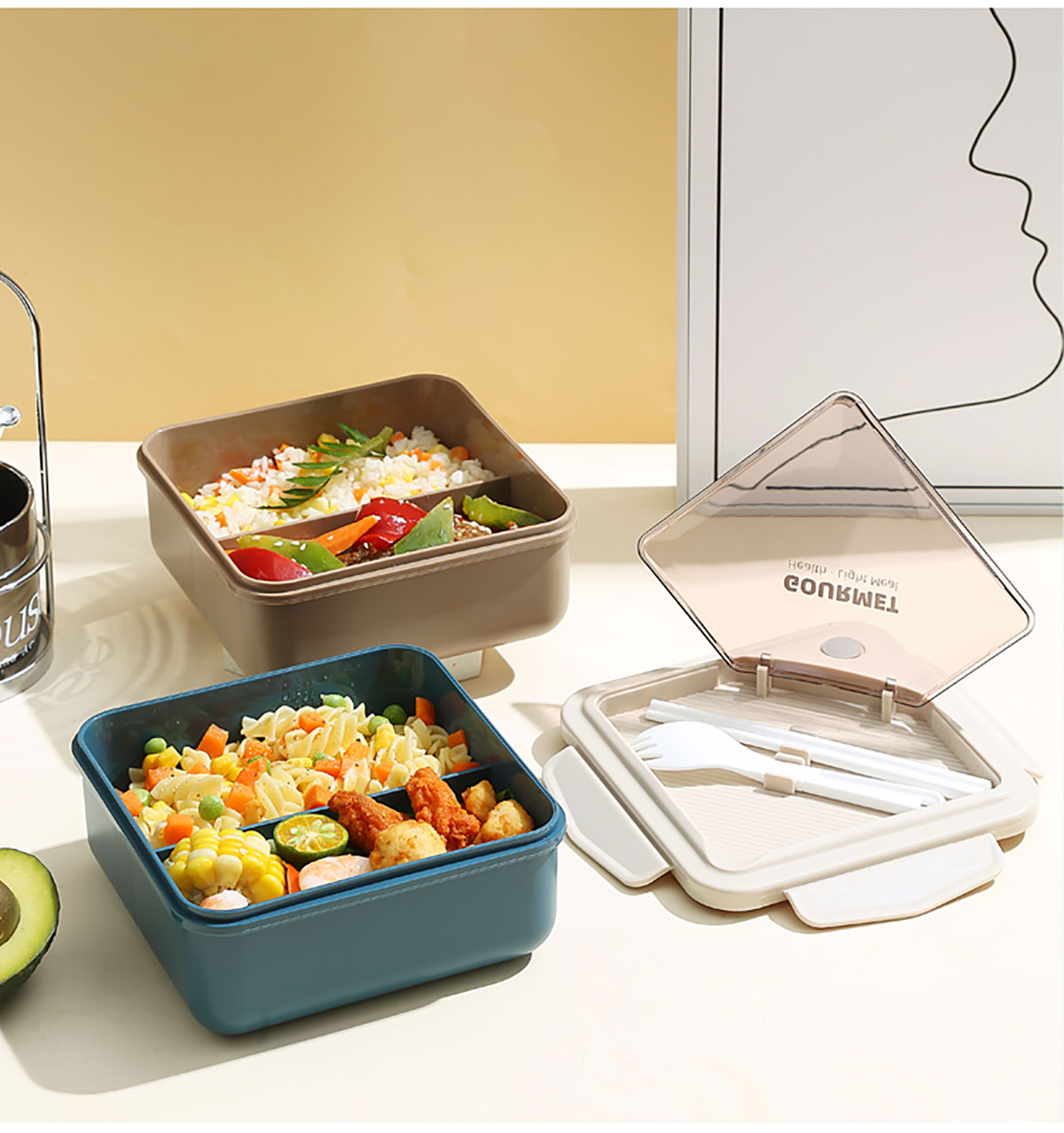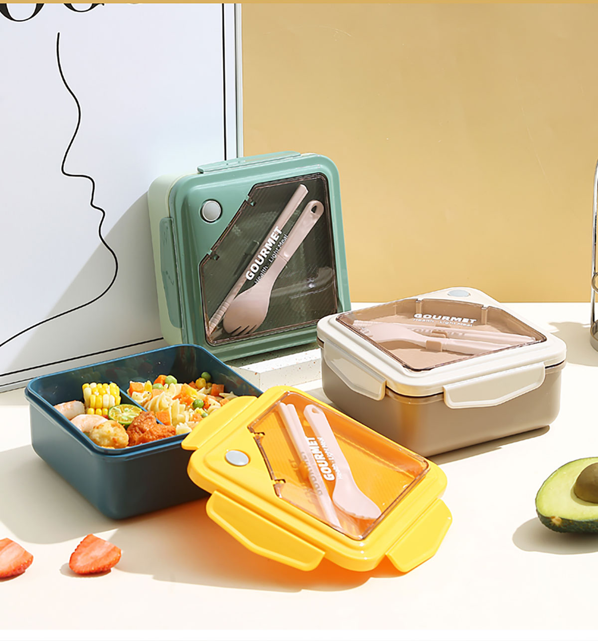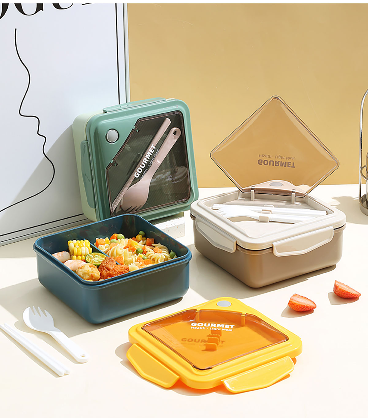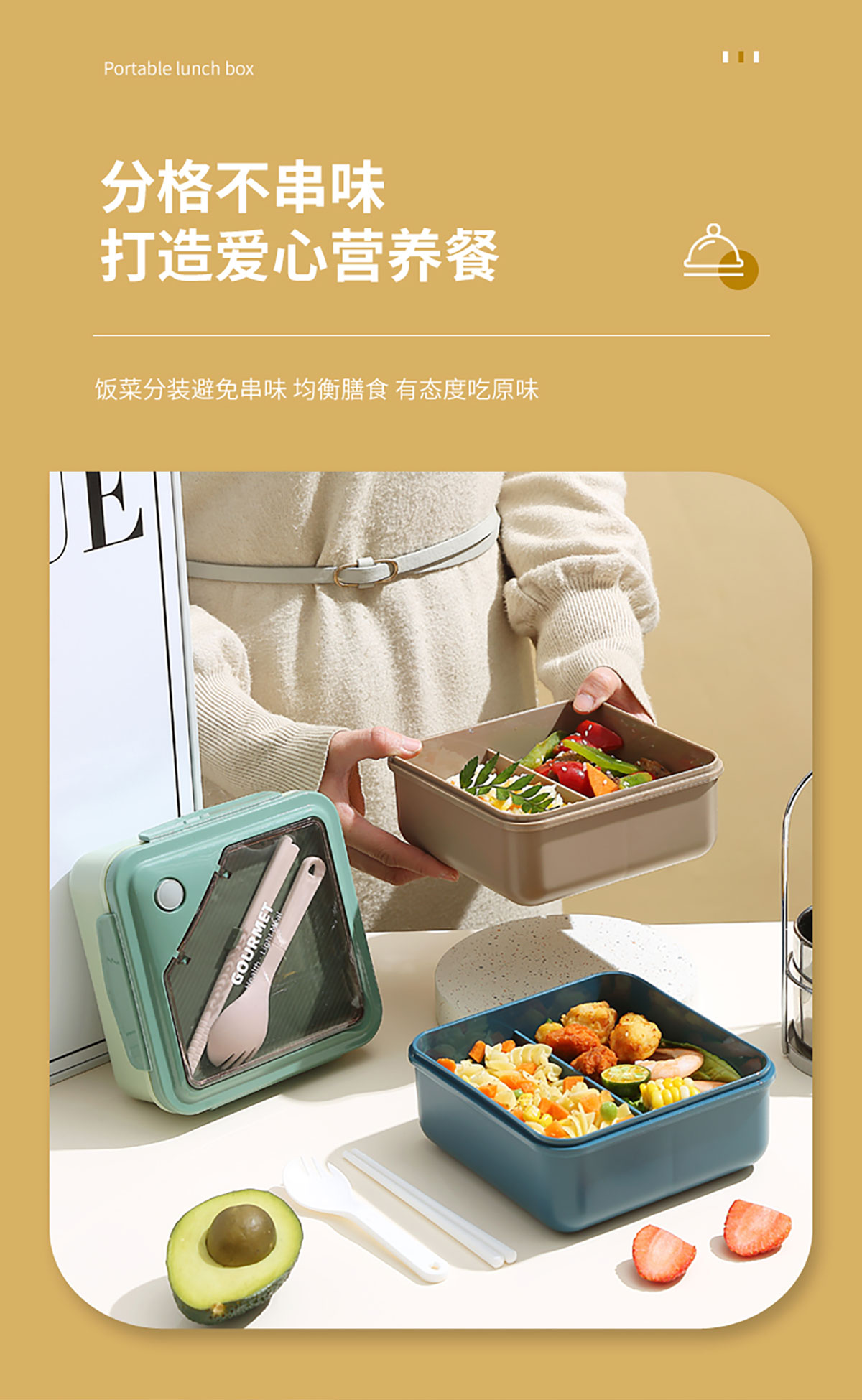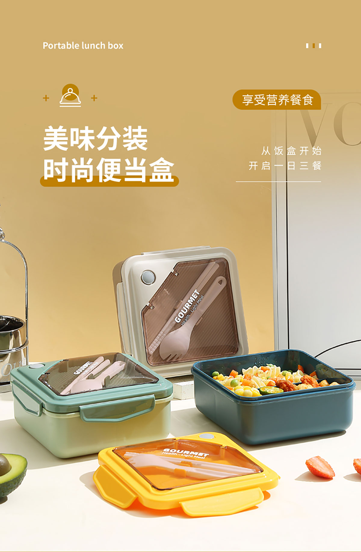 正品塑料飯盒塑料款1100ml筷/勺