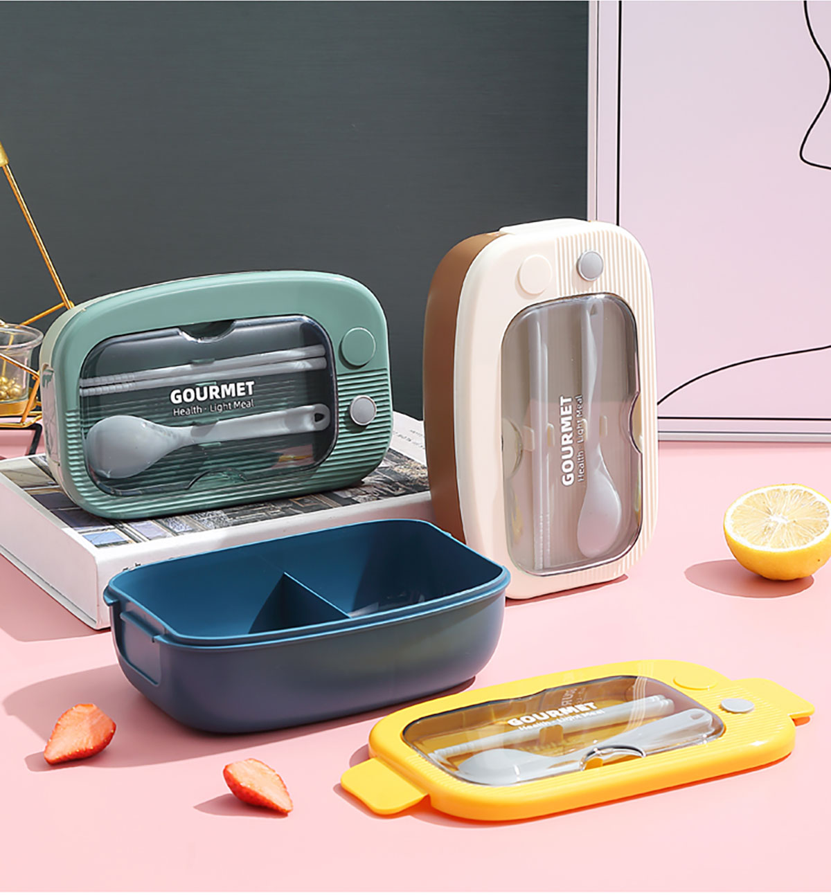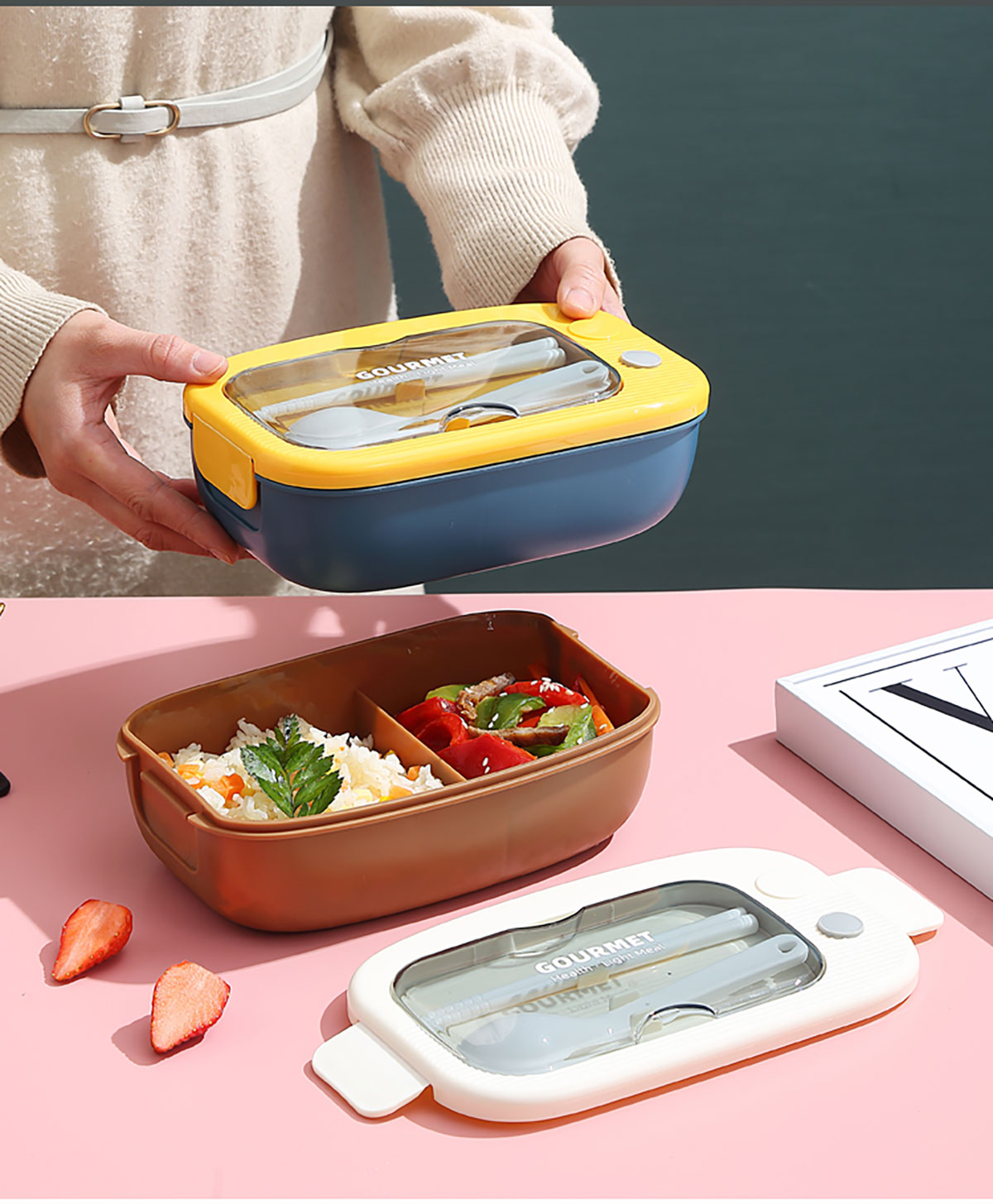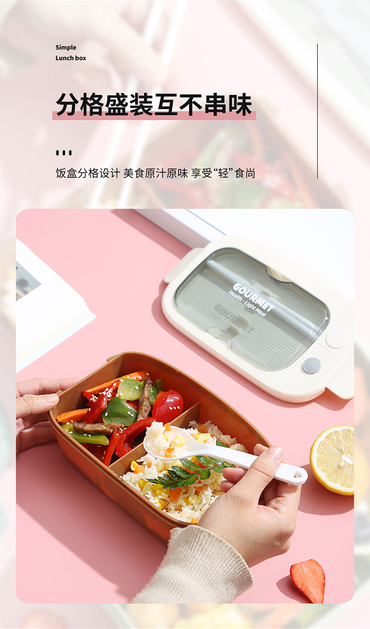 優(yōu)品塑料飯盒1100ml 配叉勺