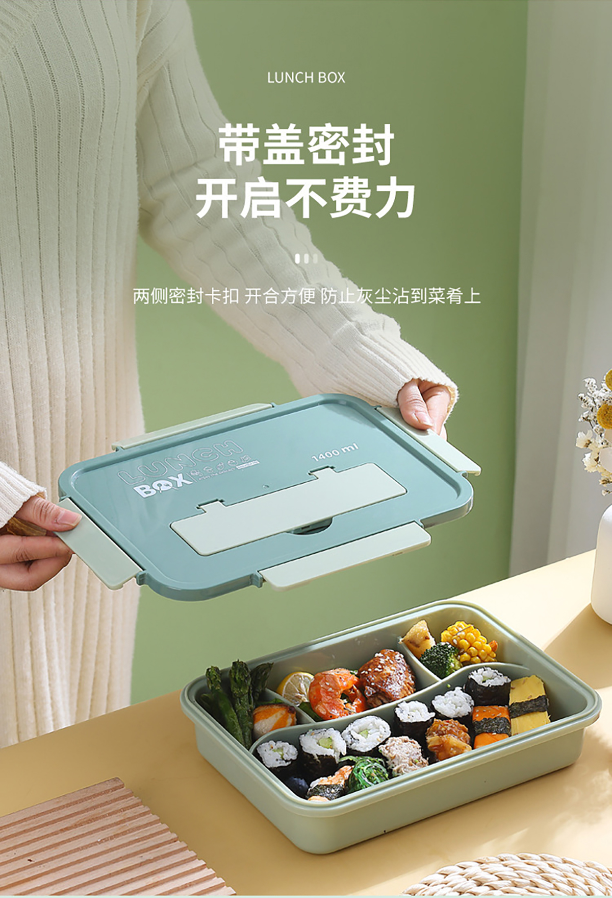 尚品塑料餐盒塑料款1400ml叉勺