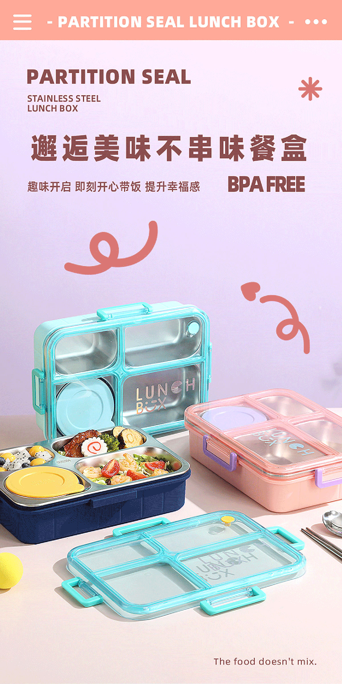 AQX-2622:262*193*65mm/不銹鋼4格900ml+醬料杯80ml