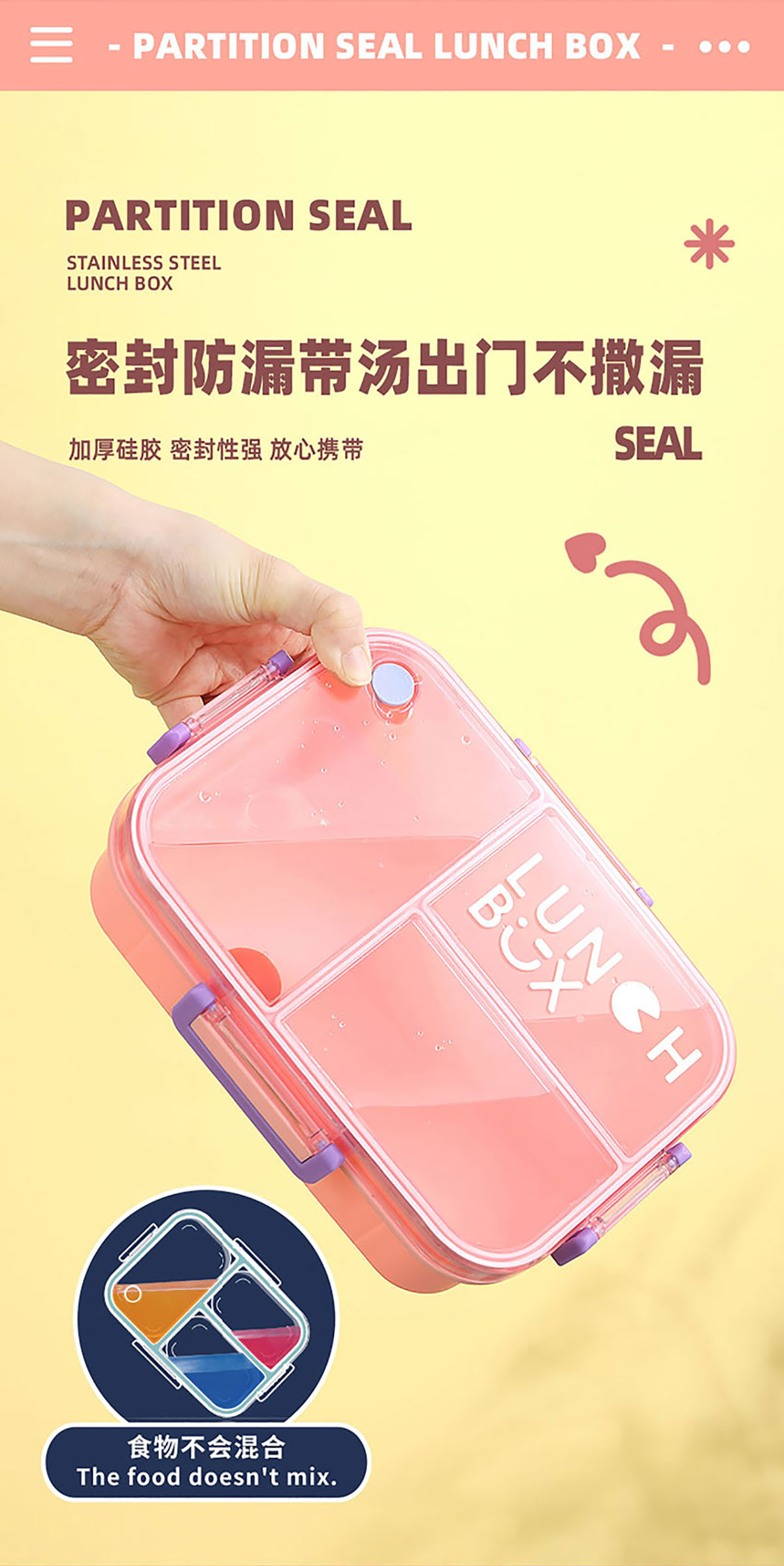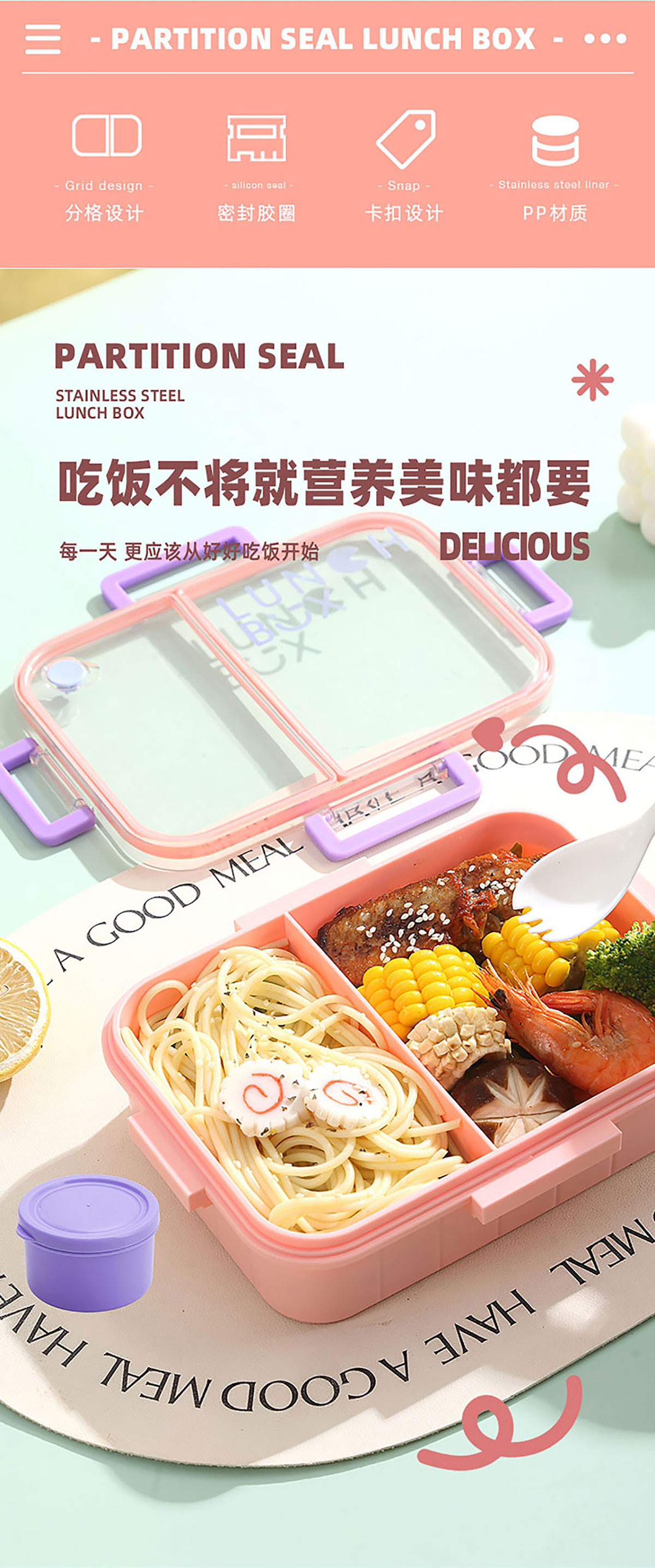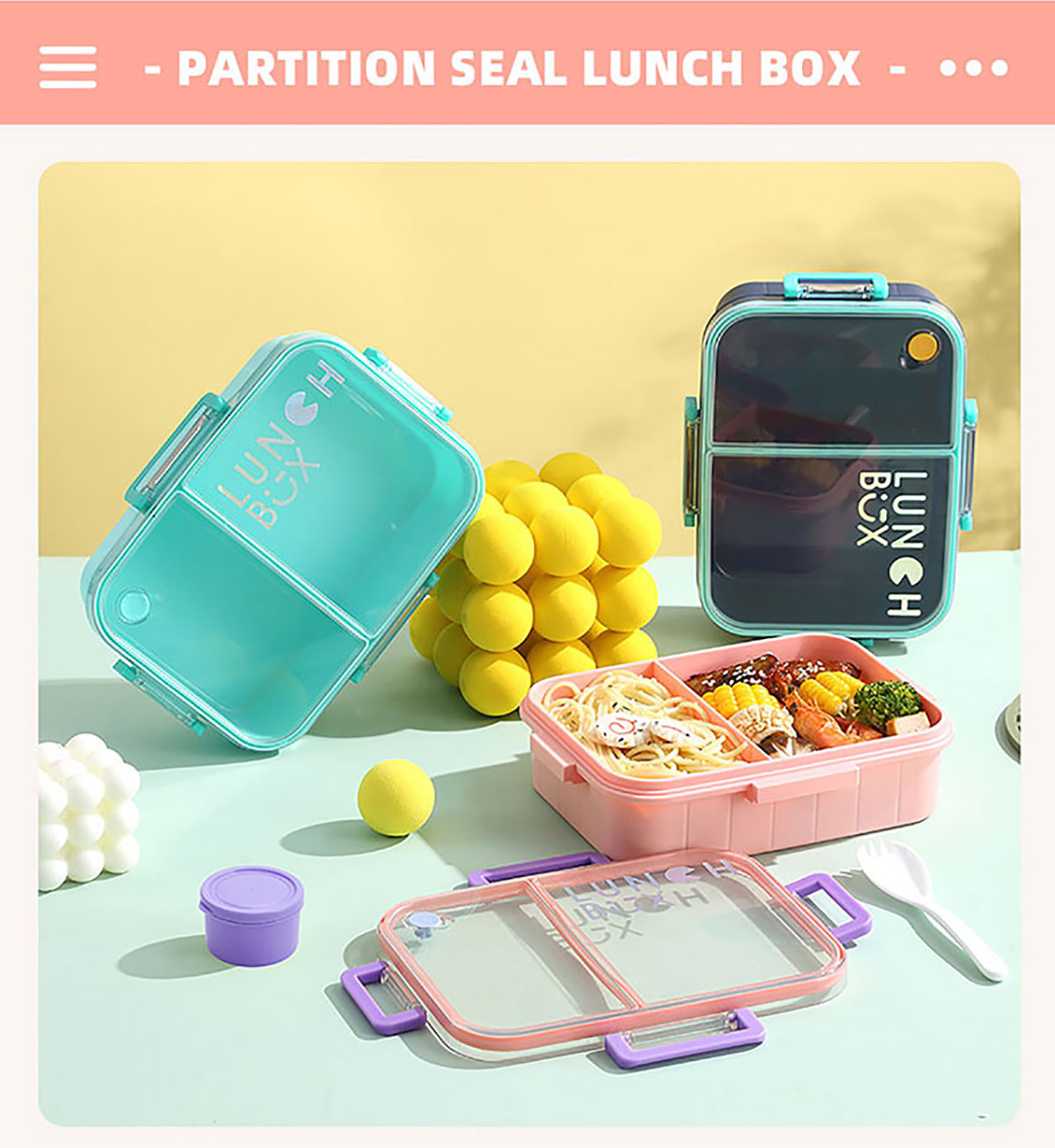 Size: AQX-2633:226*168*65mm/塑料2格1200ml+醬料杯80ml AQX-2634:226*168*65mm/塑料3格1200ml+醬料杯80ml