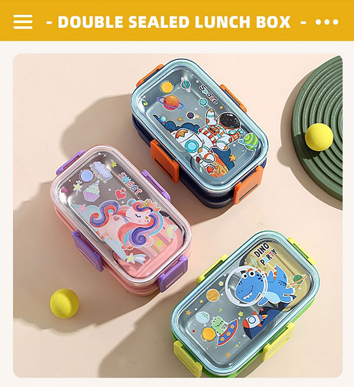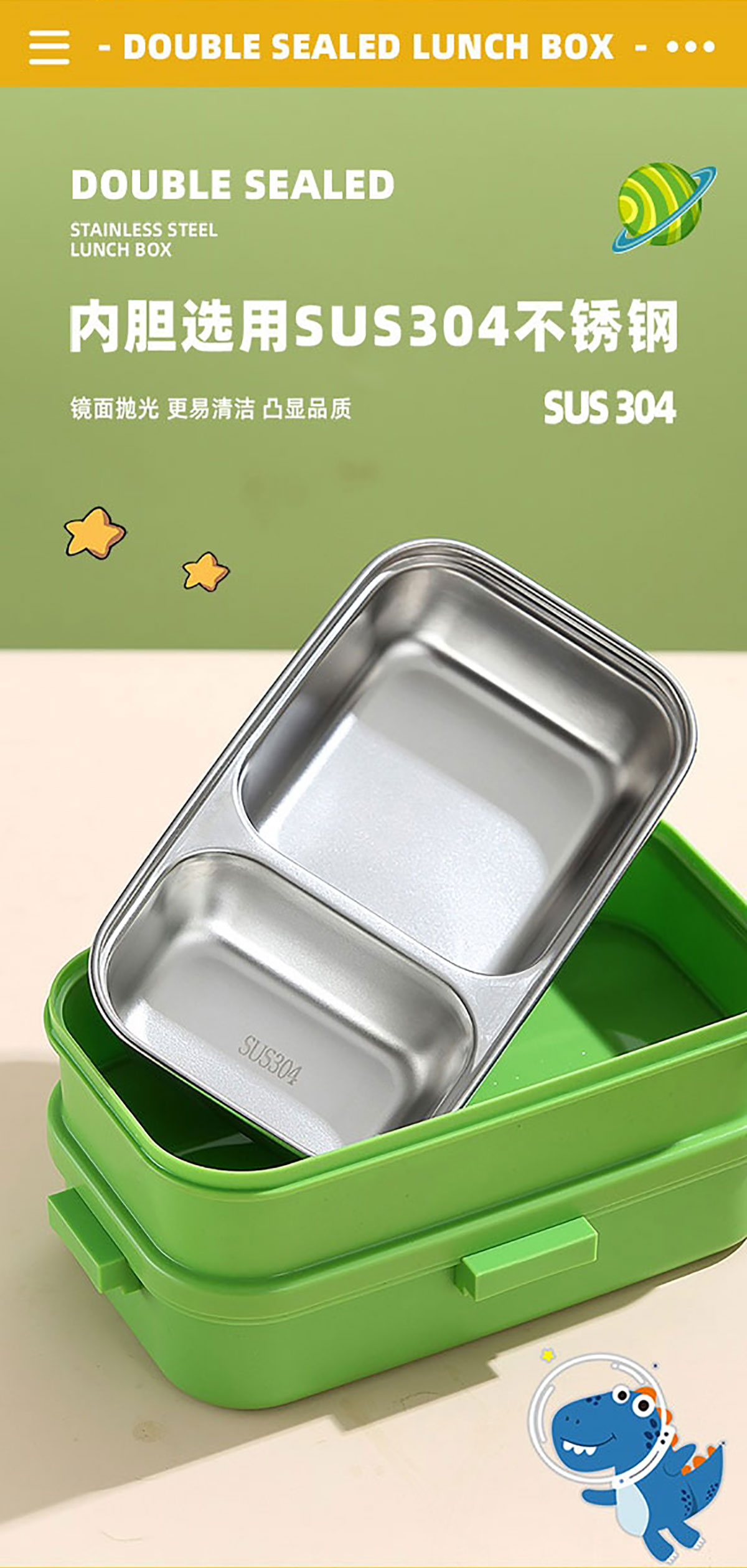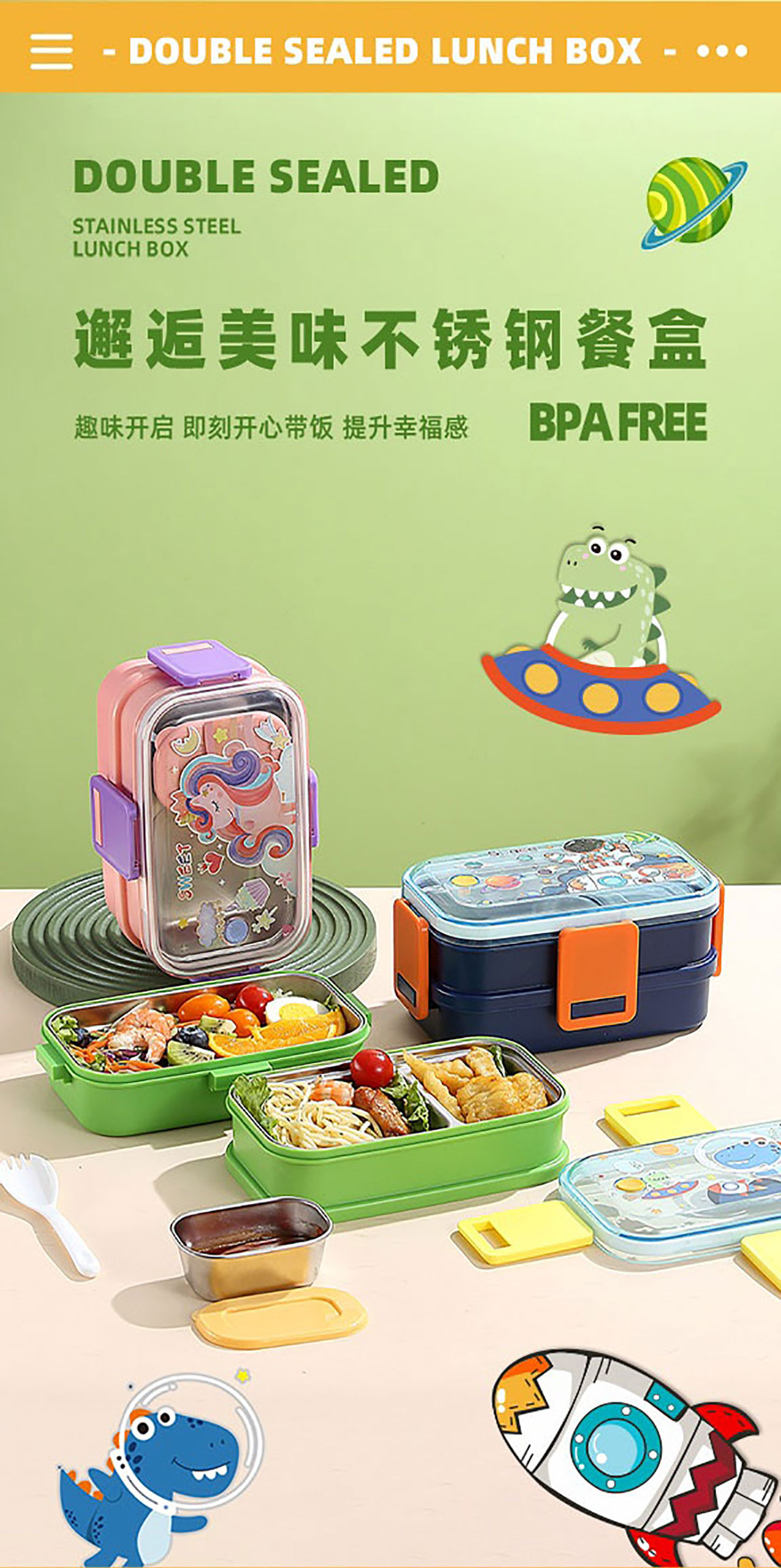 彩光卡通雙層不銹鋼餐盒(700mlx2+不銹鋼碗100ml)