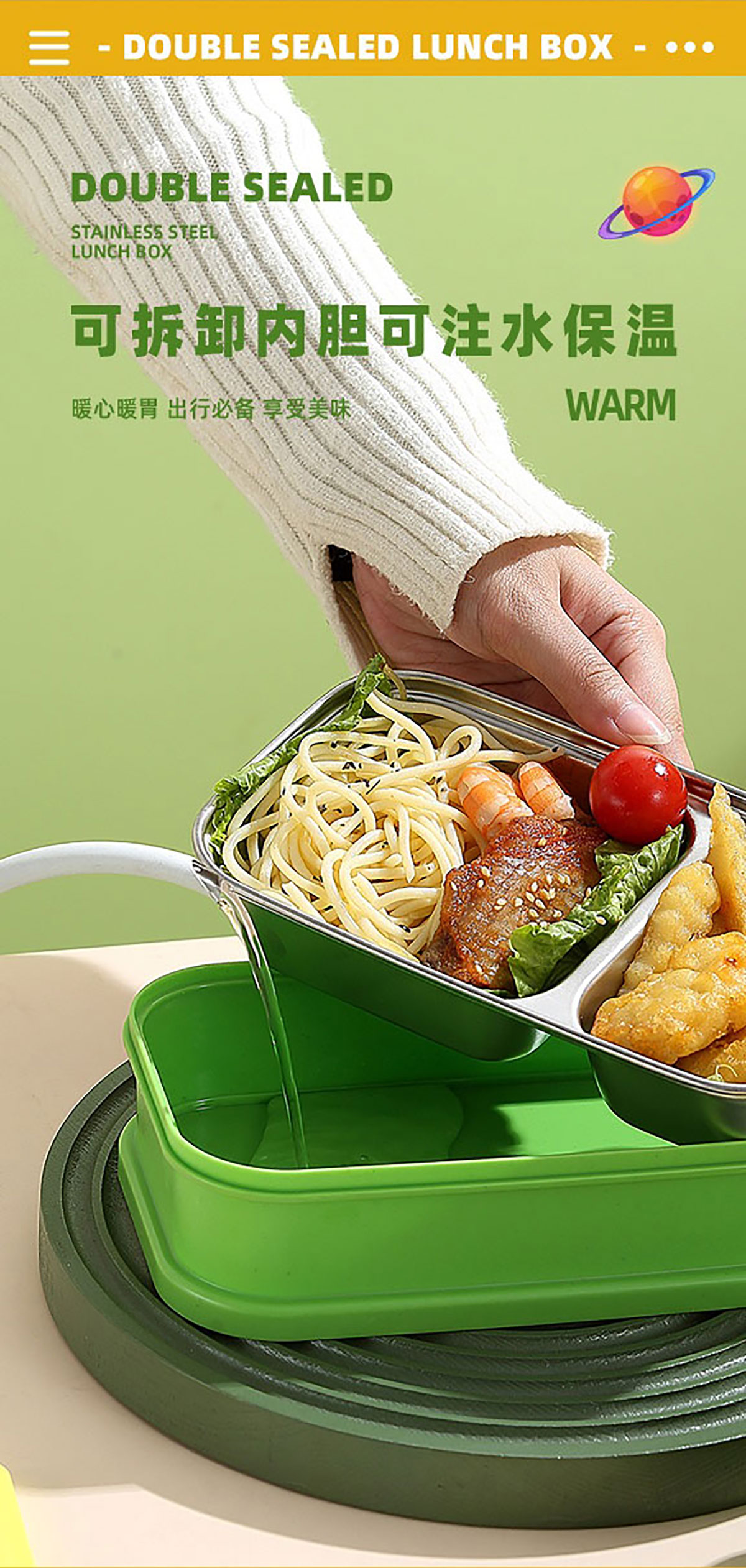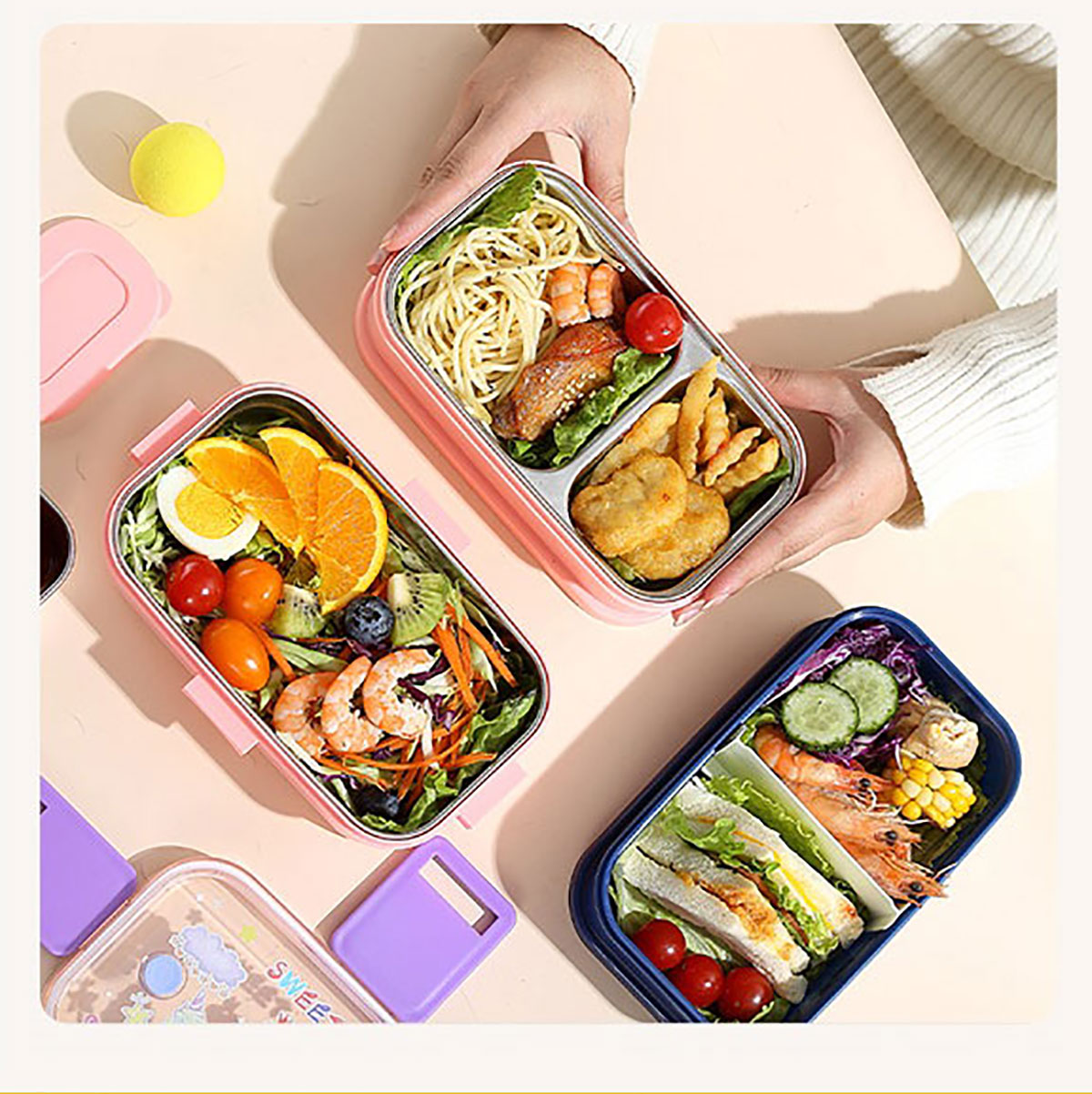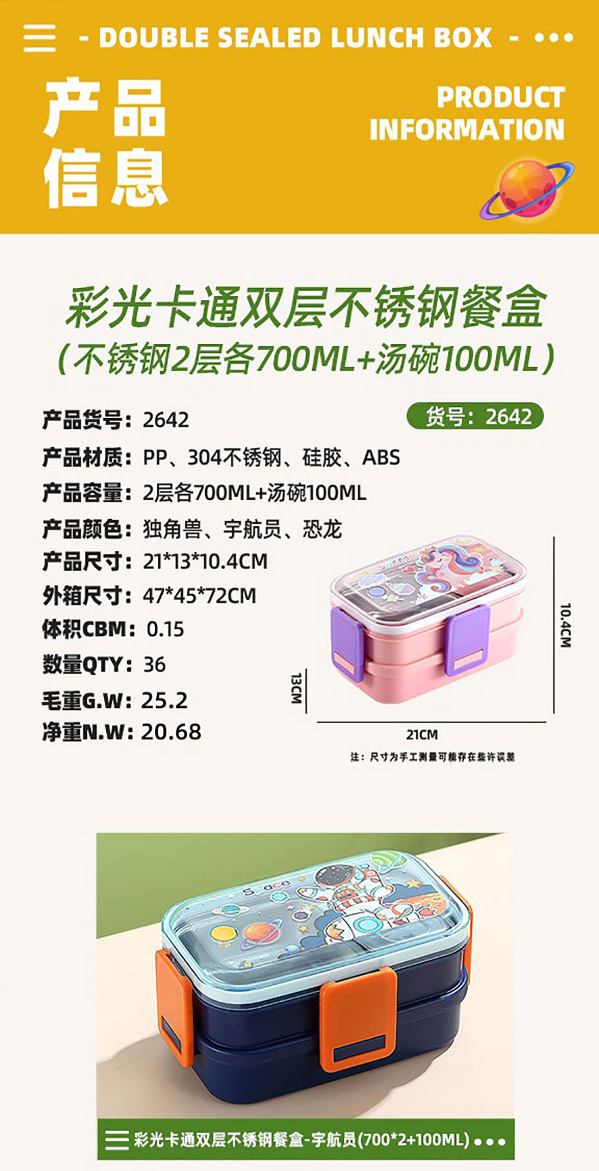 彩光卡通雙層不銹鋼餐盒(700mlx2+不銹鋼碗100ml)