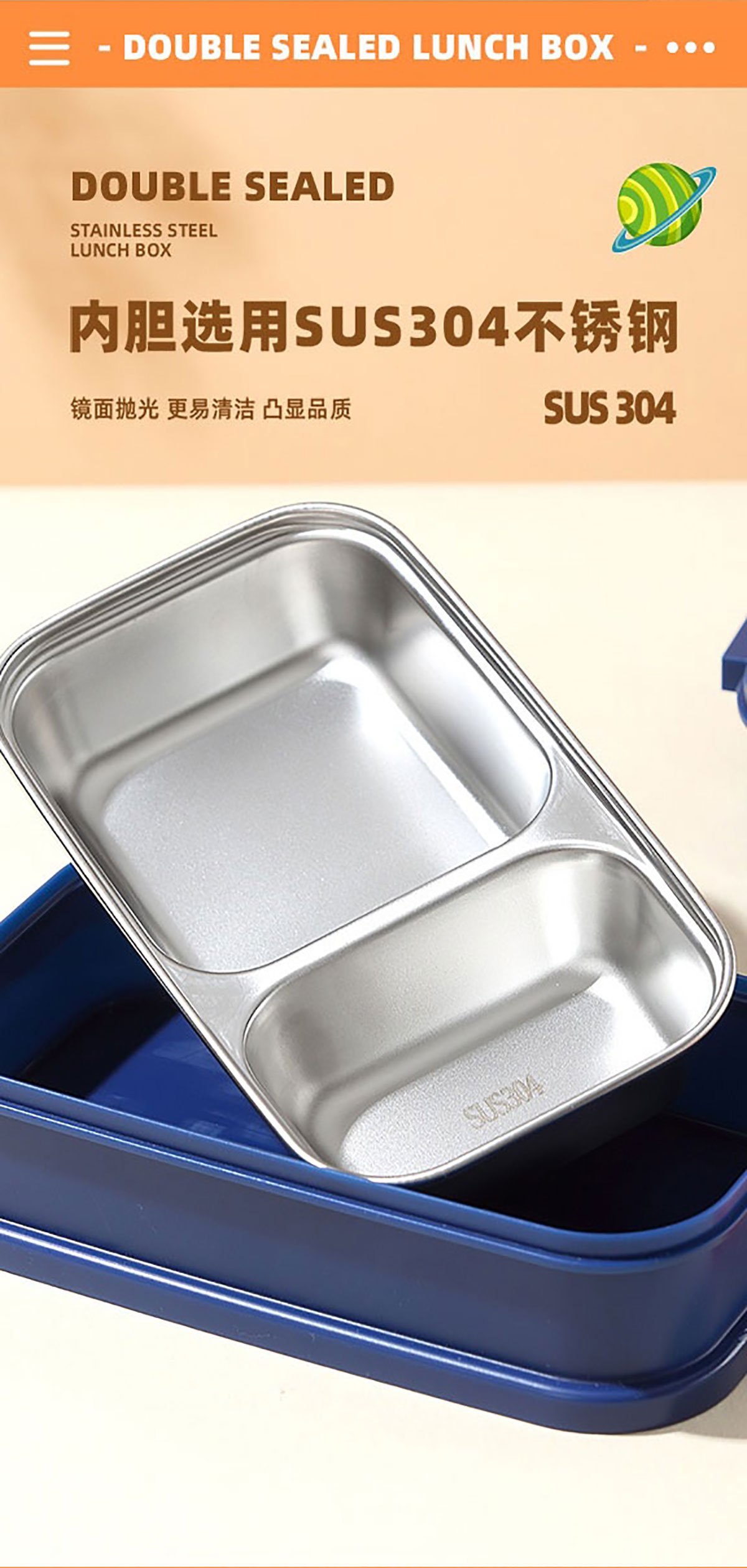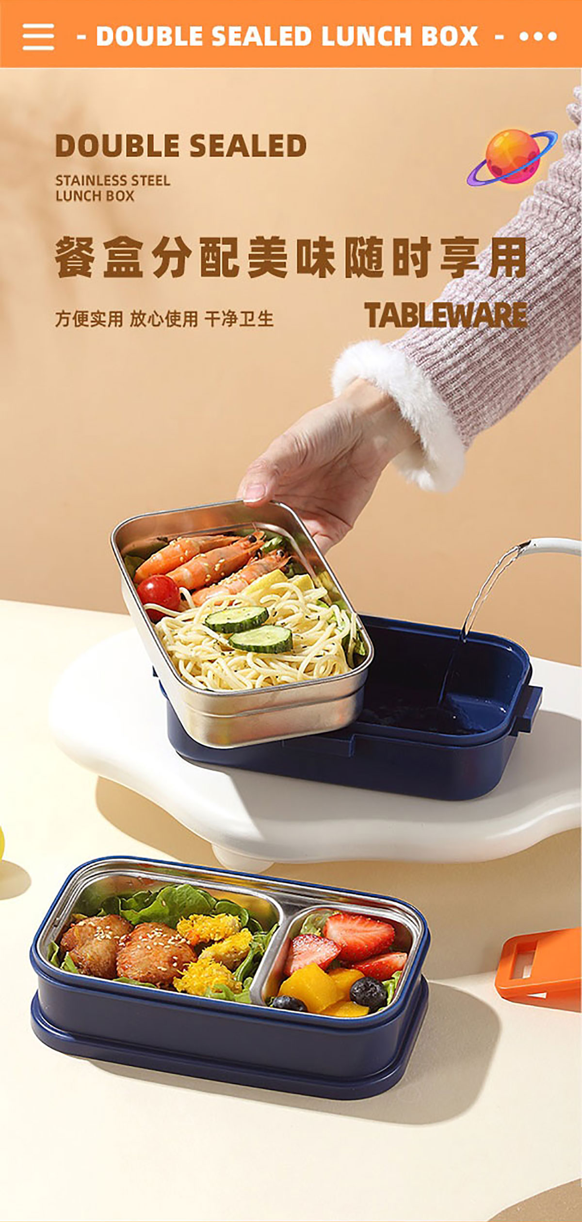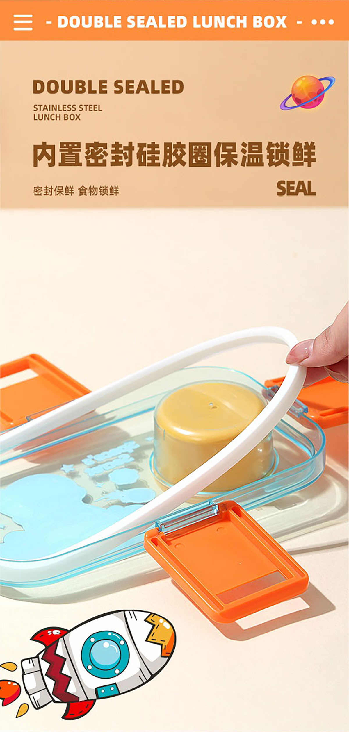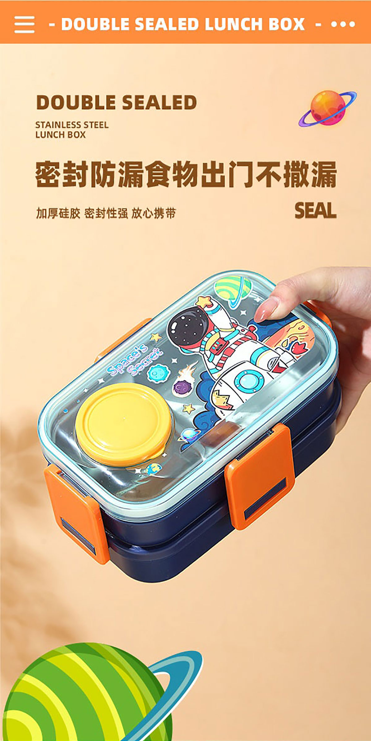彩光卡通雙層不銹鋼餐盒(700mlx2+外置醬料杯80ml)