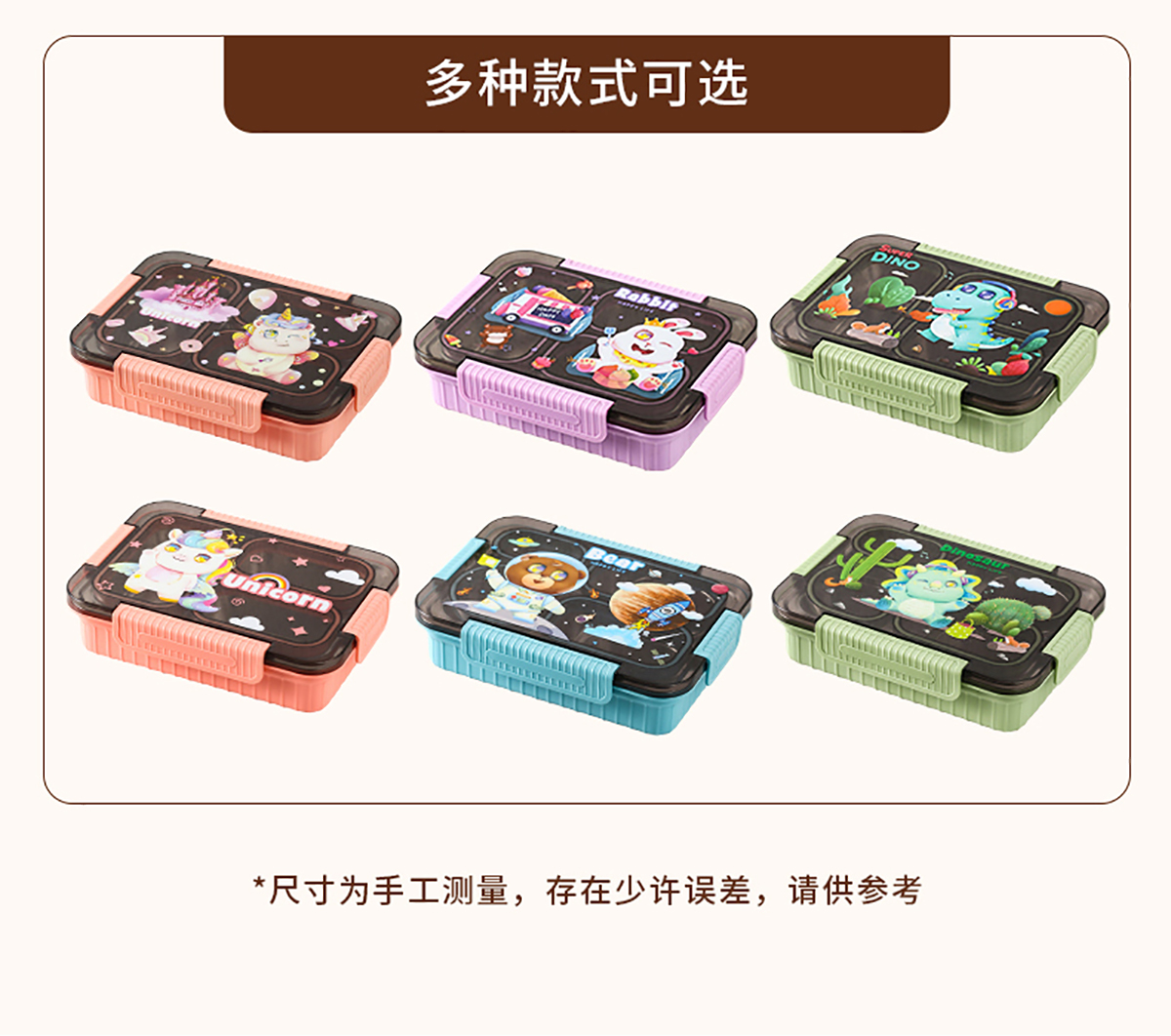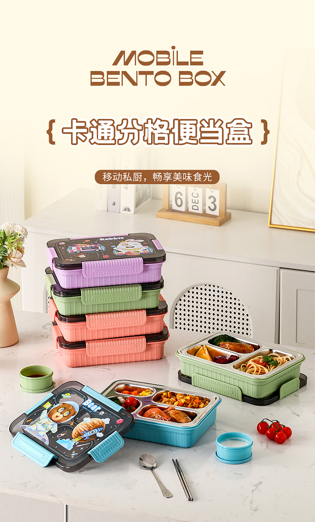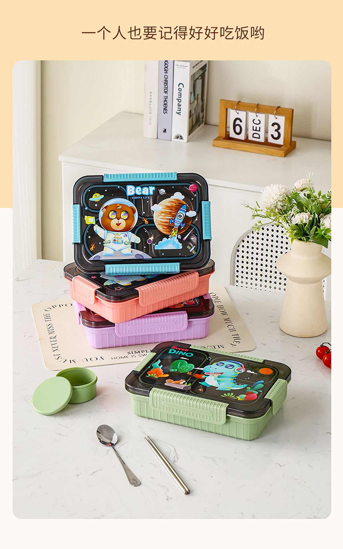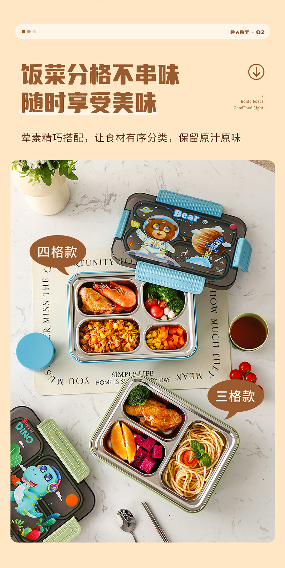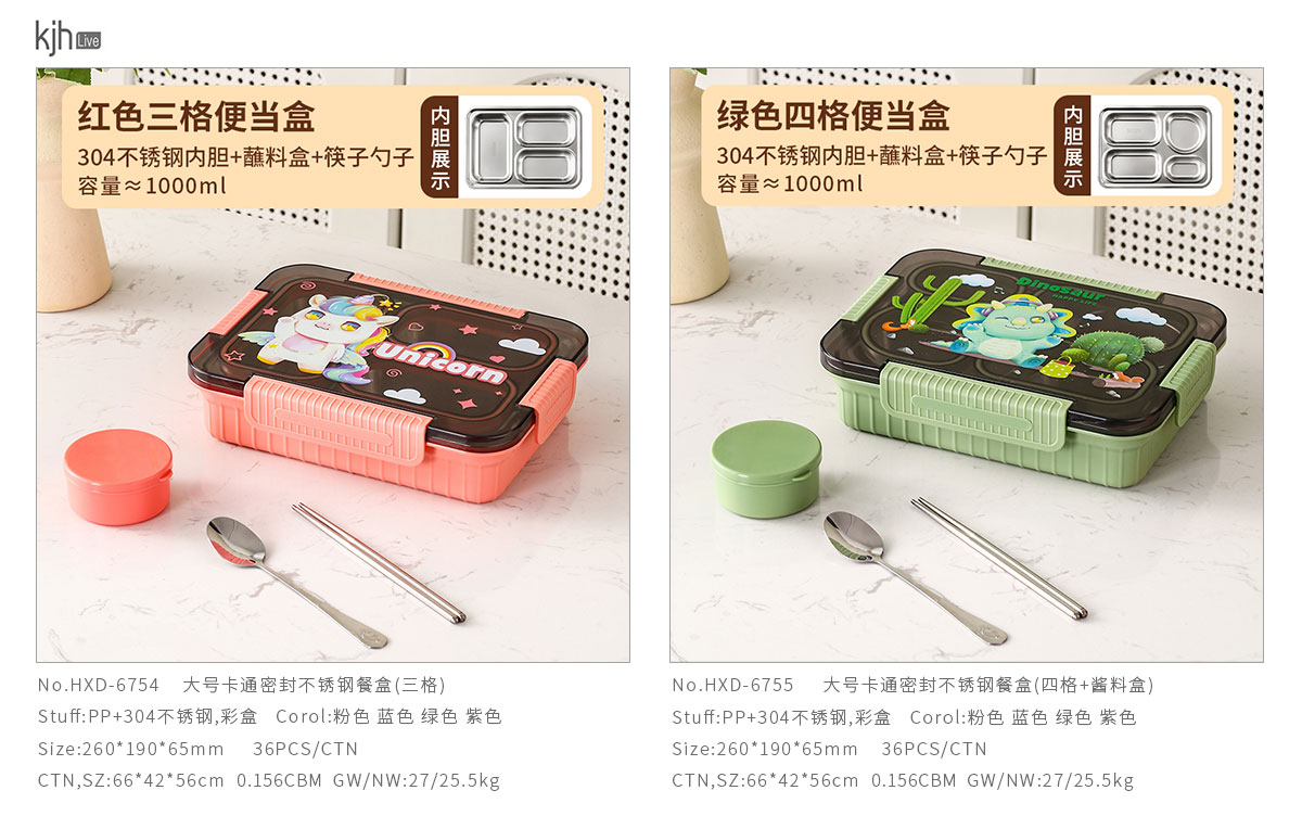 大號卡通密封不銹鋼餐盒(三格/四格+醬料盒)