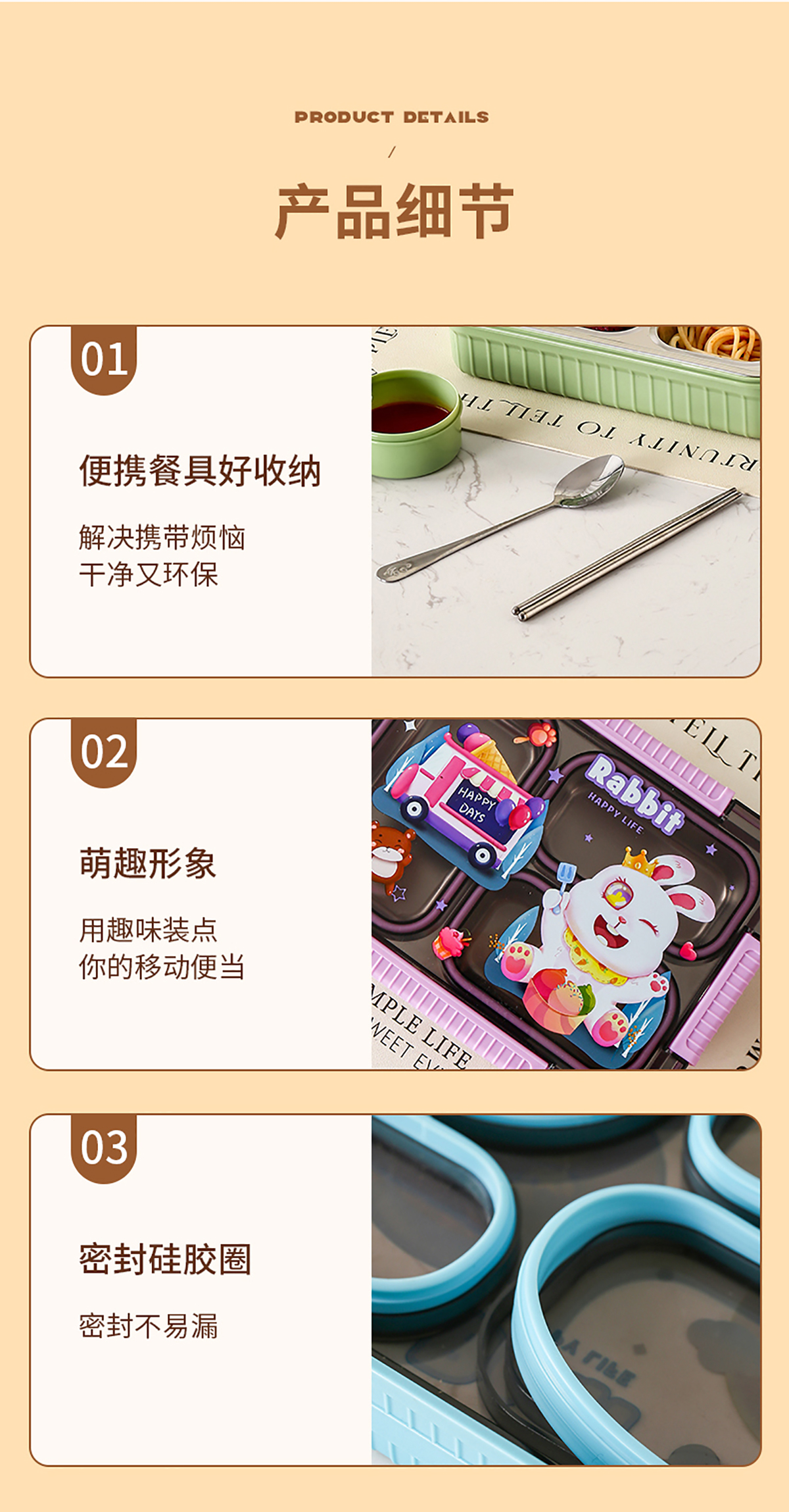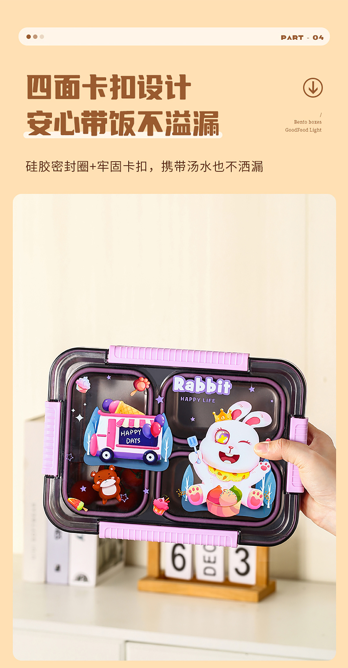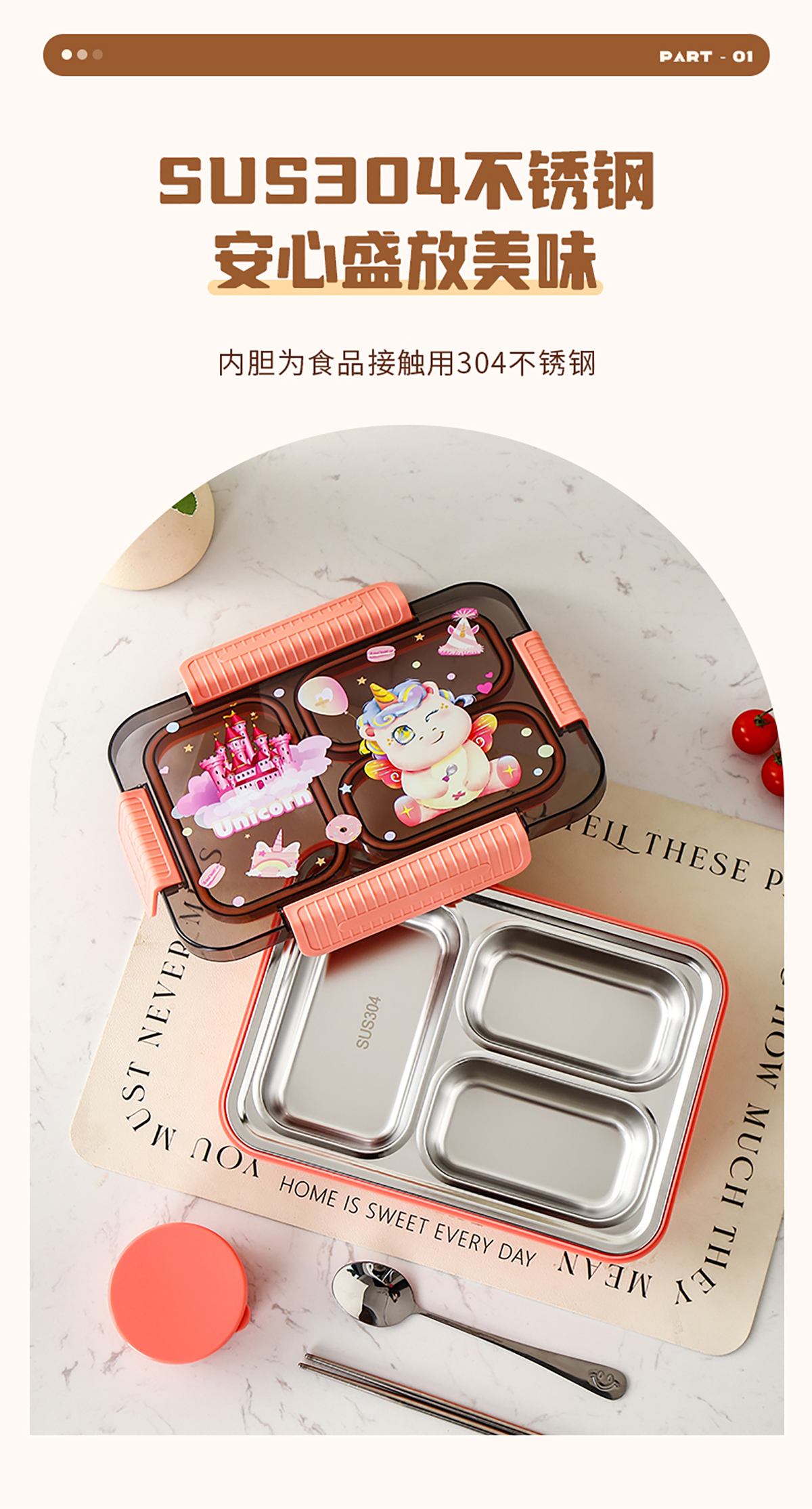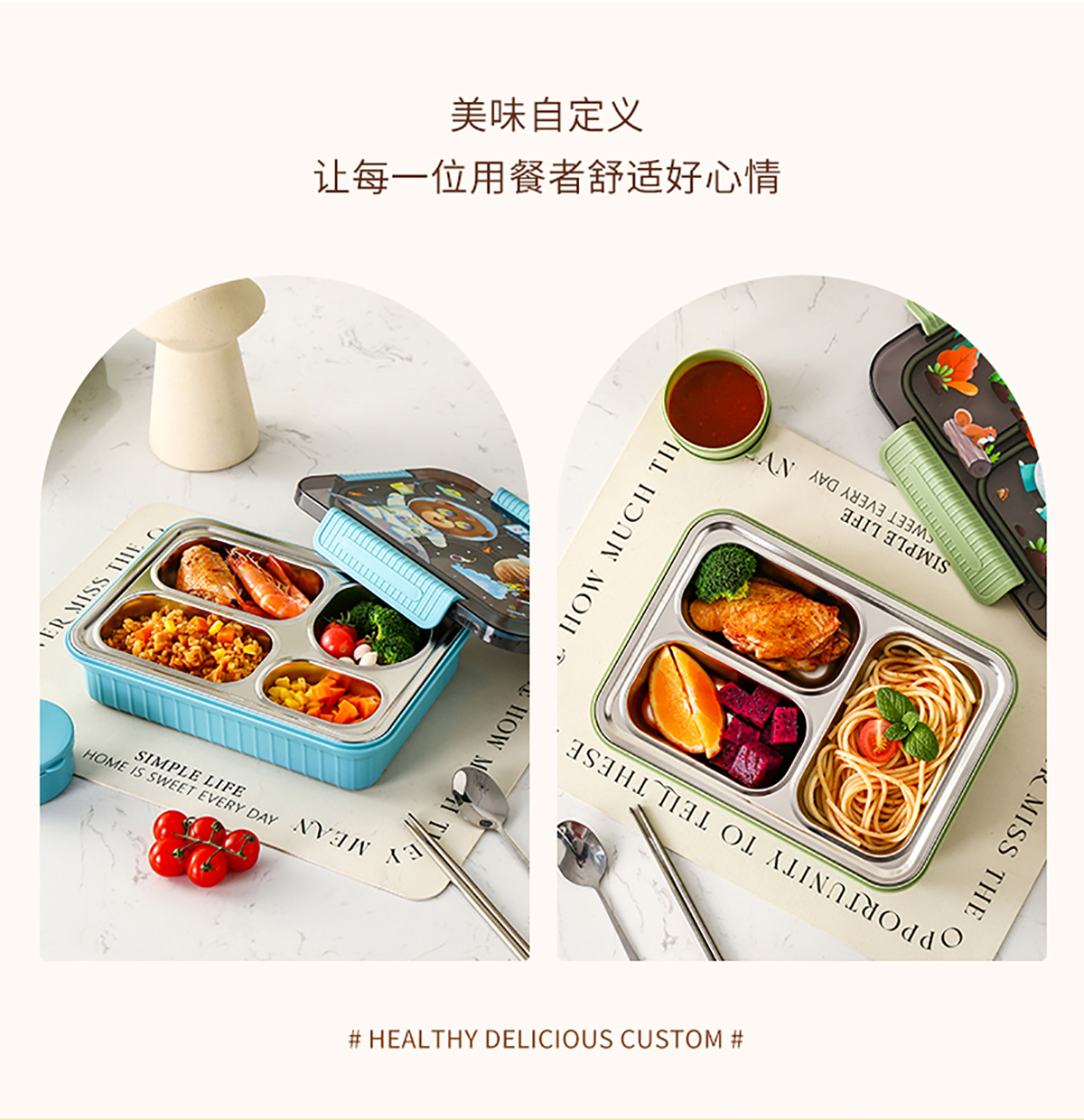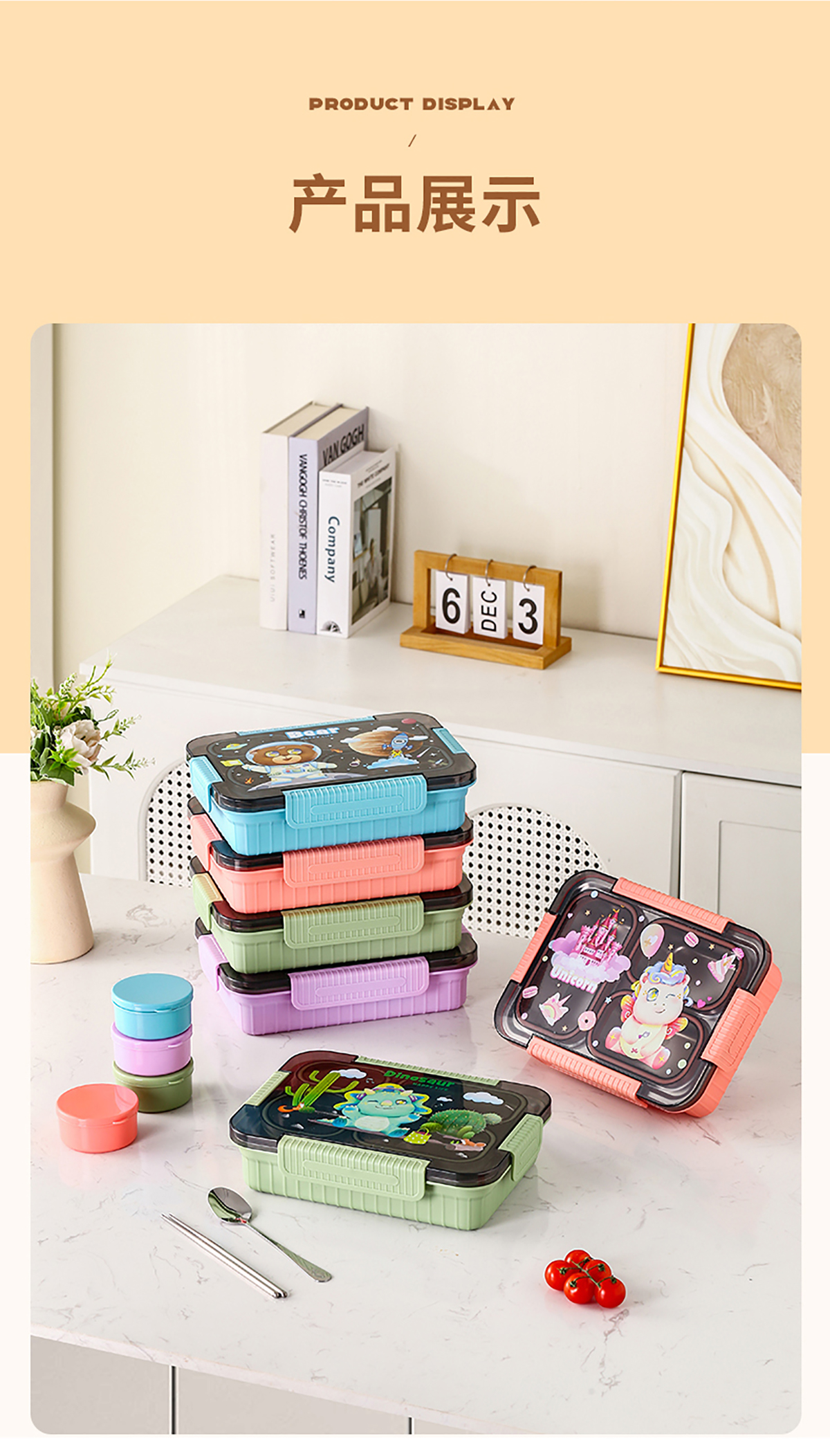 大號卡通密封不銹鋼餐盒(三格/四格+醬料盒)