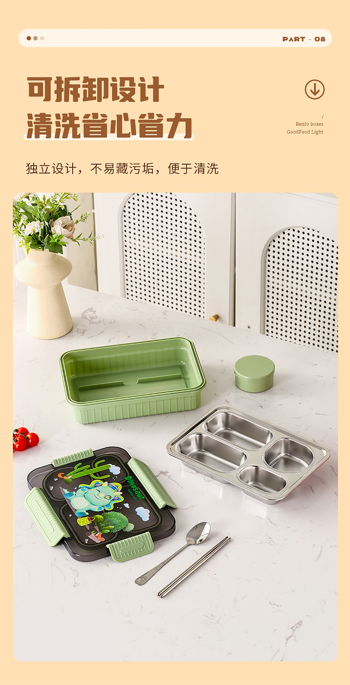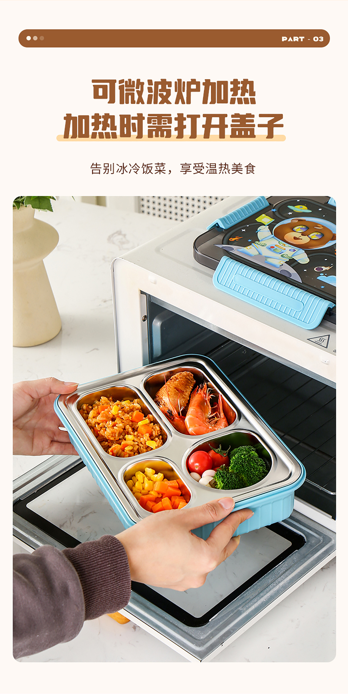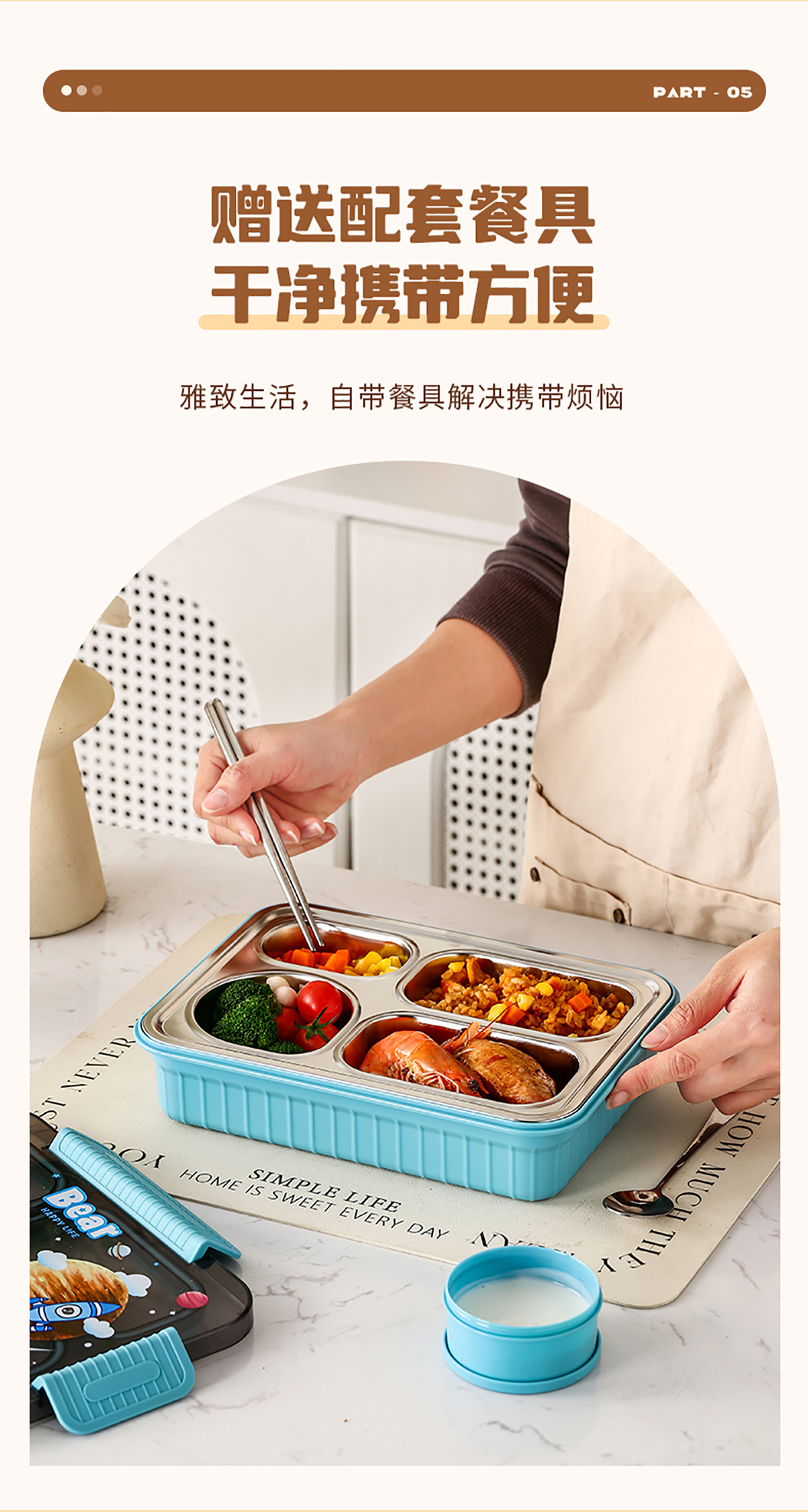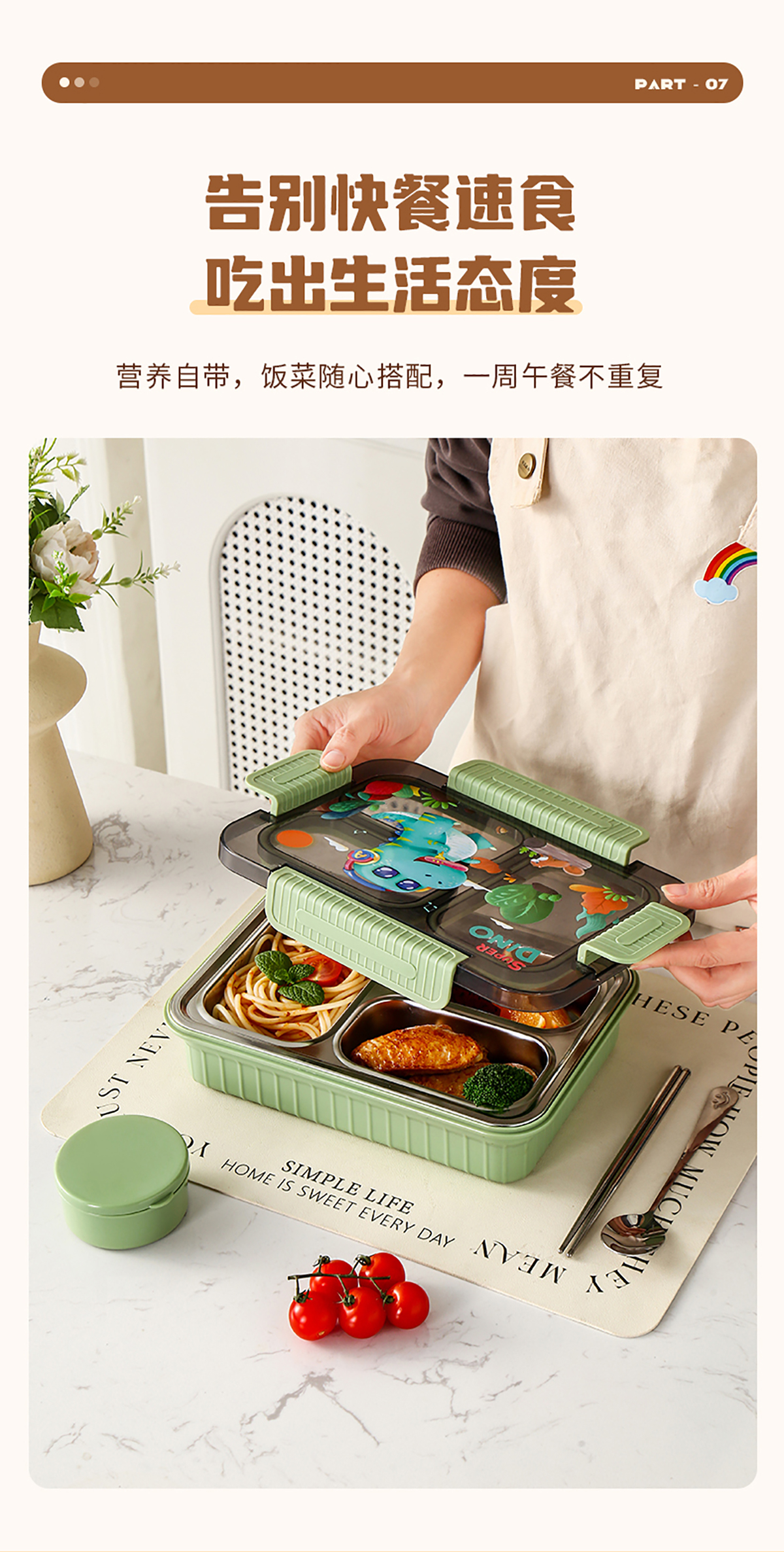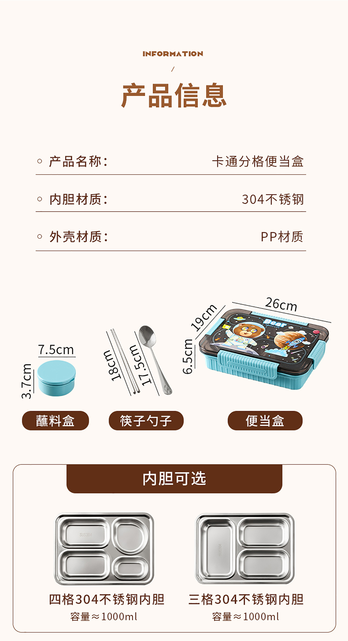 大號卡通密封不銹鋼餐盒(三格/四格+醬料盒)