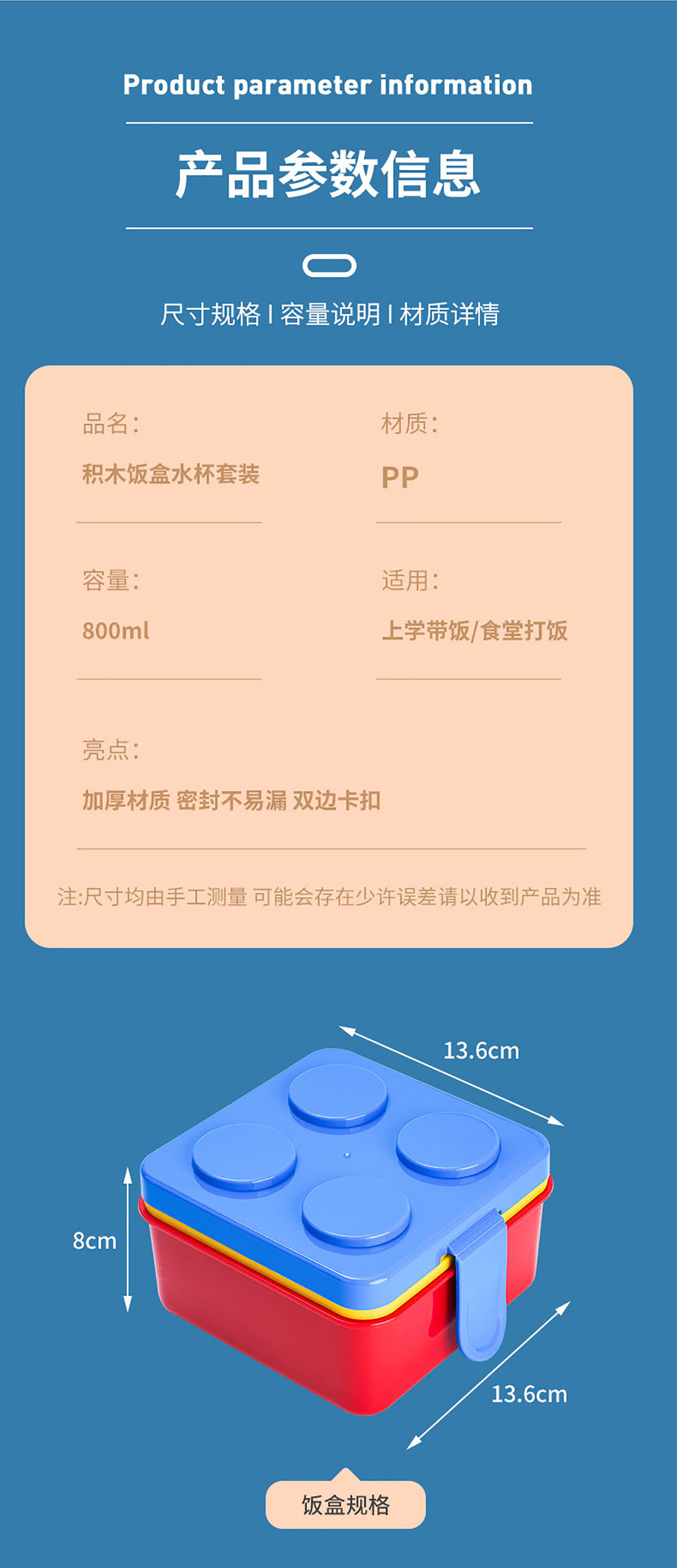 Size: 飯盒150*150*108mm/850ml 水杯70*70*140mm/400ml