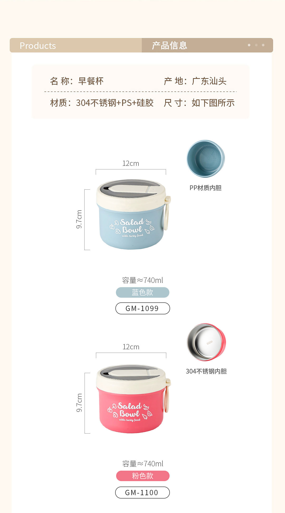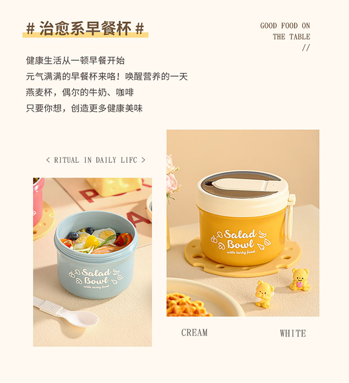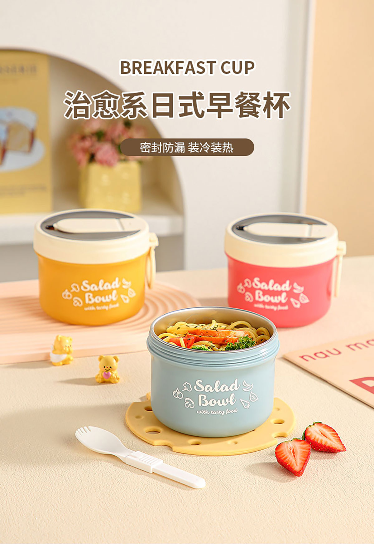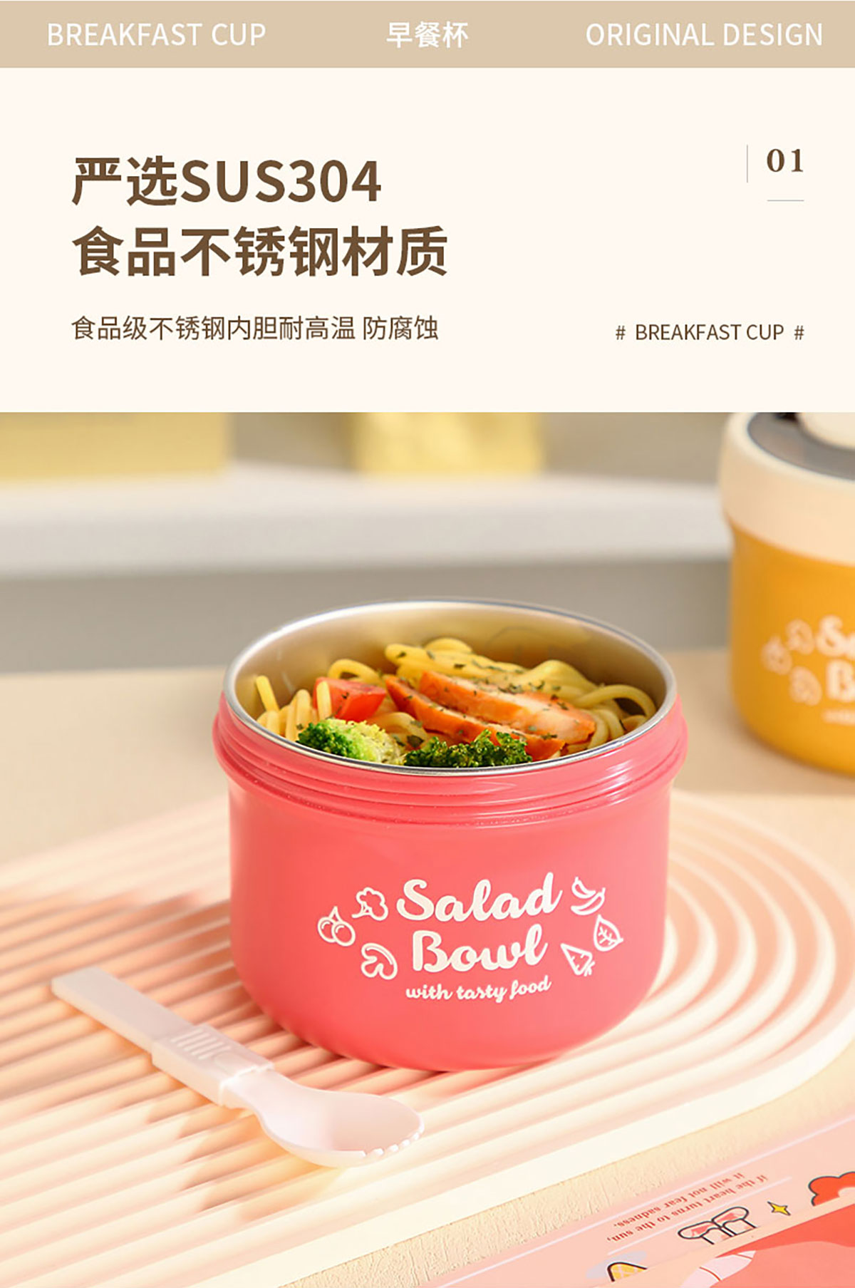 便攜式早餐杯(配折疊叉勺)塑料款/不銹鋼款
