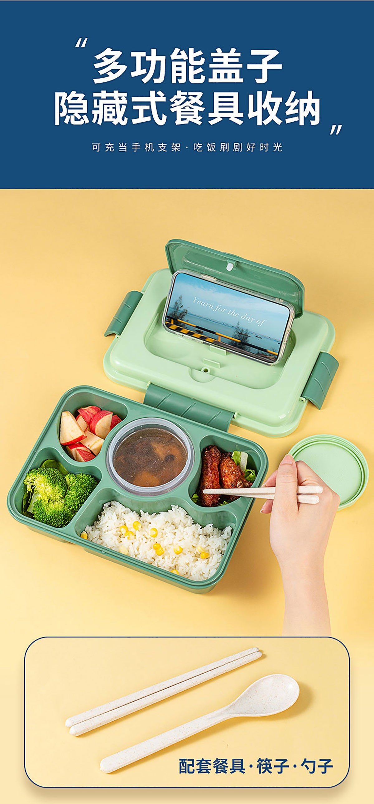 SHX-2258(五格帶湯碗):飯盒:260*190*80mm 湯碗:Φ90*60mm/250ml