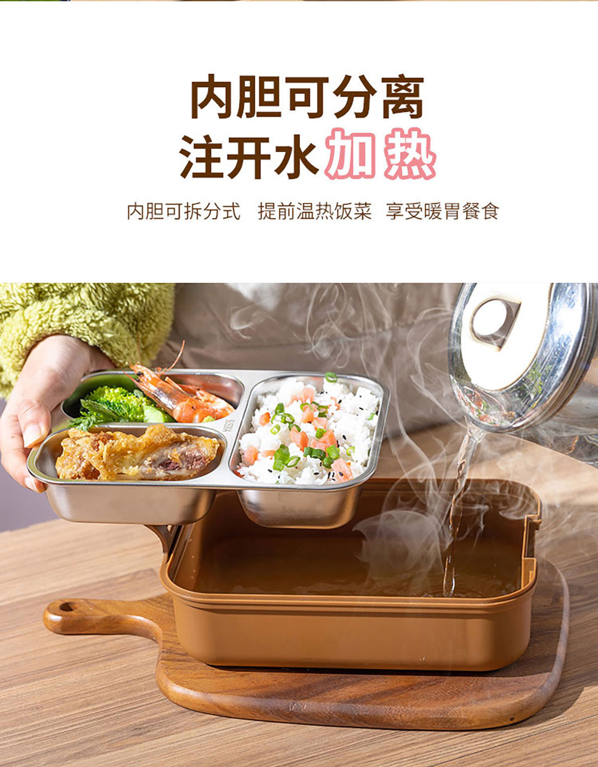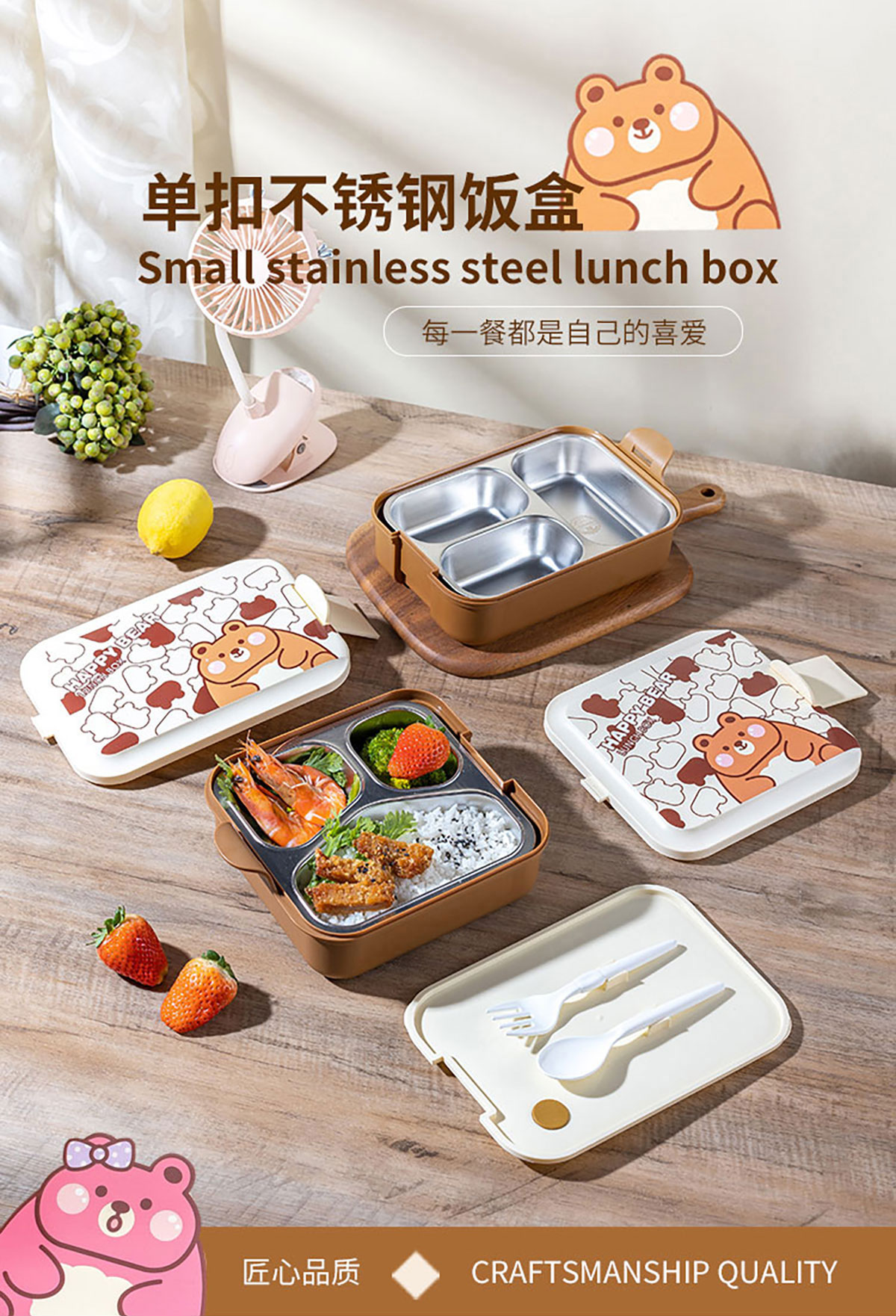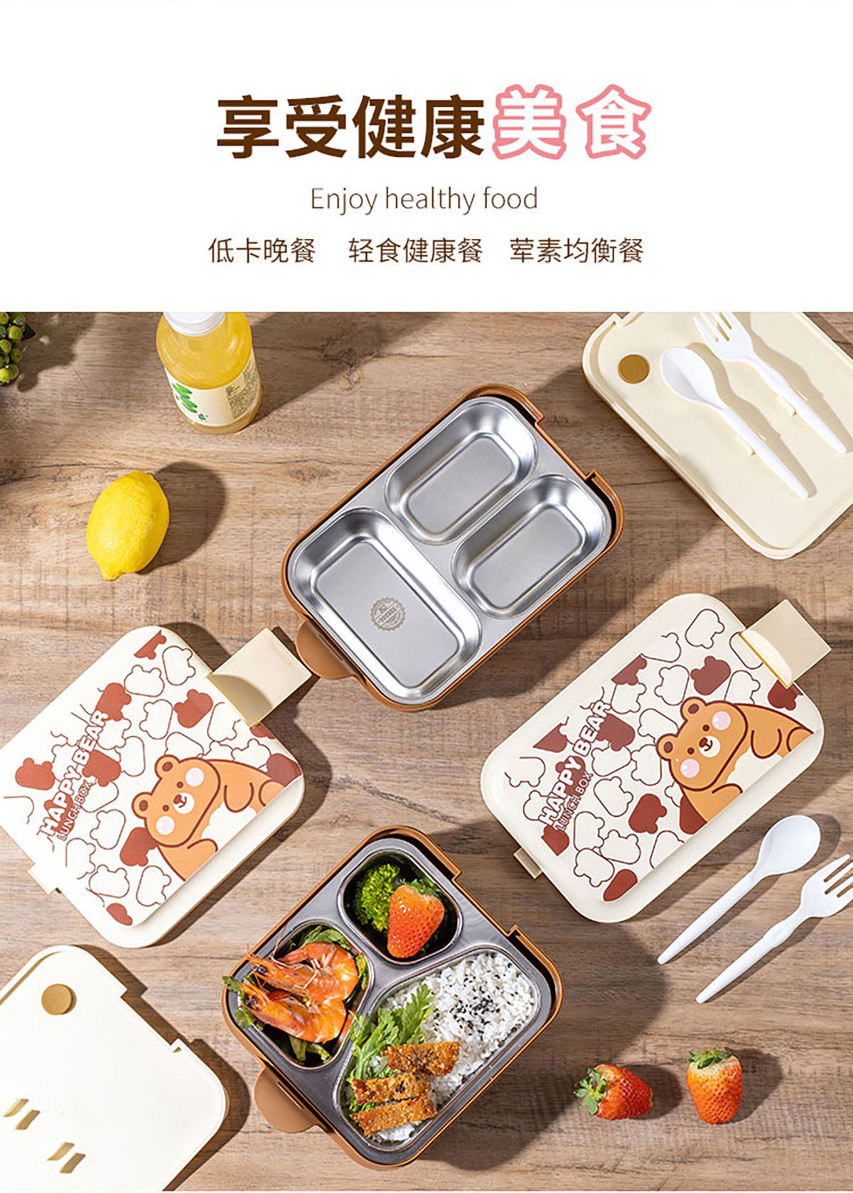 小簡長方形/方形三格不銹鋼飯盒