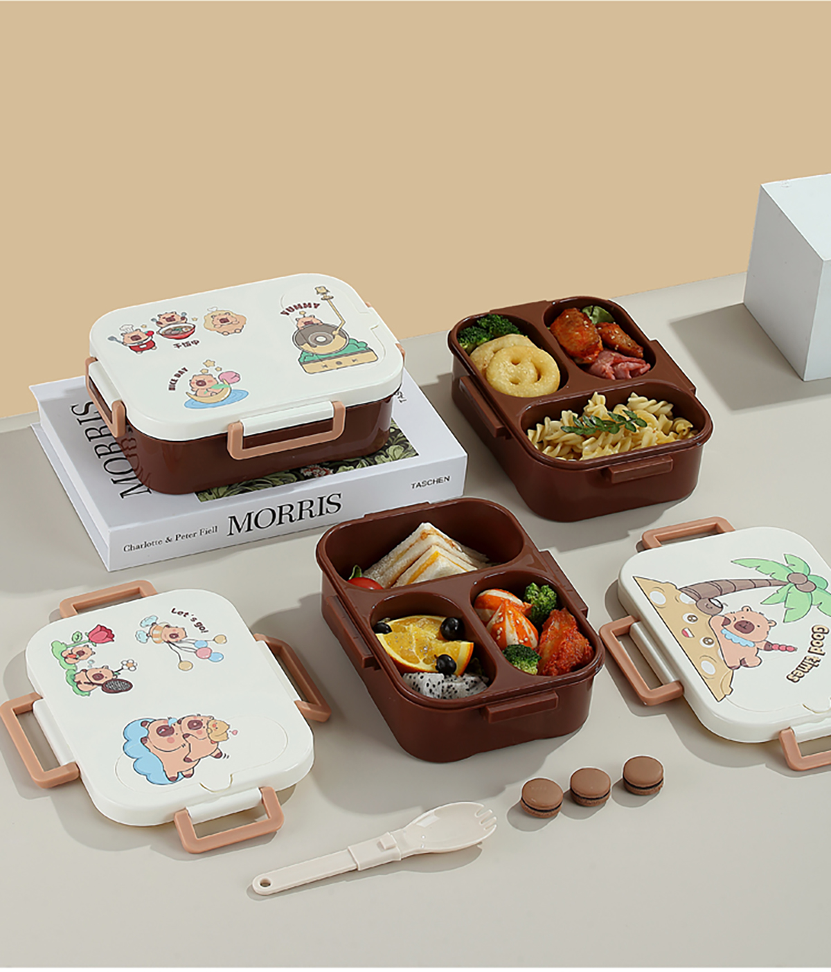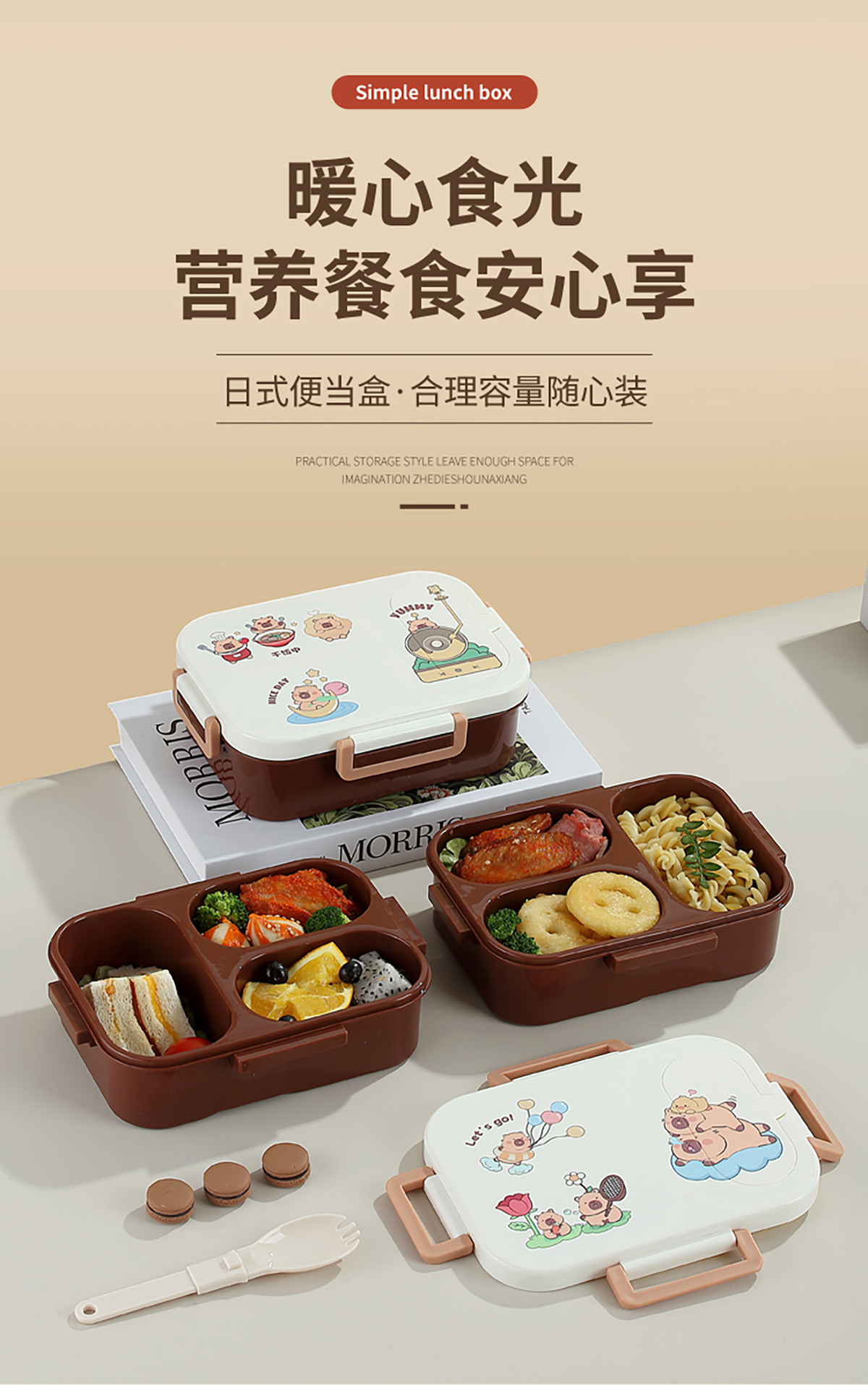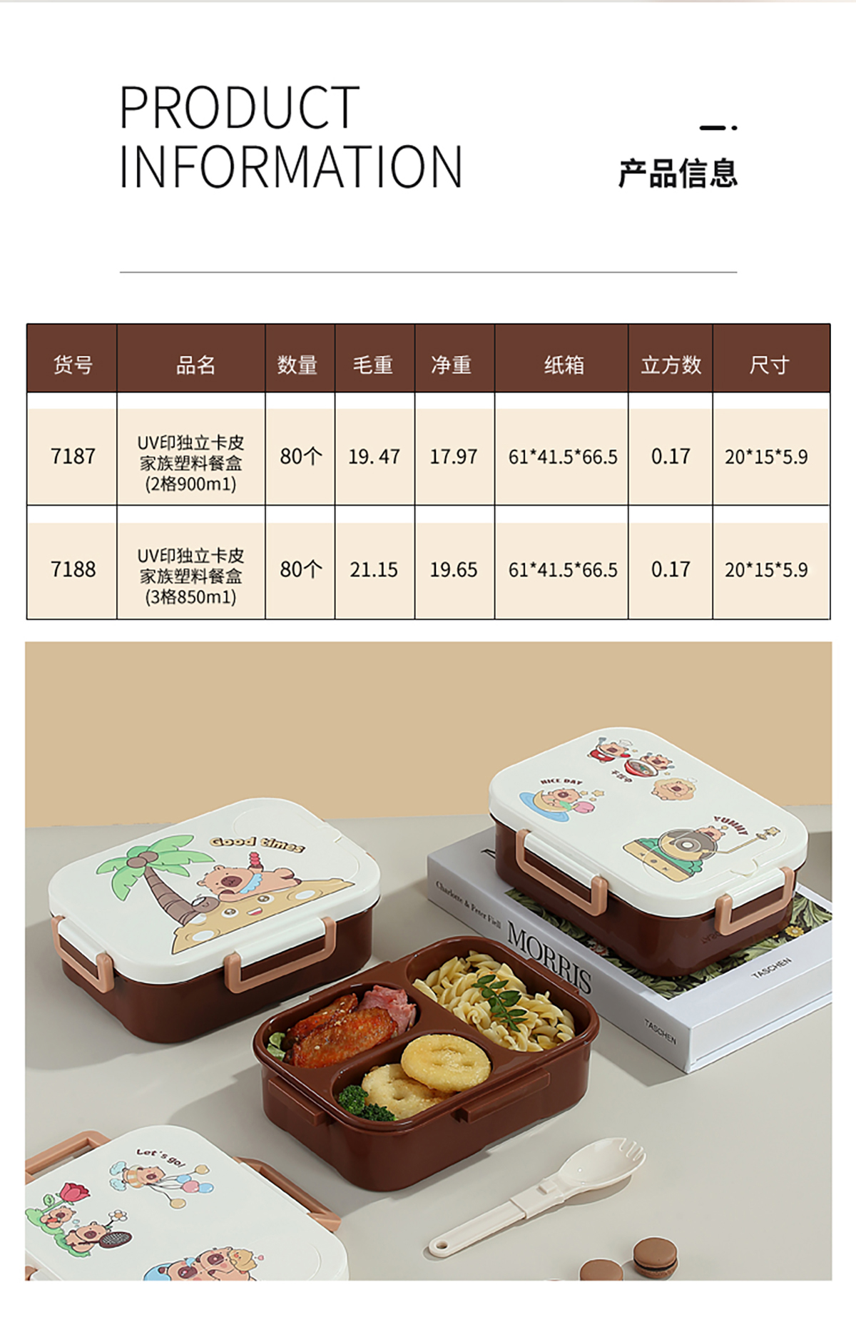 UV獨(dú)立密封卡皮家族塑料餐盒2格900ml/3格850ml (配PP折疊湯勺)