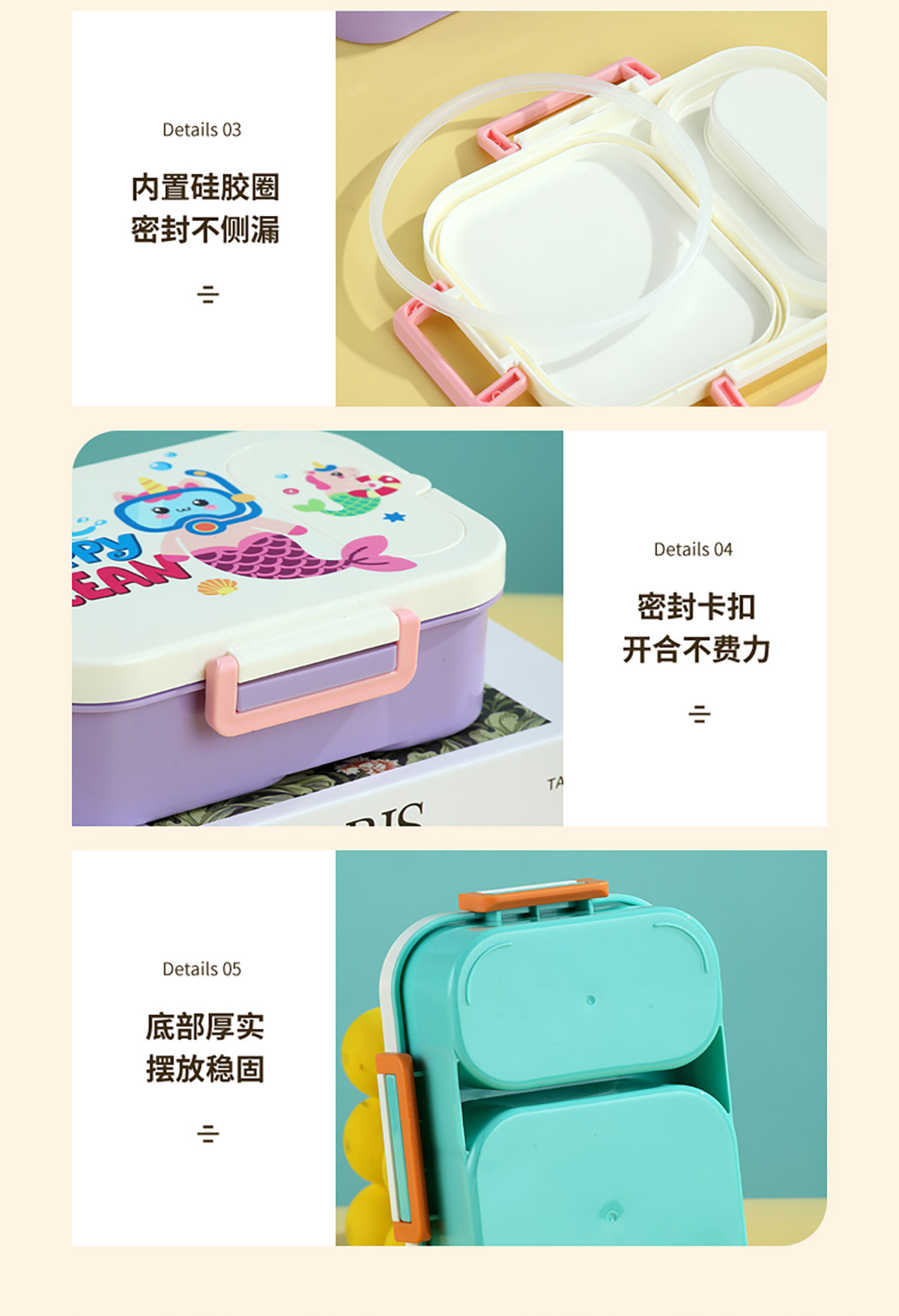 Size: LX-7204(2格):200*150*59mm/900ml LX-7205(3格):200*150*59mm/850ml