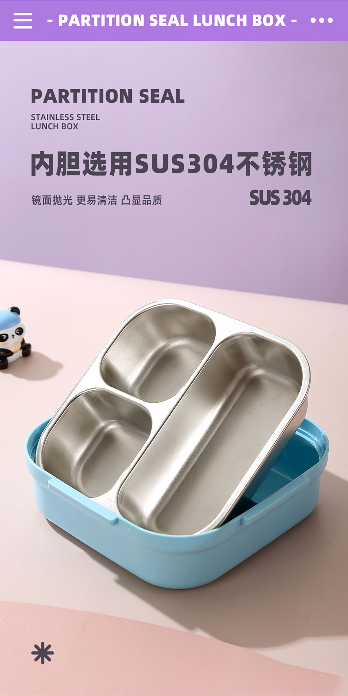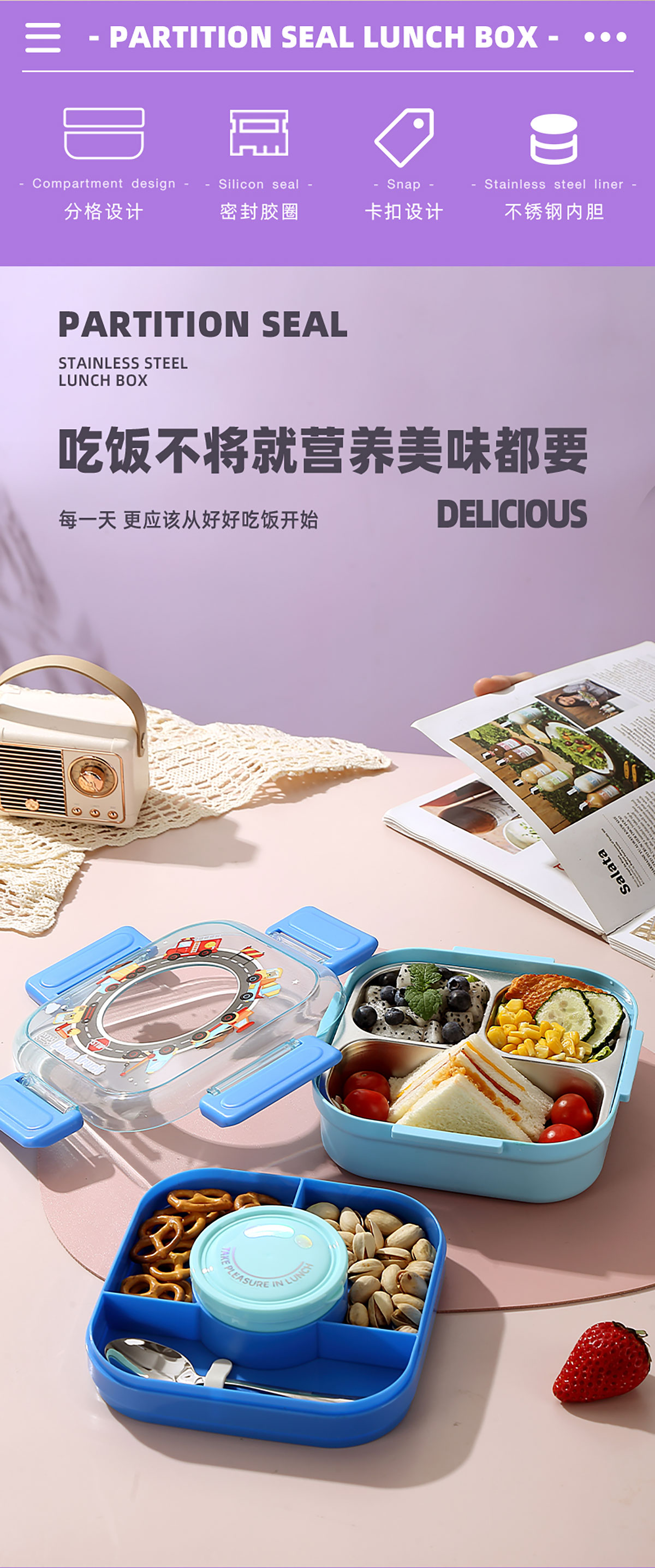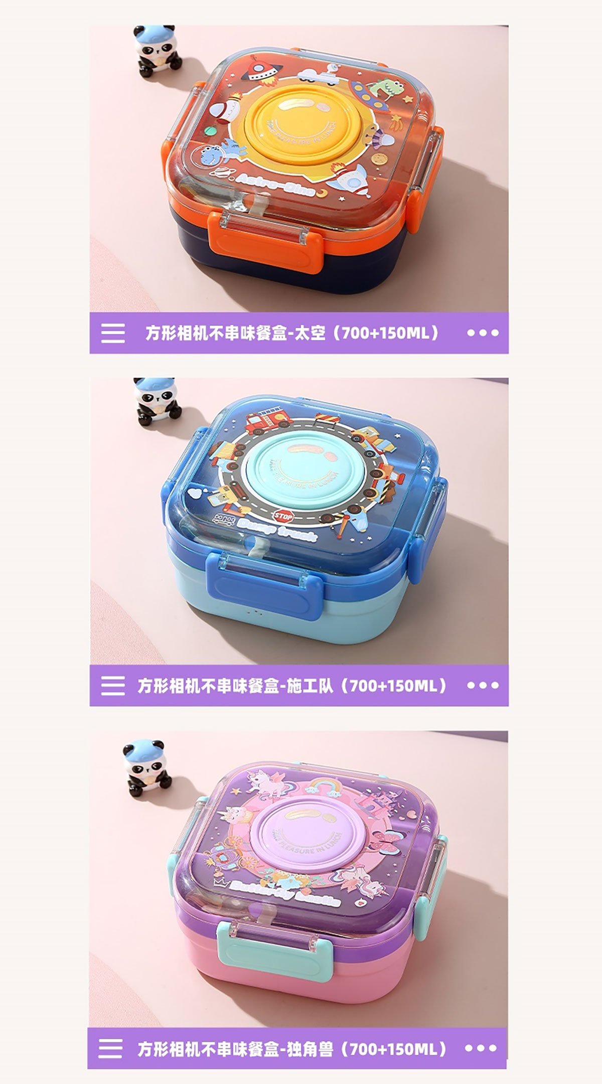 相機(jī)不串味餐盒(方形不銹鋼三格700ml+碗150ml+不銹鋼勺)
